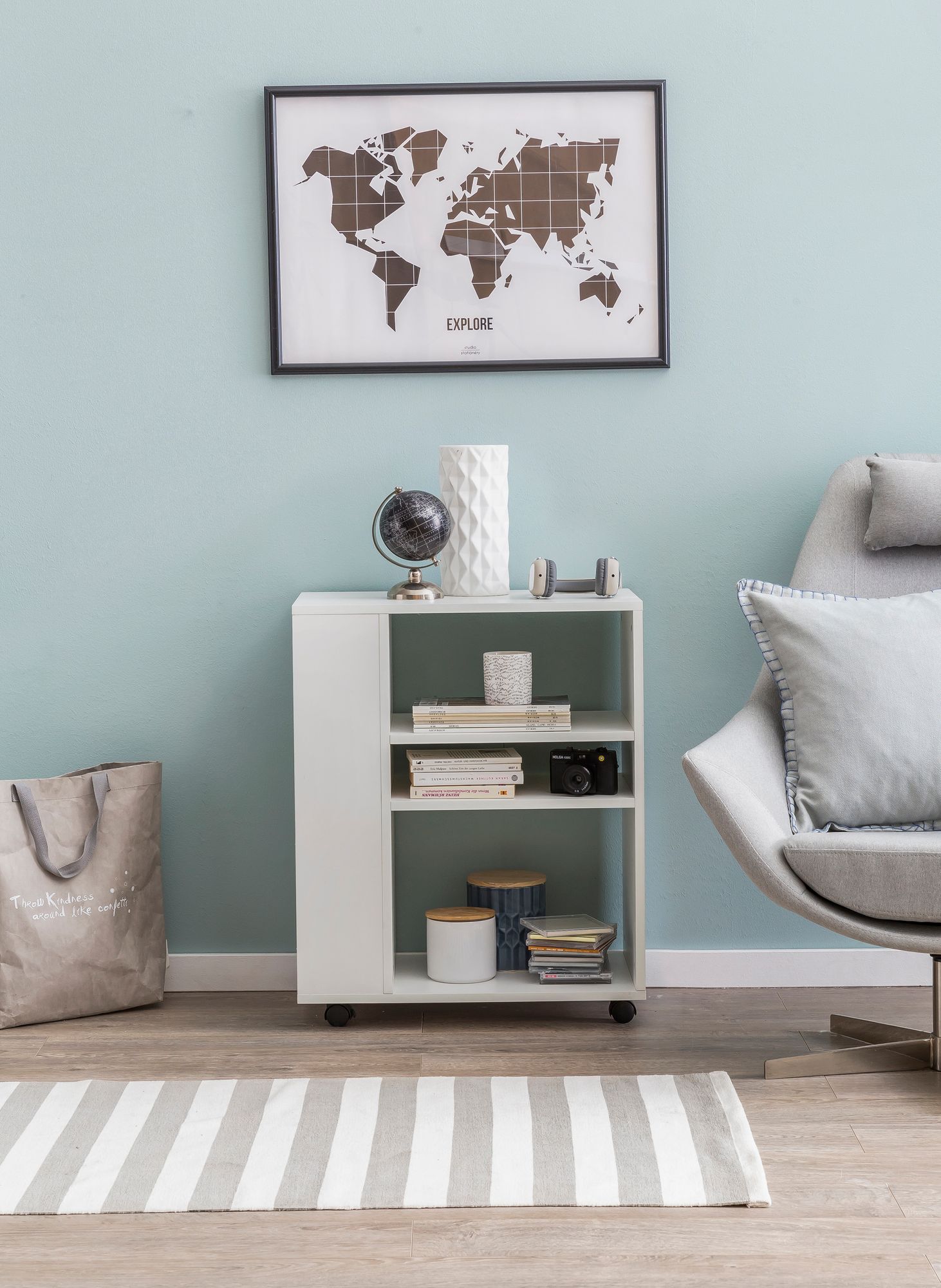 - Material: melaminharzbeschichtete Spanplatte, Kunststoffrollen