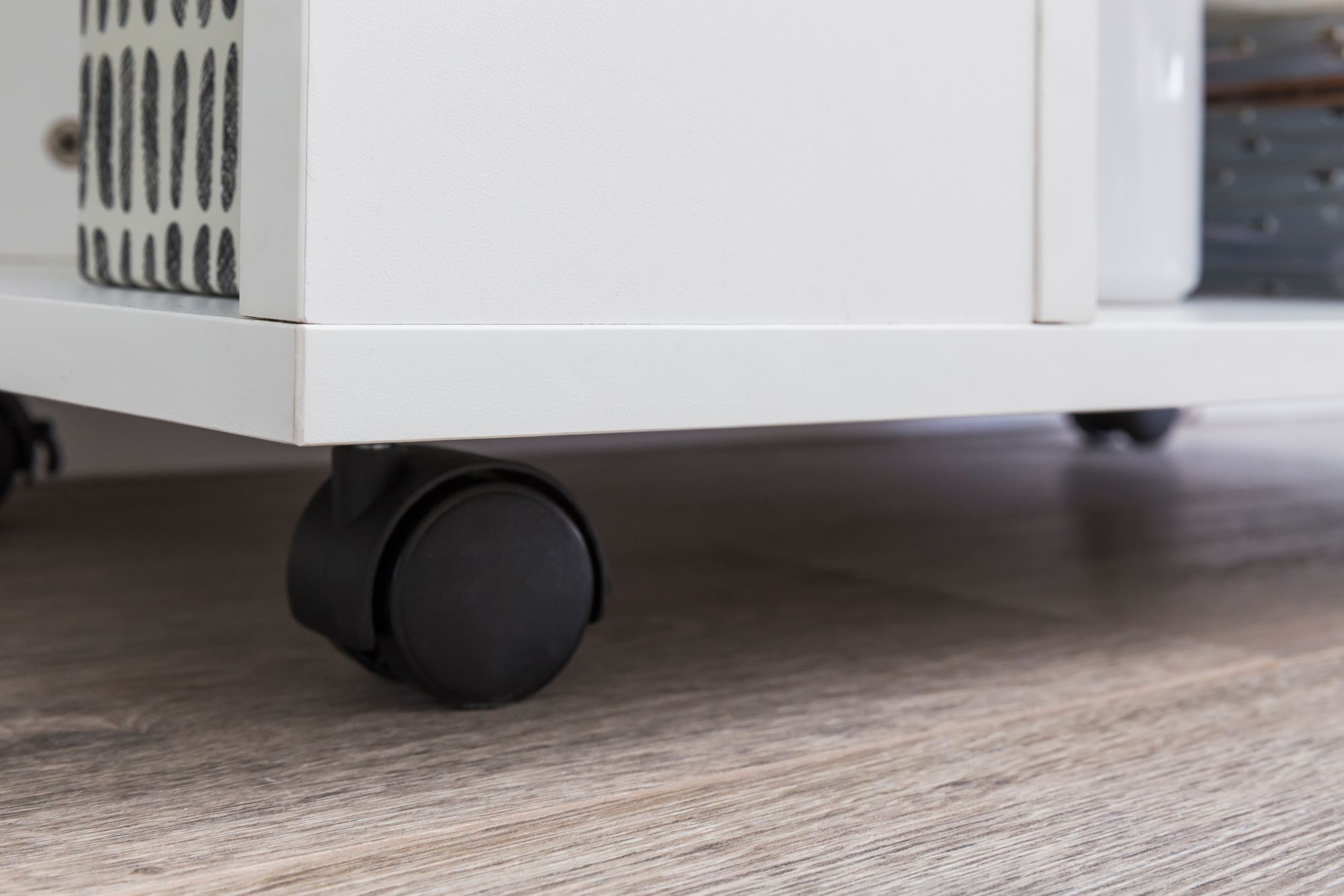 - Farbe: weiß matt, Rollen schwarz