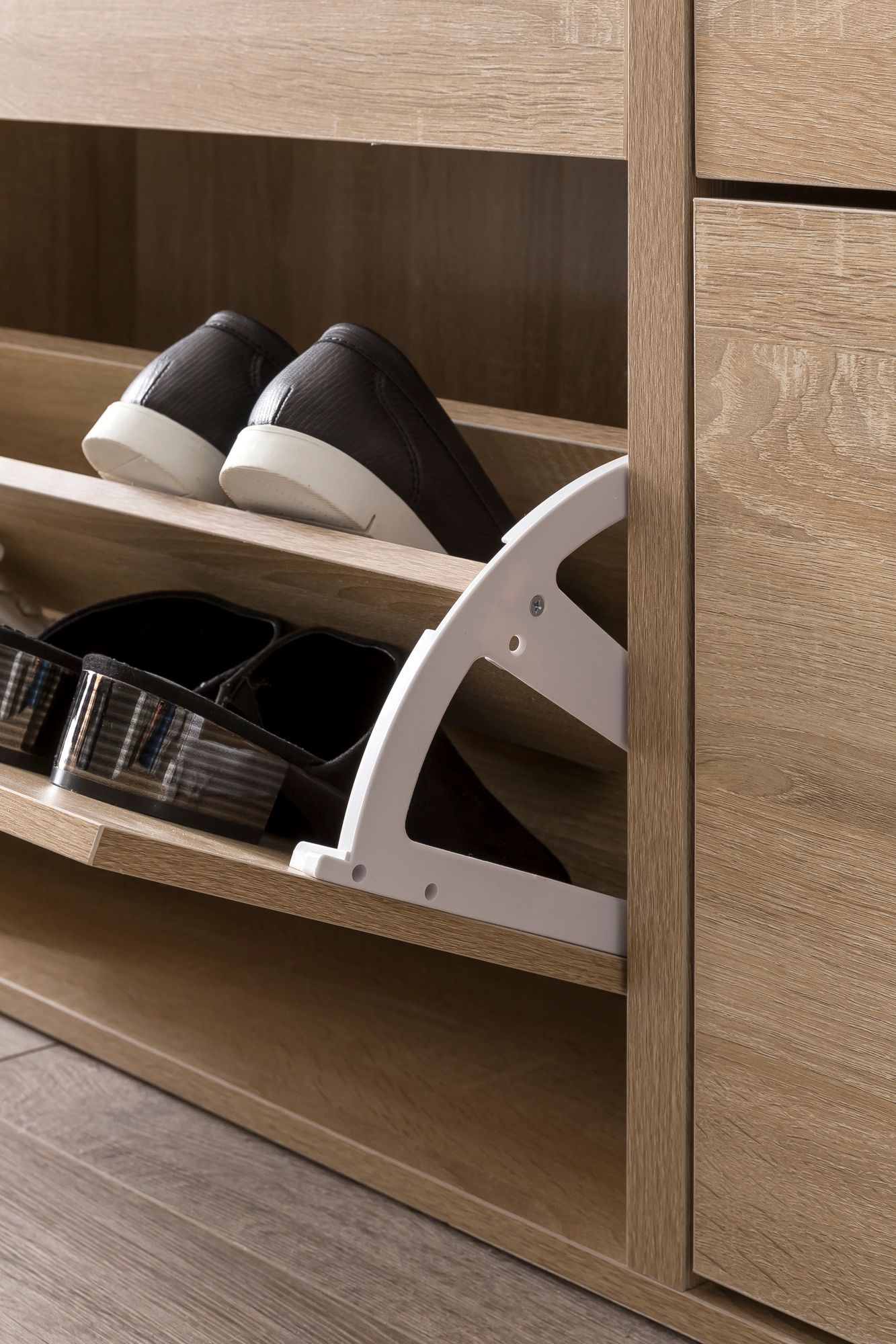 - Vier Fächer mit insgesamt acht Schuhablagen, je Fach Platz für bis zu 3 Paar Schuhe (Größe 39).