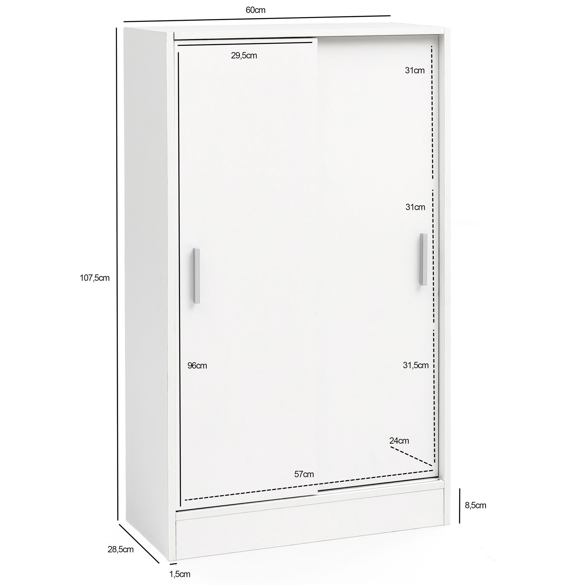 - Gesamtmaße: 60 cm (B) x 107,5 cm (H) x 28,5 cm (T)