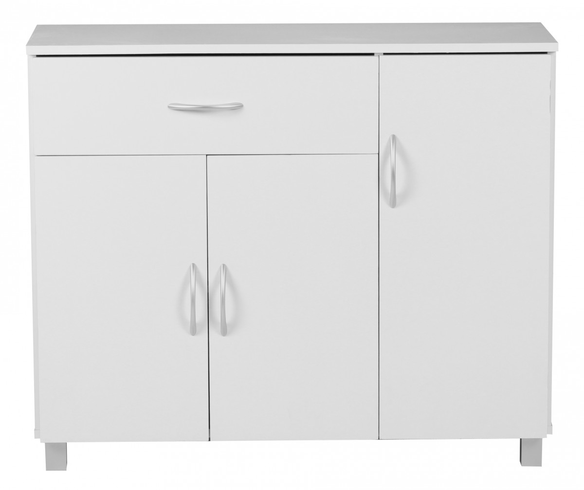Produktinformationen "Design Sideboard SETE Weiß matt 90 x 75 x 30 cm | 1 Schublade & 3 Türen, graue Aluminiumgriffe"