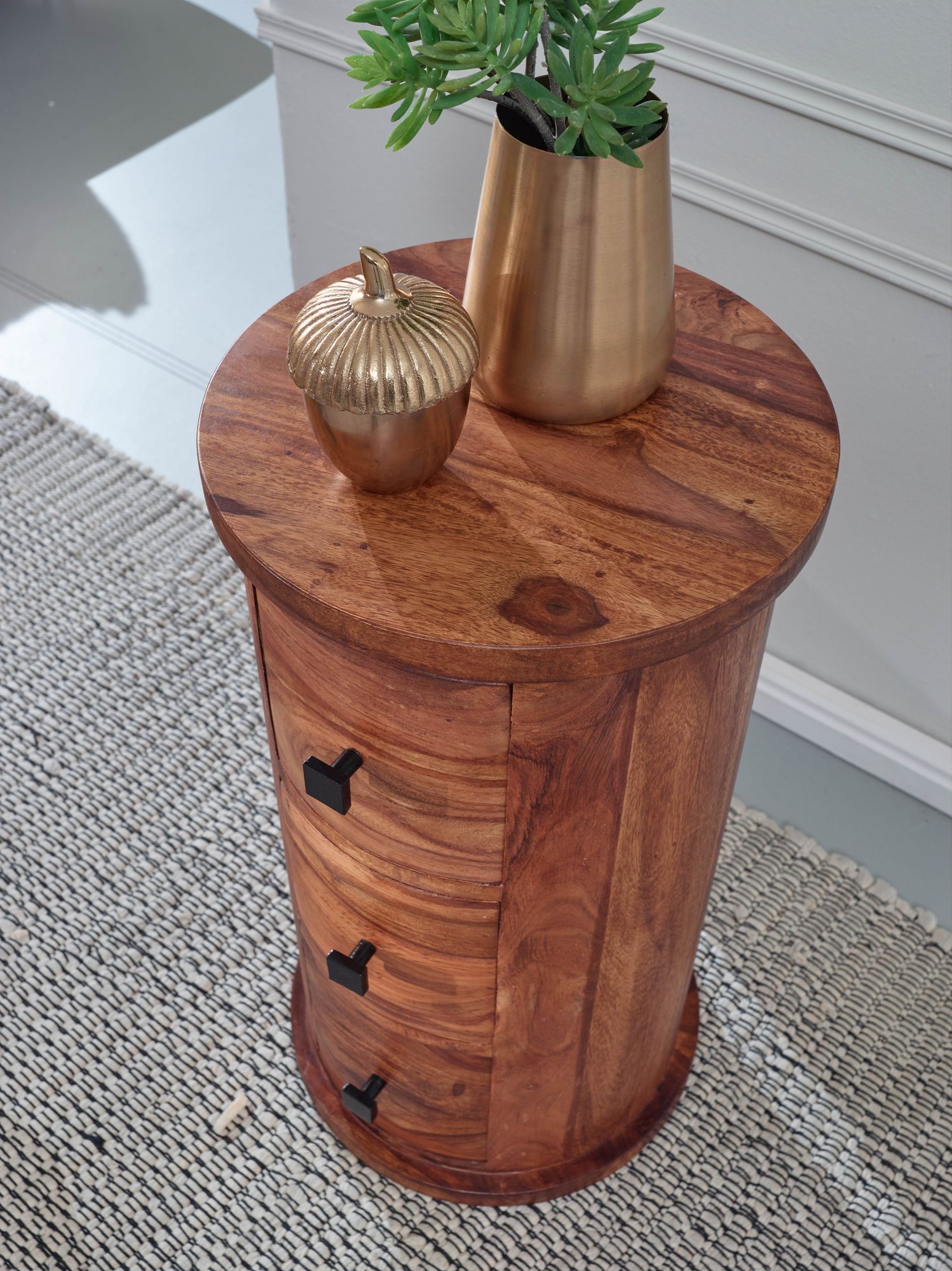 Design Sideboard Sheesham Massivholz Braun | 35x65x35 cm | 3 Schubladen