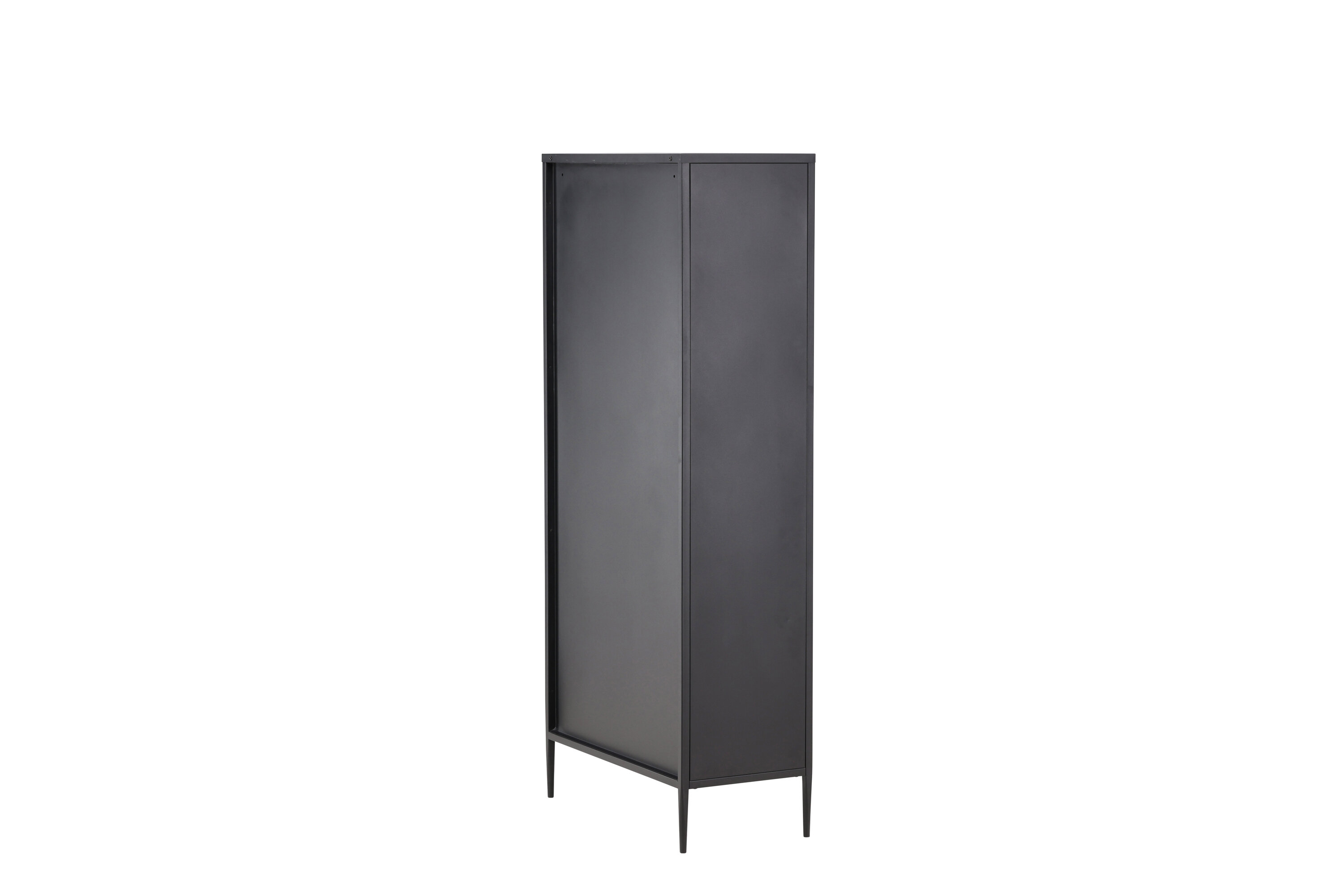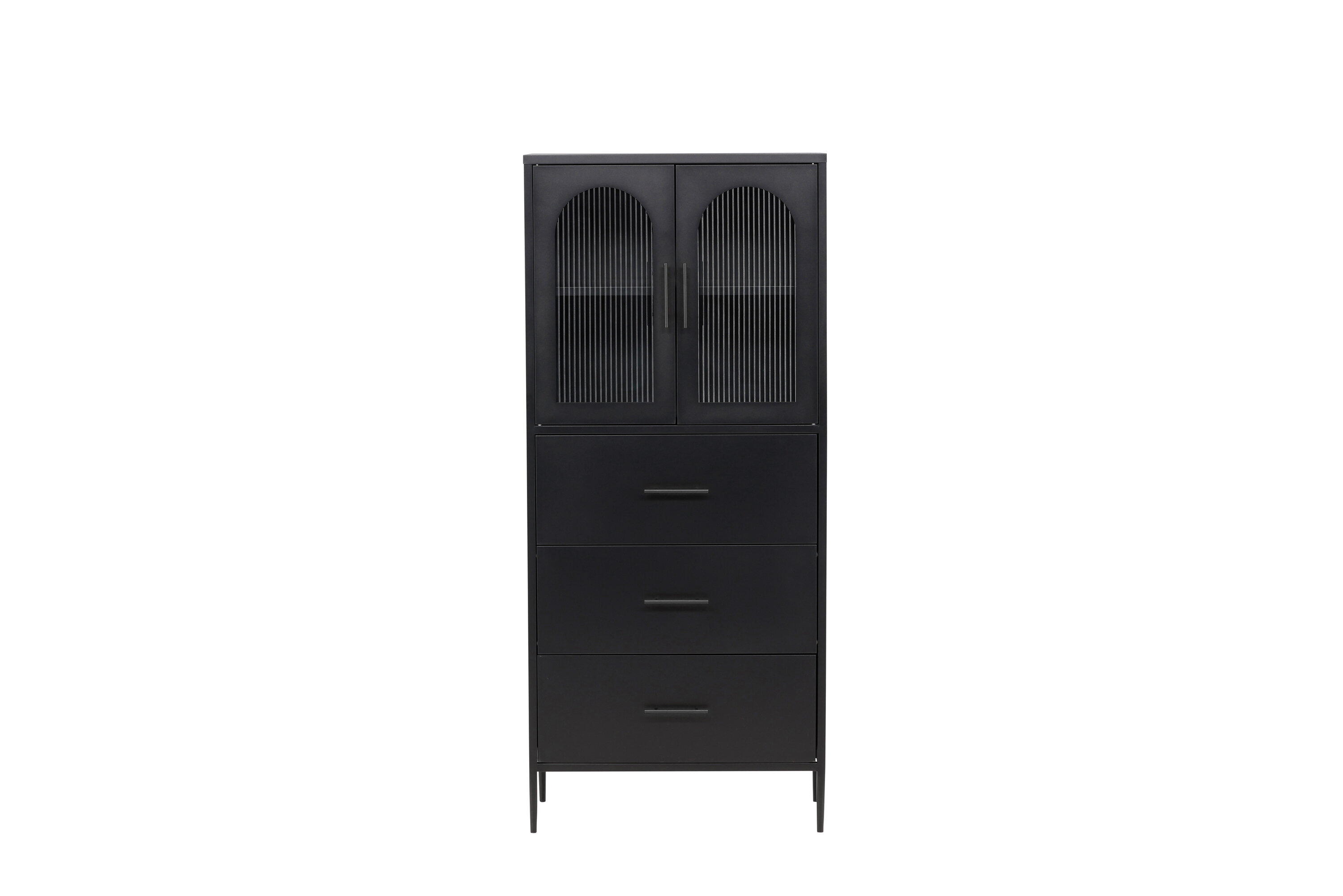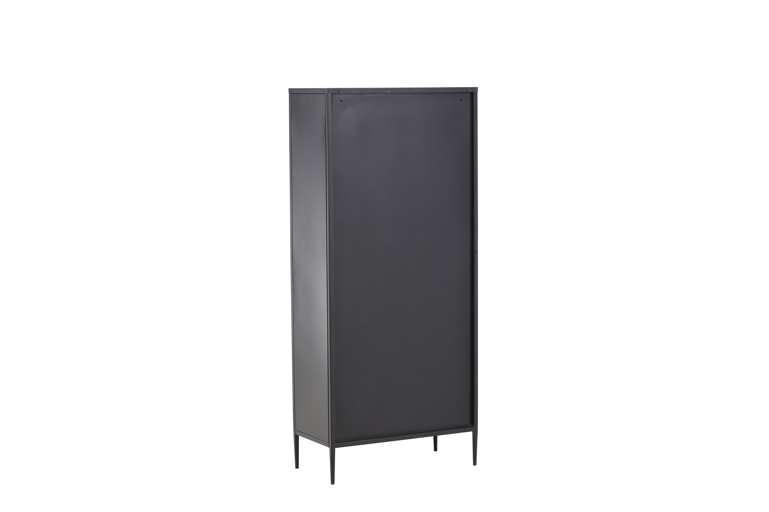 Der stattliche Aufbewahrungsschrank in schwarzem Farbton – Lassen Sie uns La Paz vorstellen! Dieser schwarze pulverbeschichtete Schrank verbindet auf wunderbare Weise Eleganz mit Funktionalität. Die messingfarbenen Griffe verleihen der Oberfläche des Schranks einen subtilen Hauch von Luxus und ziehen sofort Ihre Aufmerksamkeit auf sich.