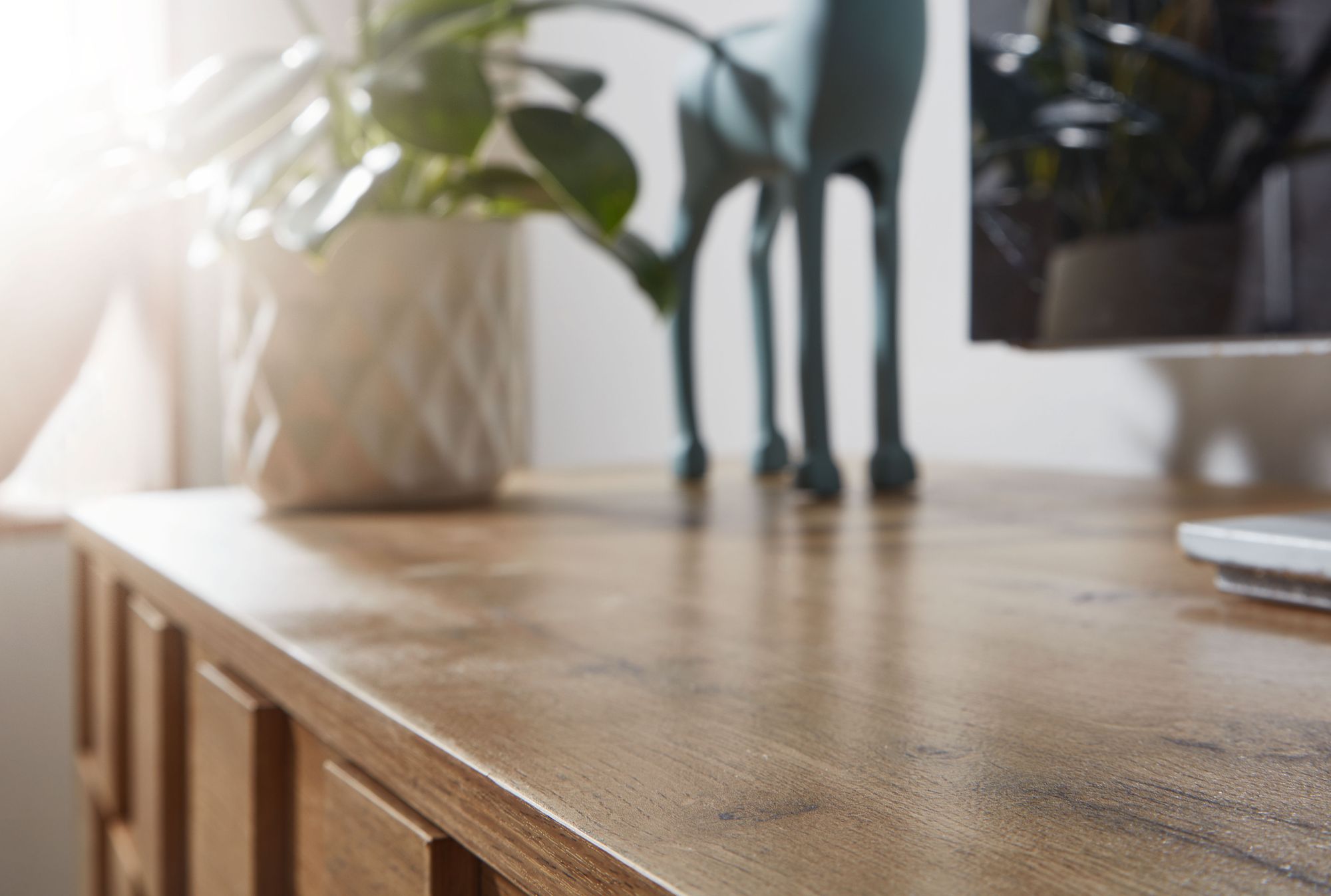 - Material: folierte Spanplatte Eichenoptik, Beine Massivholz Eiche