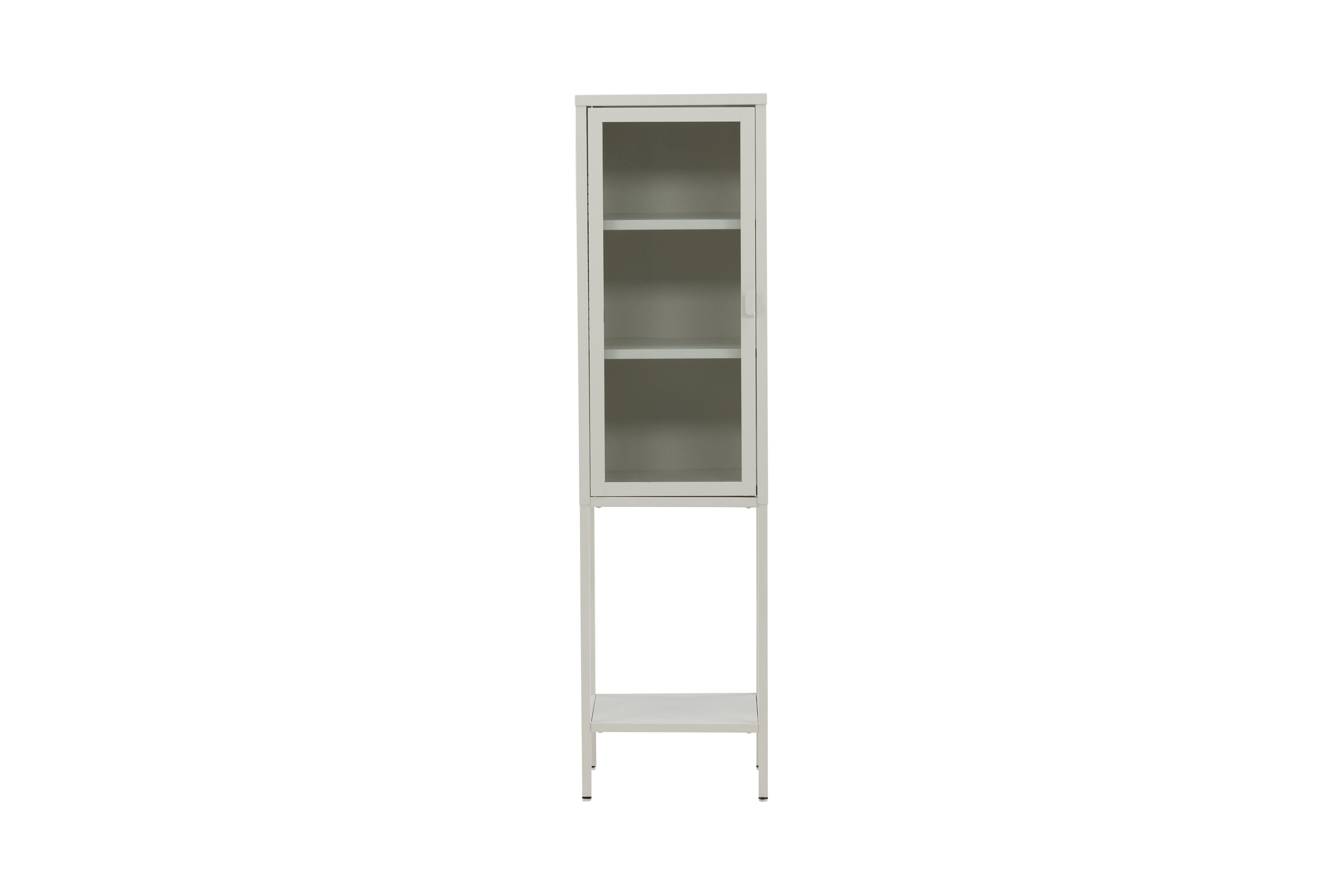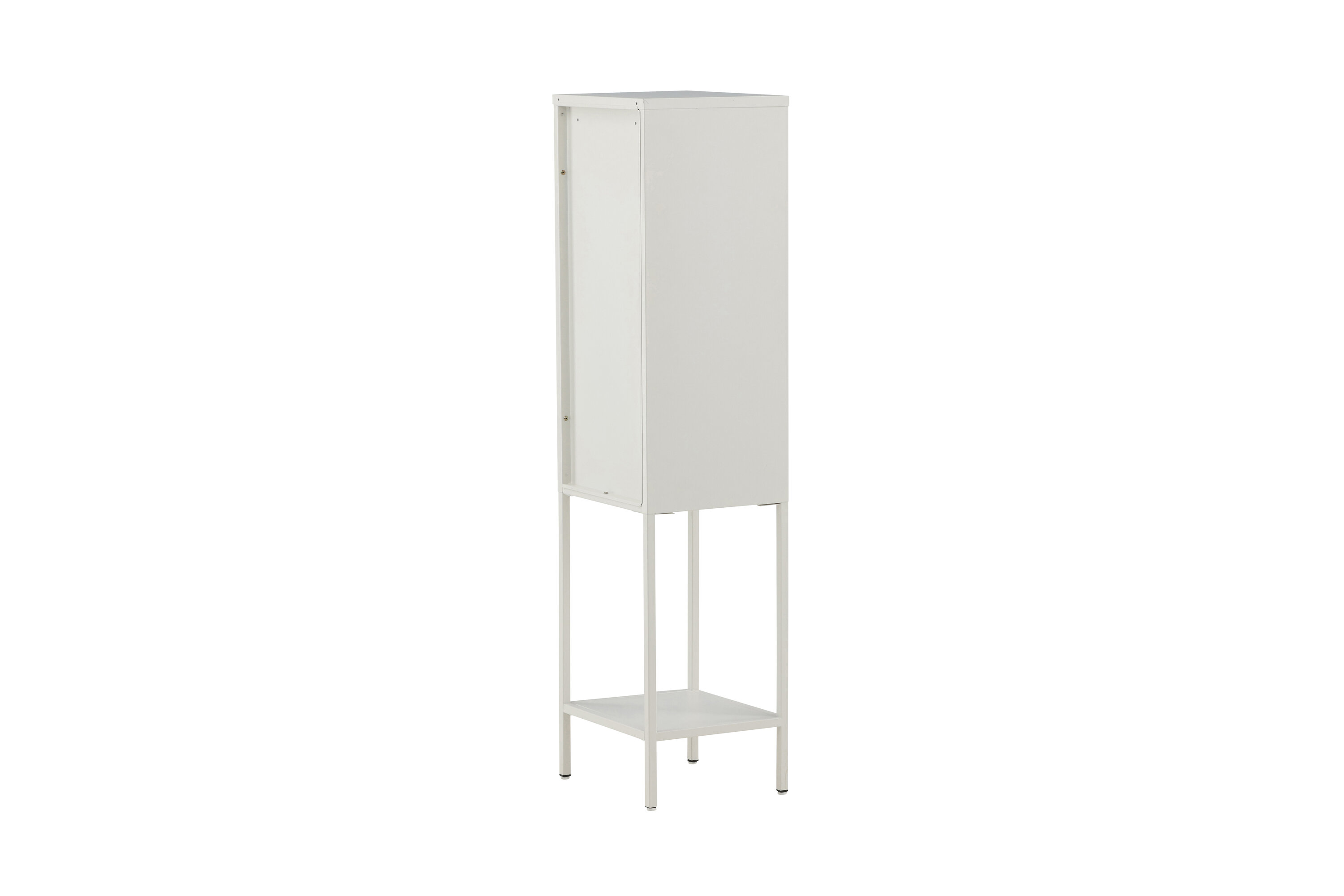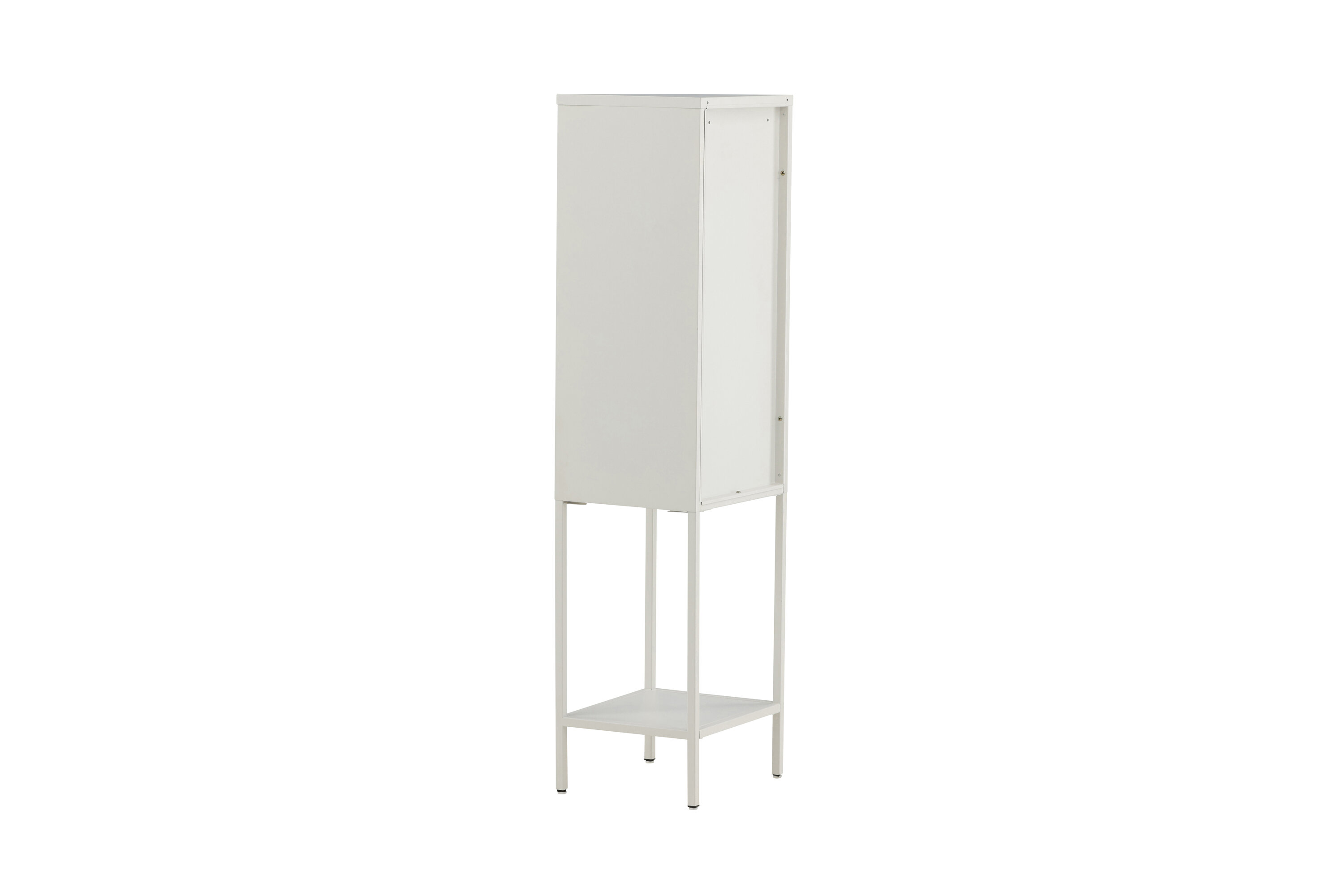 Bettlakenschränke sind eine beliebte und praktische Ergänzung des Interieurs! Dieser Schrank der Serie Misha hat eine stattliche Höhe mit einem Ganzen im modernen Industriedesign, aus pulverbeschichtetem weißem Stahl mit einer Glastür. Das Glas lässt schönes Licht in den Schrank und hebt alles, womit man ihn füllt, wunderschön hervor. Es gibt drei intelligente Reliefoberflächen, die zum Aufbewahren von Porzellan, Büchern oder zum Dekorieren mit schönen Innendetails verwendet werden können. Maße: Länge: 40,5 cm, Breite: 35 cm, Höhe: 150 cm. Leichtere Montage ist erforderlich.
