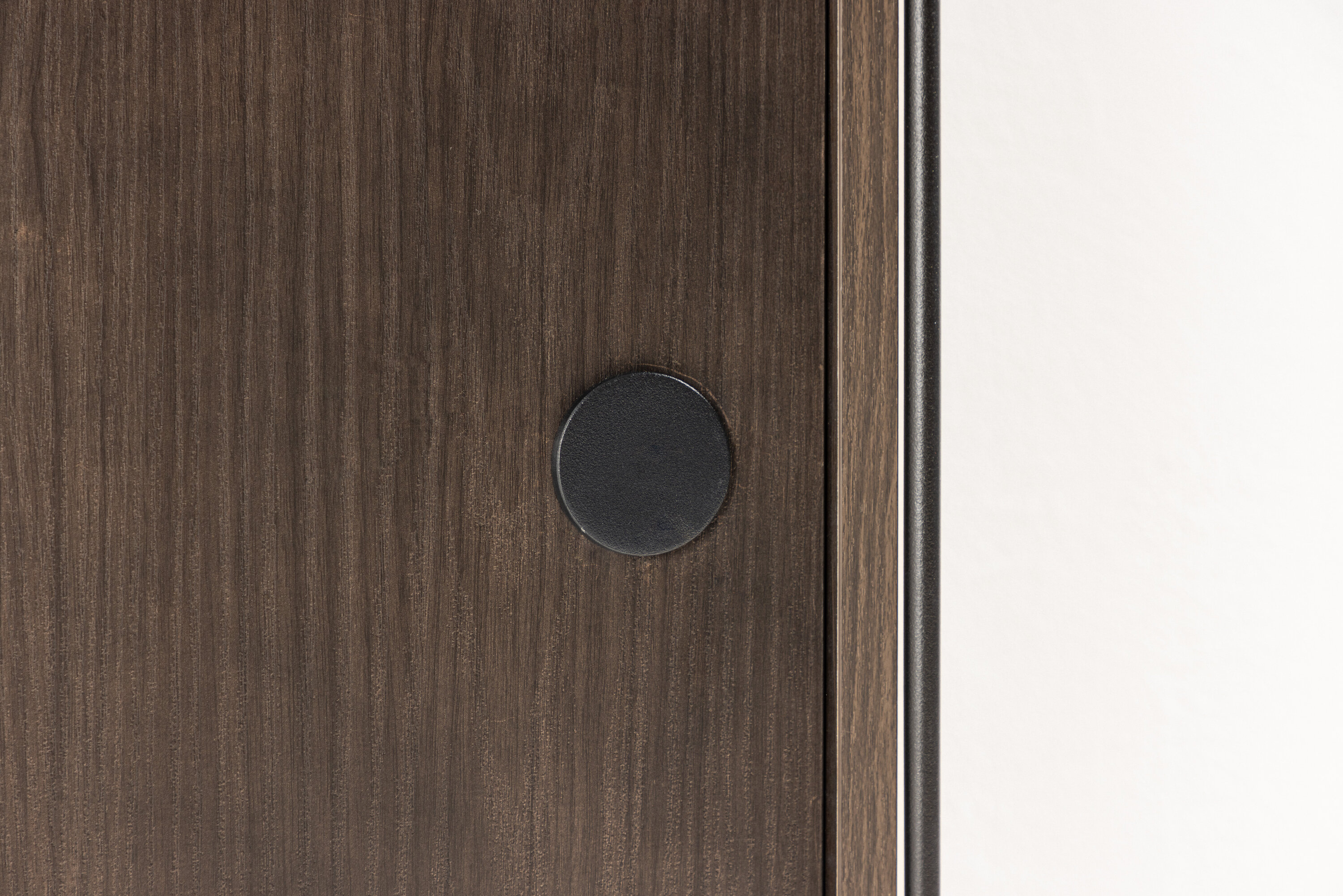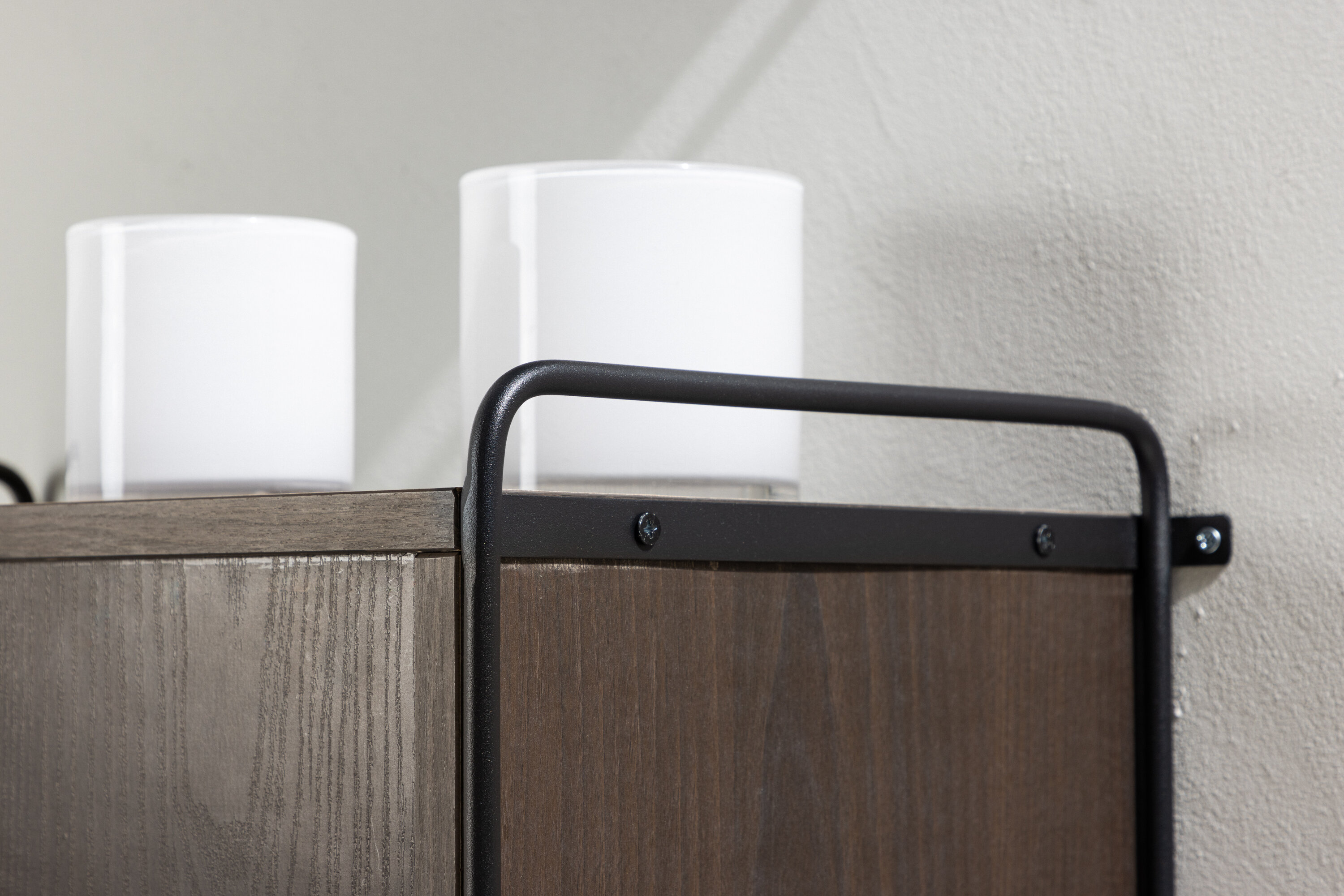 Dekorieren Sie Ihr Zuhause mit Hilfe unseres trendigen Wandregals aus dunkelbraunem Holz aus der Paris-Serie gemütlich und clever! Mit einem schlanken schwarzen Stahlrahmen unterstützt dieses Wandregal einen eleganten Schrank mit zwei stilvollen Türen in dunkelbraunem MDF. Erleben Sie die Vorteile der diskreten Aufbewahrung Ihrer Habseligkeiten und verleihen Sie Ihren Wänden einen modernen Touch.