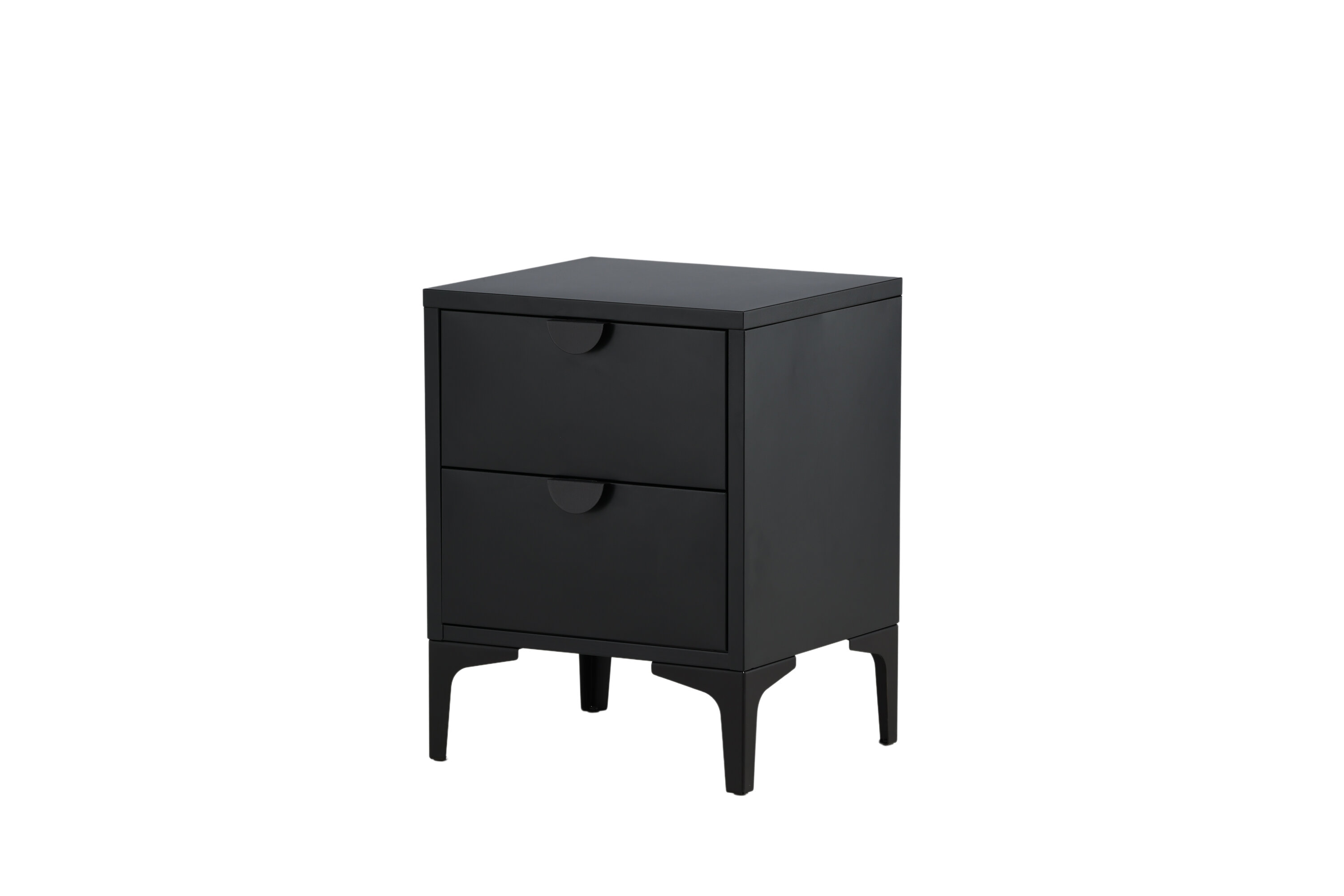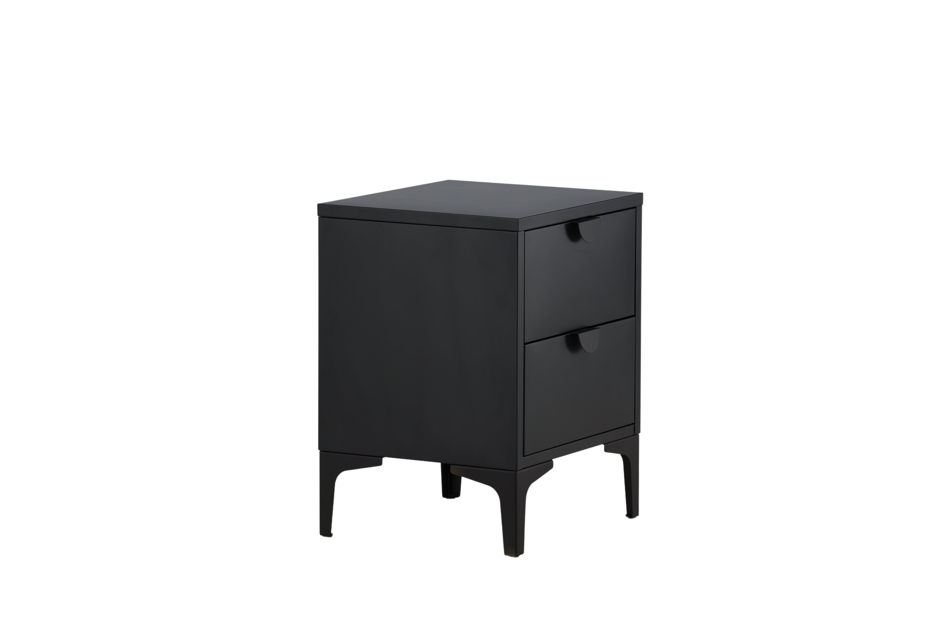 Der Nachttisch der Serie Piring eignet sich perfekt als Aufbewahrungslösung! Der quadratische Beistelltisch aus schwarzem Stahl verfügt über zwei Schubladen für versteckte Aufbewahrung und eine stilvolle Platte mit einem angemessenen Platz für eine Bettlampe, ein gutes Buch und eine mögliche gepflegte Innendekoration für einen modernen Look. Der Nachttisch wird von vier Beinen angehoben, die ein luftigeres Gefühl vermitteln, und das gerade Design macht den Tisch einfach zu platzieren und anzupassen. Sehen Sie sich unsere Bilder an, um sich inspirieren zu
