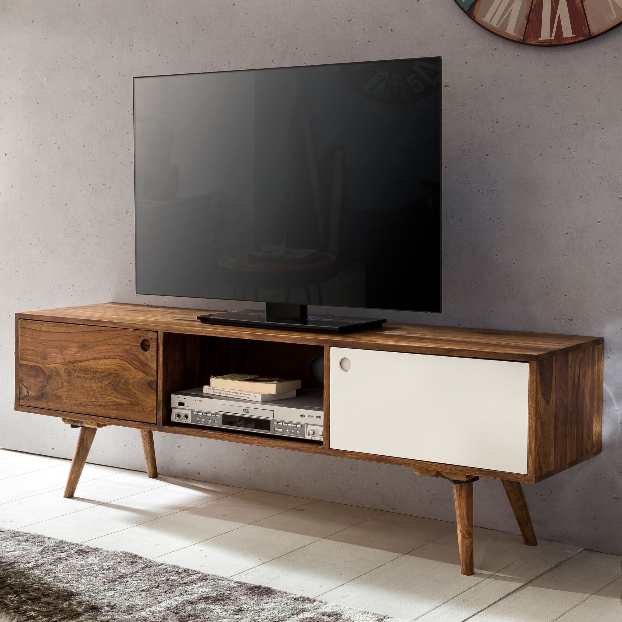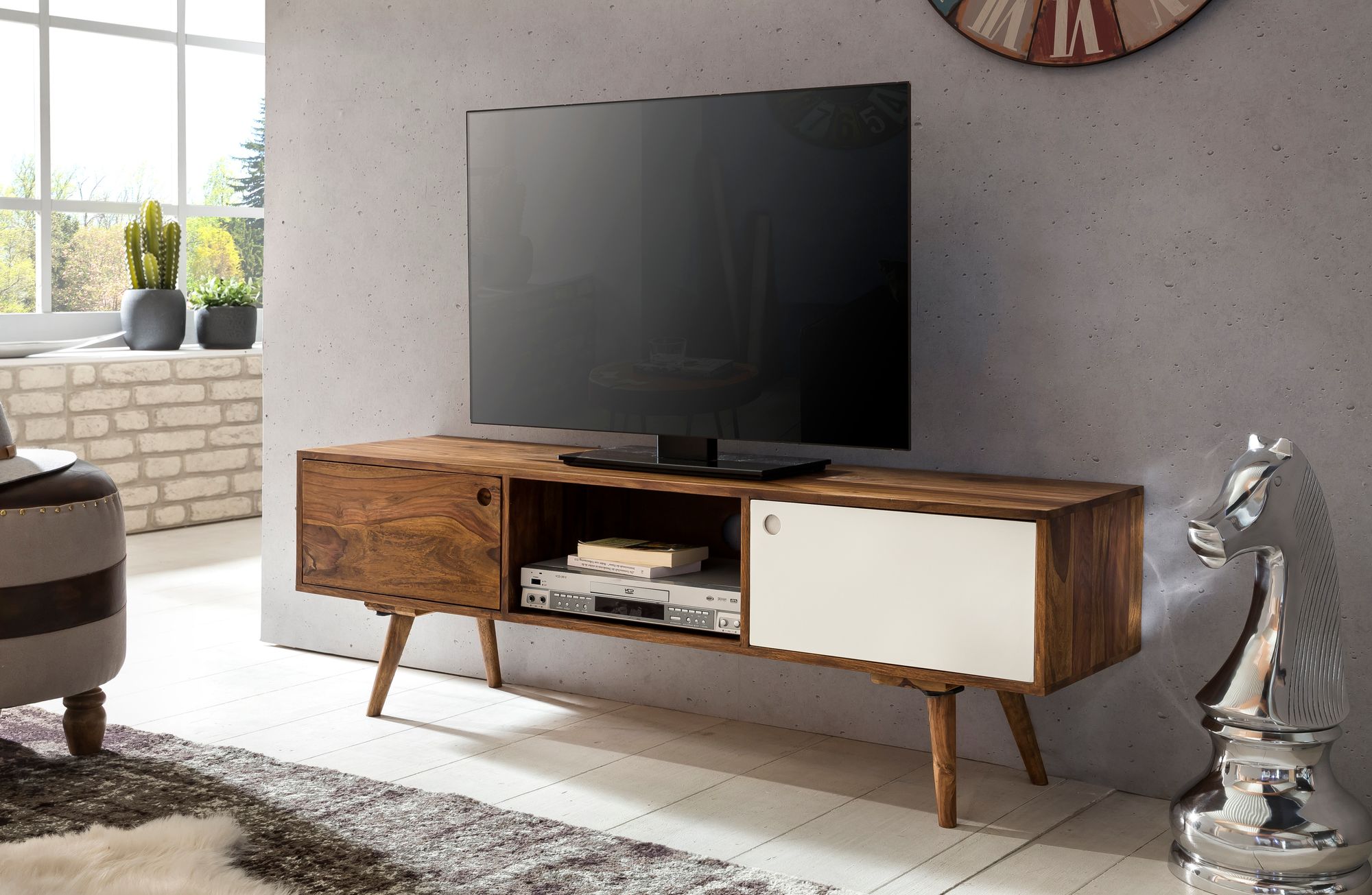 TV Lowboard REPA 140 cm | Massivholz Sheesham | Holzfarben & Weiß | Maße 140x45x35 cm