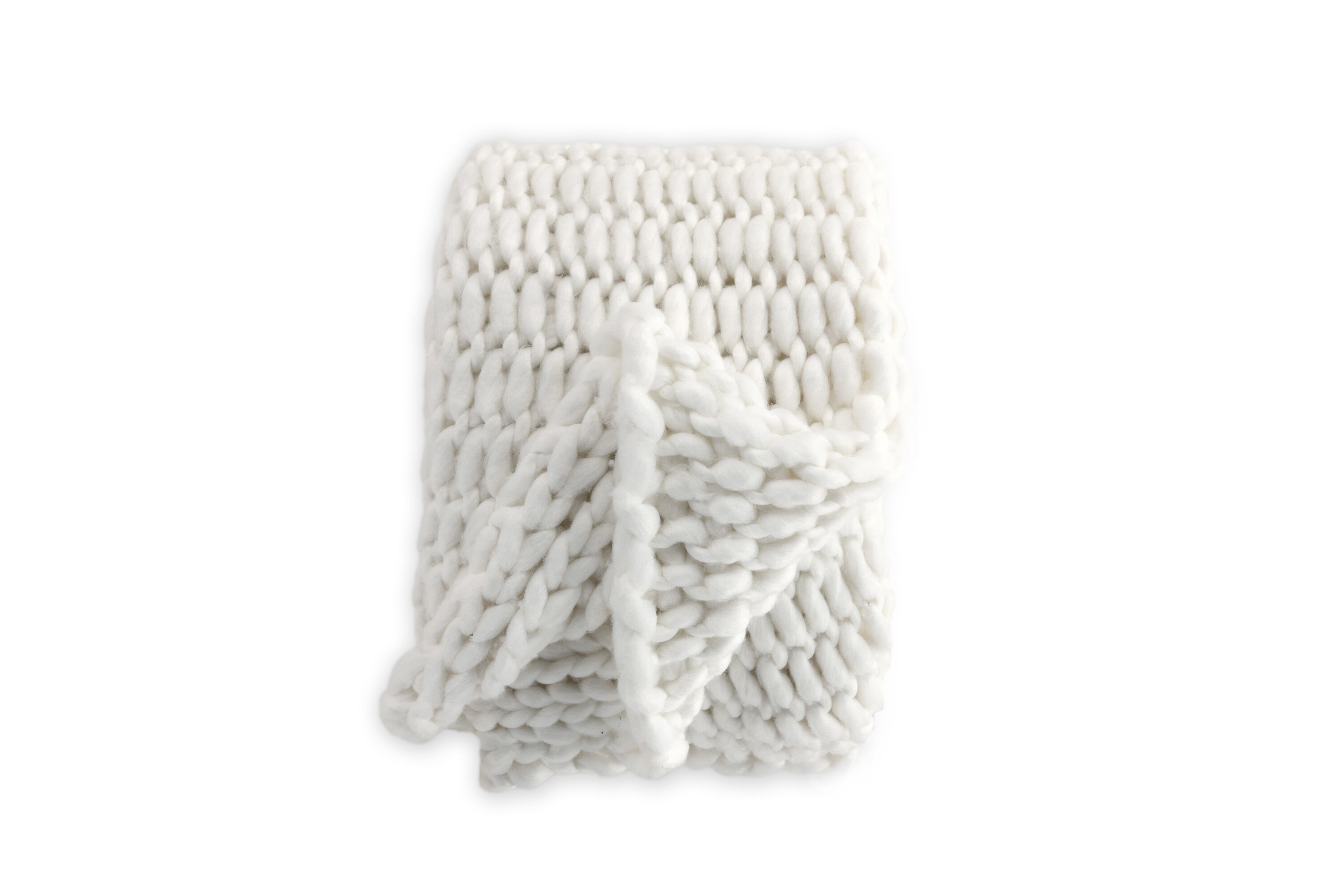 Entdecken Sie die stilvolle Decke Kate aus einem eleganten weißen Polyester. Mit ihren großzügigen Maßen von 170x130 cm ist Kate der perfekte Begleiter für gemütliche Momente und Entspannung.