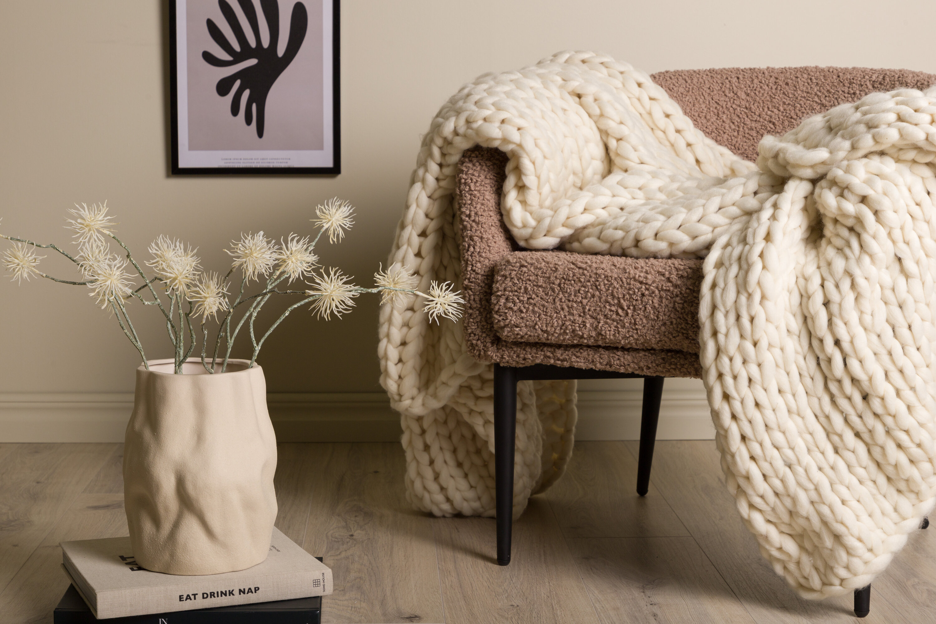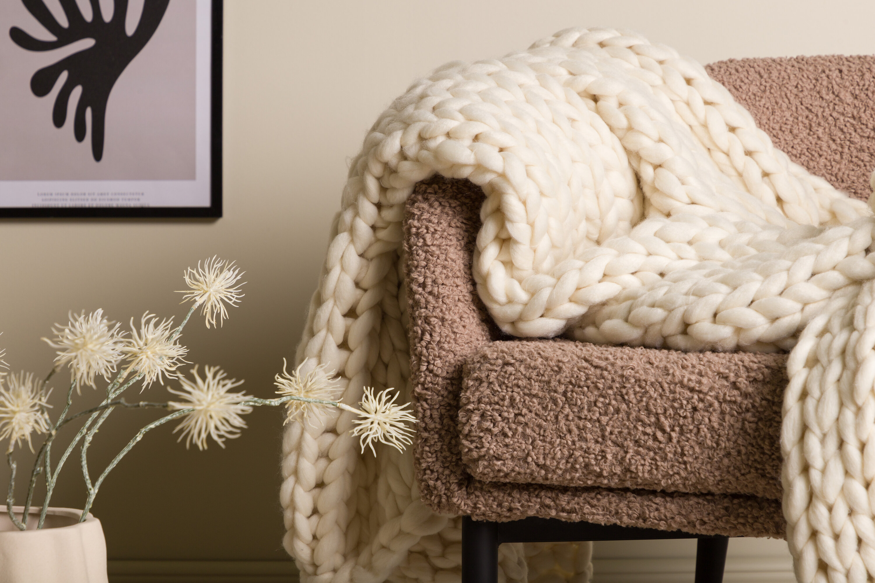Kate ist ein weiches beiges Karomuster, in das man sich kuscheln kann, wenn die Kälte eindringt.