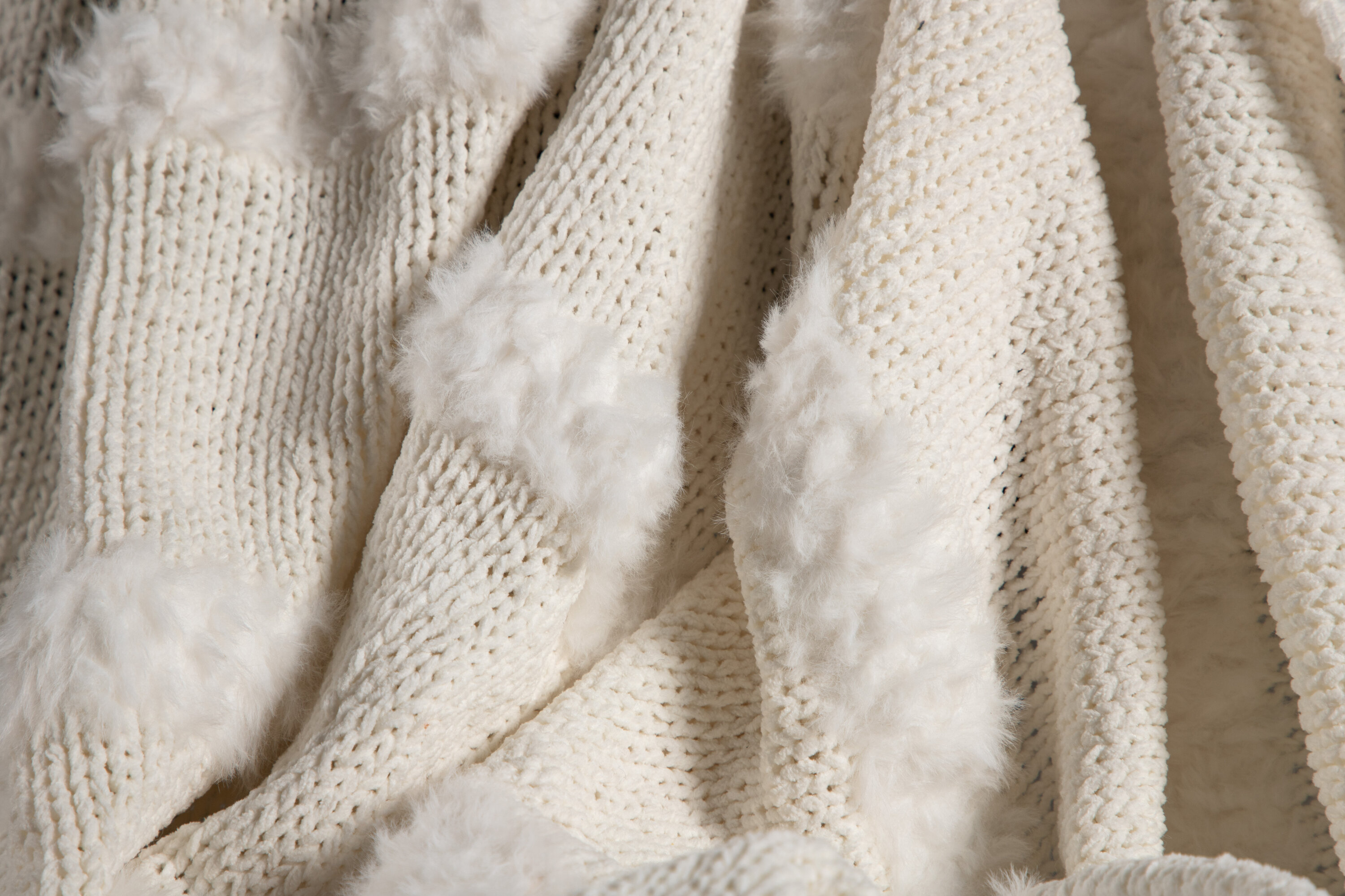 Die Decke, die Ihr Zuhause groß und gemütlich macht. Die Decke ist aus weißem Kunstfell und hält Sie garantiert warm während der Filmnacht. Das Karo besteht aus Polyester, Chenille und Kunstfell. Maße 130x170.