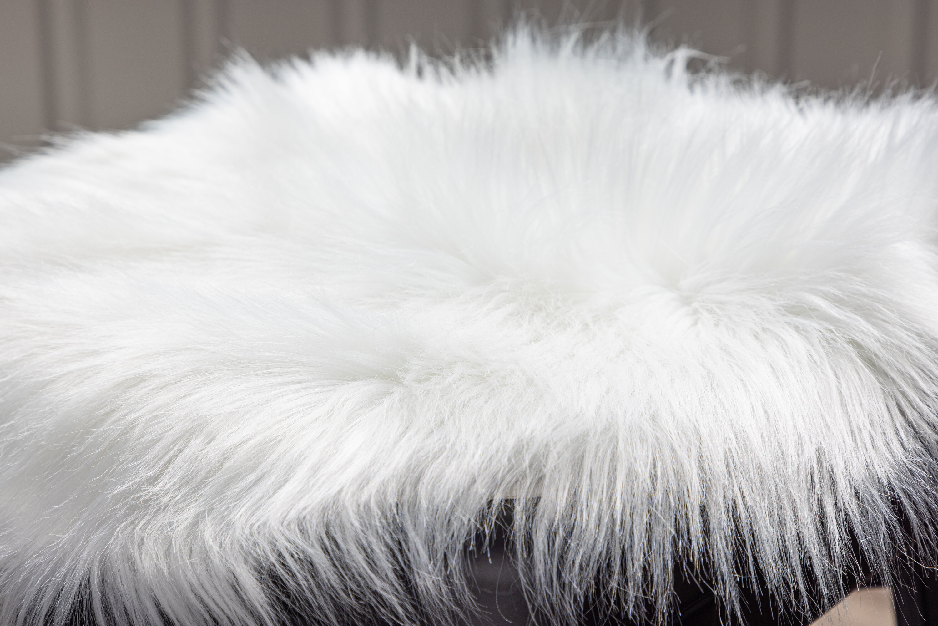 Schaffen Sie eine zeitlose und elegante Atmosphäre mit dem Katy Stuhlkissen aus weißem Kunstfell!
