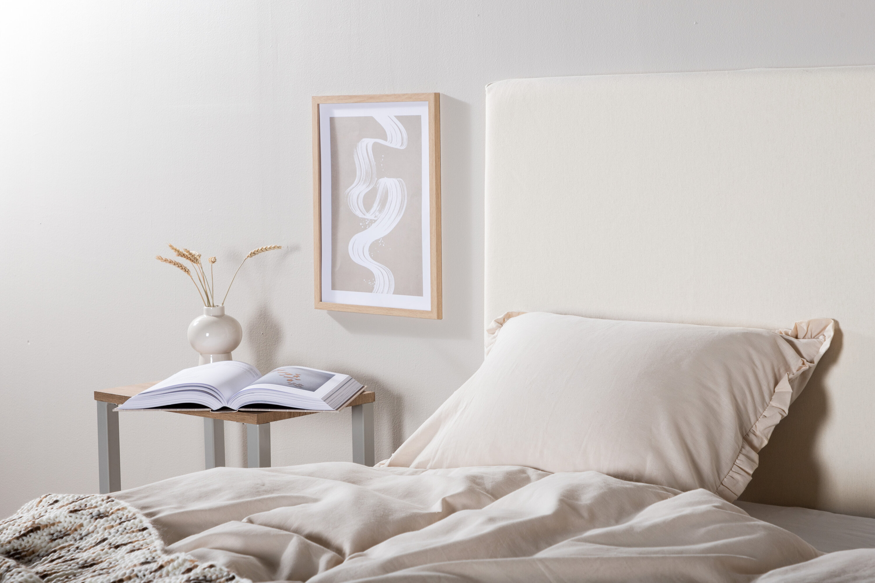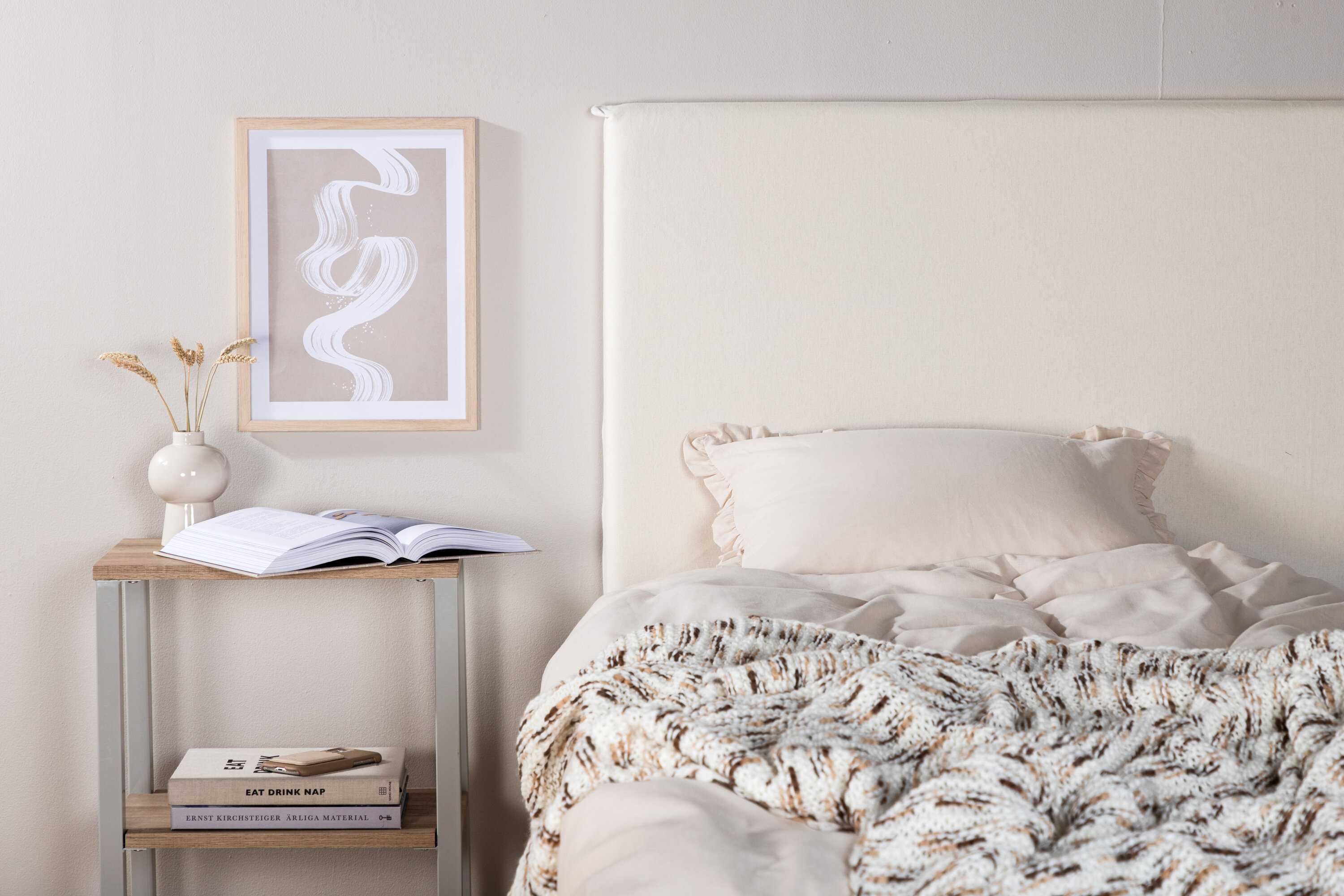 Die Kopfteilabdeckungen Saga ist die perfekte Lösung für diejenigen, die Ihr Kopfteil satt haben oder oft zu Hause wechseln möchten! Schnell und unkompliziert schafft man mit dem Bezug ein ganz neues Gefühl im Schlafzimmer, ohne einen ganz neuen Giebel kaufen zu müssen. Die weiße, frische Farbe passt in alle Haushalte und wird zusammen mit anderen Textilien und Dekorationen ordentlich kombiniert und hinterlässt ein luxuriöses und stilvolles Gefühl im Schlafzimmer. Befestigen Sie den Landboard Overdraft schnell und einfach mit den genähten Klettverschlüssen an der Rückseite des Kopfteils. Wir empfehlen, bei 40 Grad mit ähnlichen Farben zu waschen. Maße: 180 cm