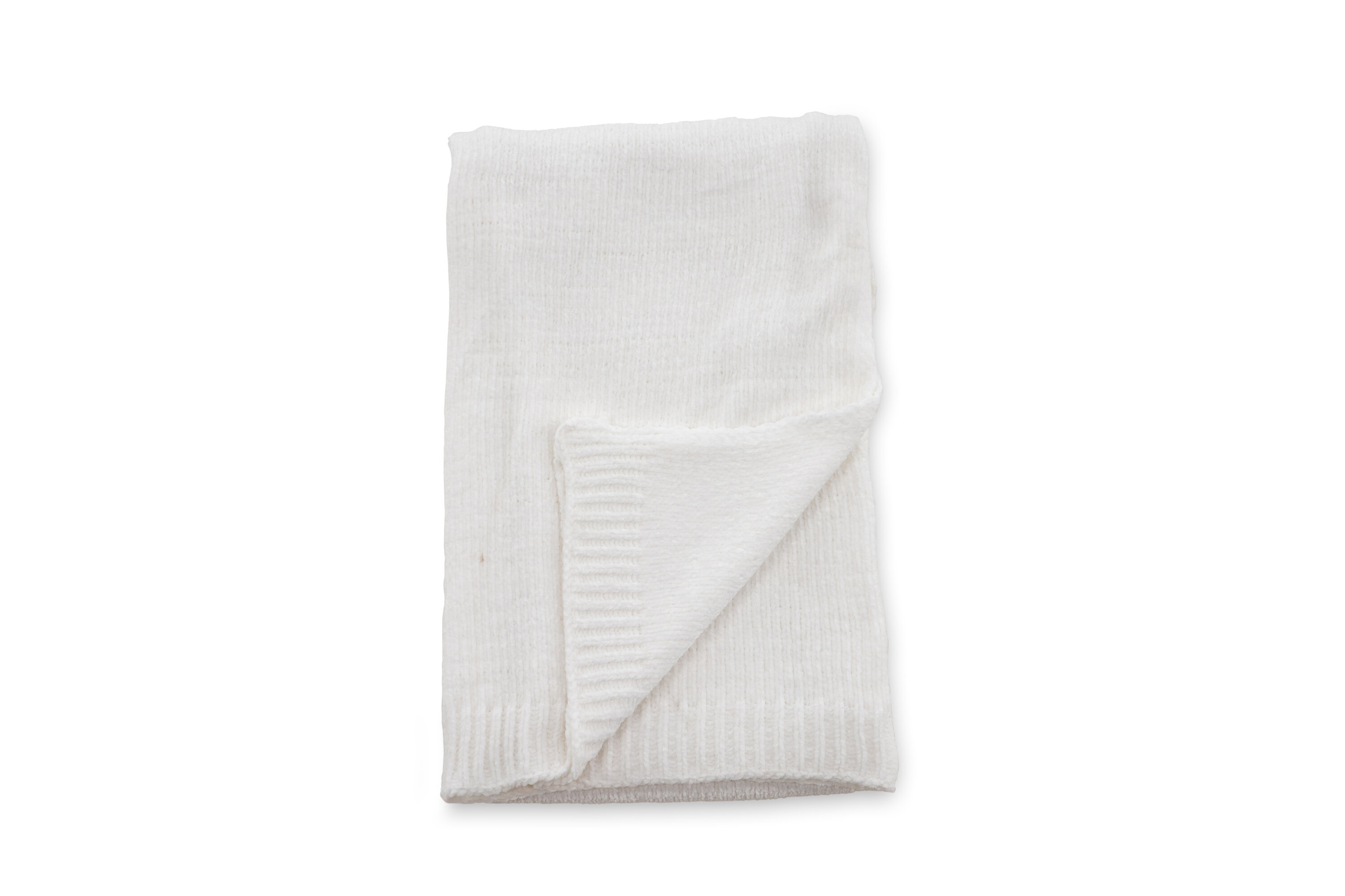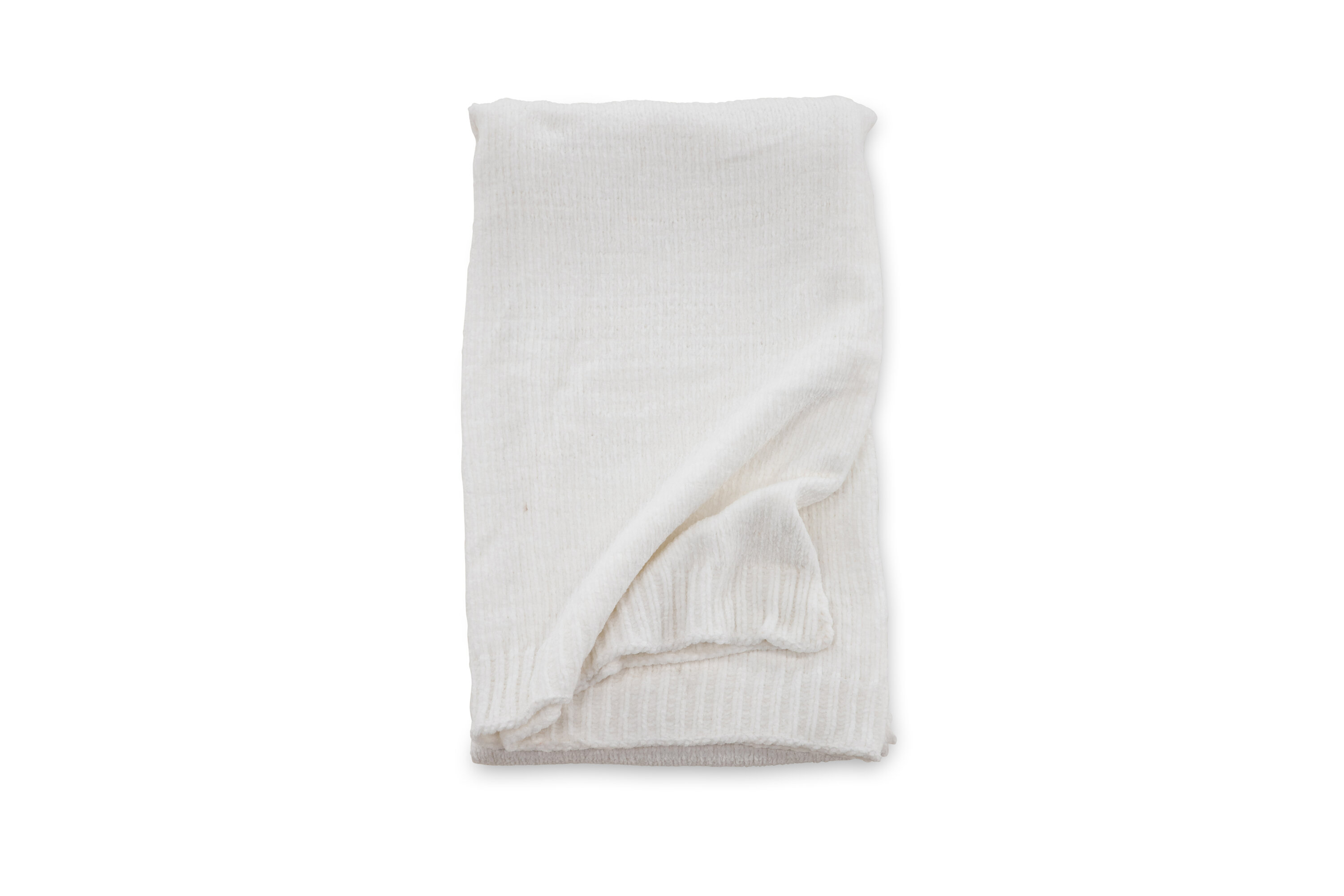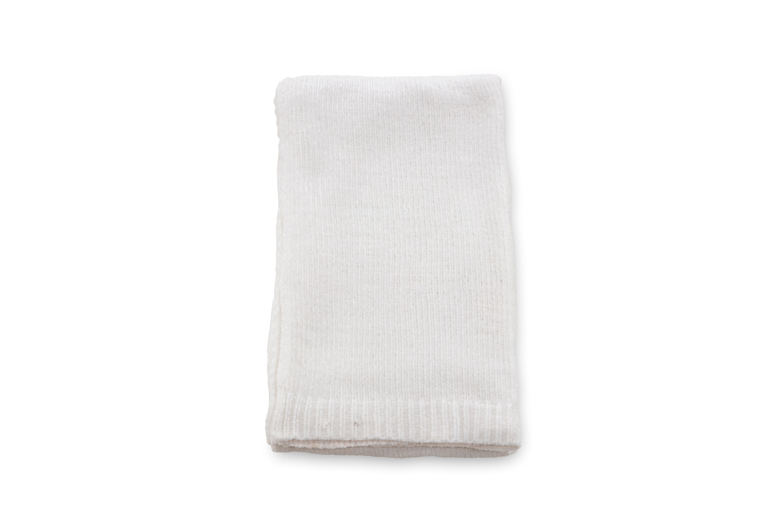 Weißes Karomuster aus glänzendem Chenille- und Polyestermaterial. Gemütliches Plaid in Größe 130x170 cm. Pflegehinweis: Maschinenwäsche 30 Grad, trocken hängend.