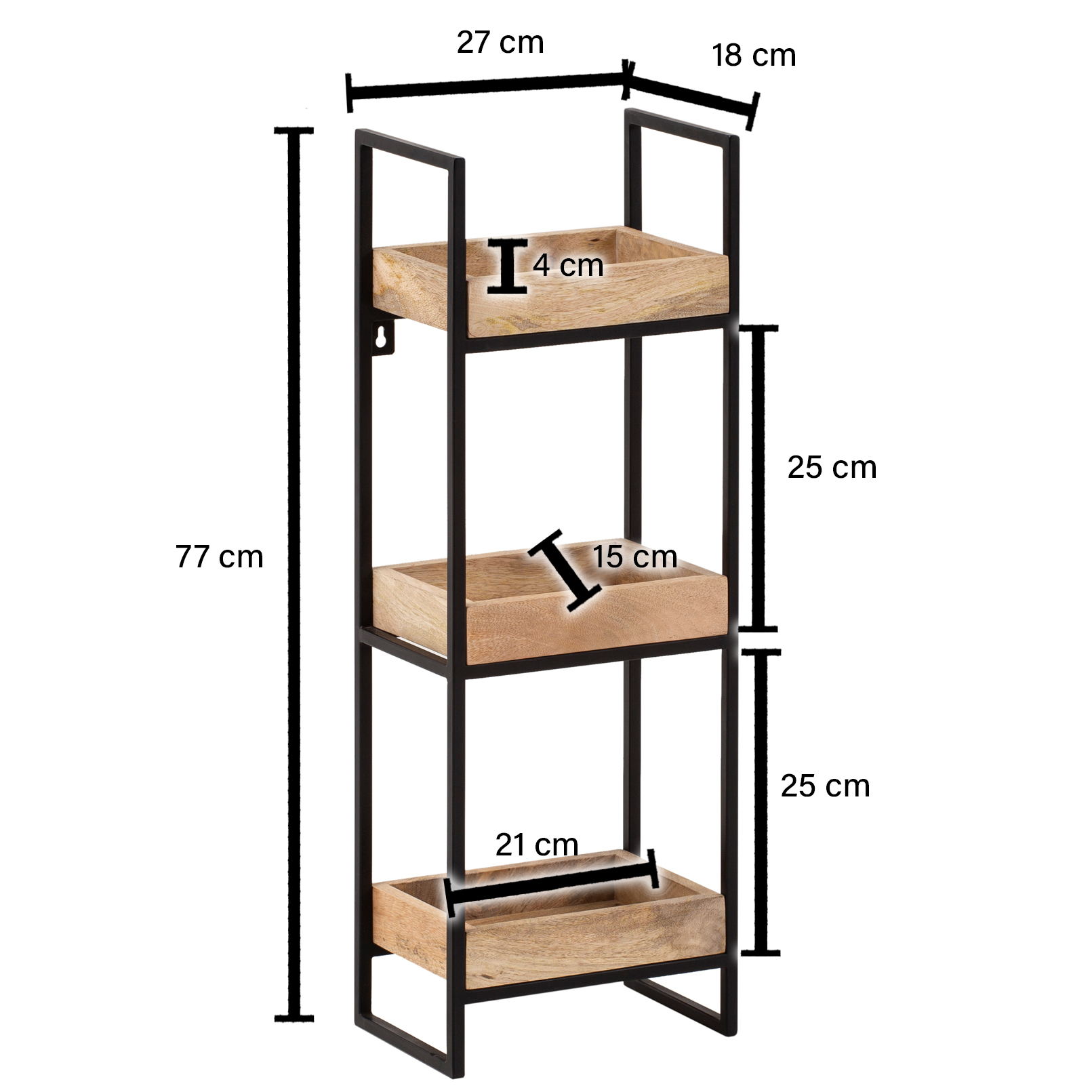 - Abmessungen Ablagen (B x H x T): 21 x 4 x 15 cm