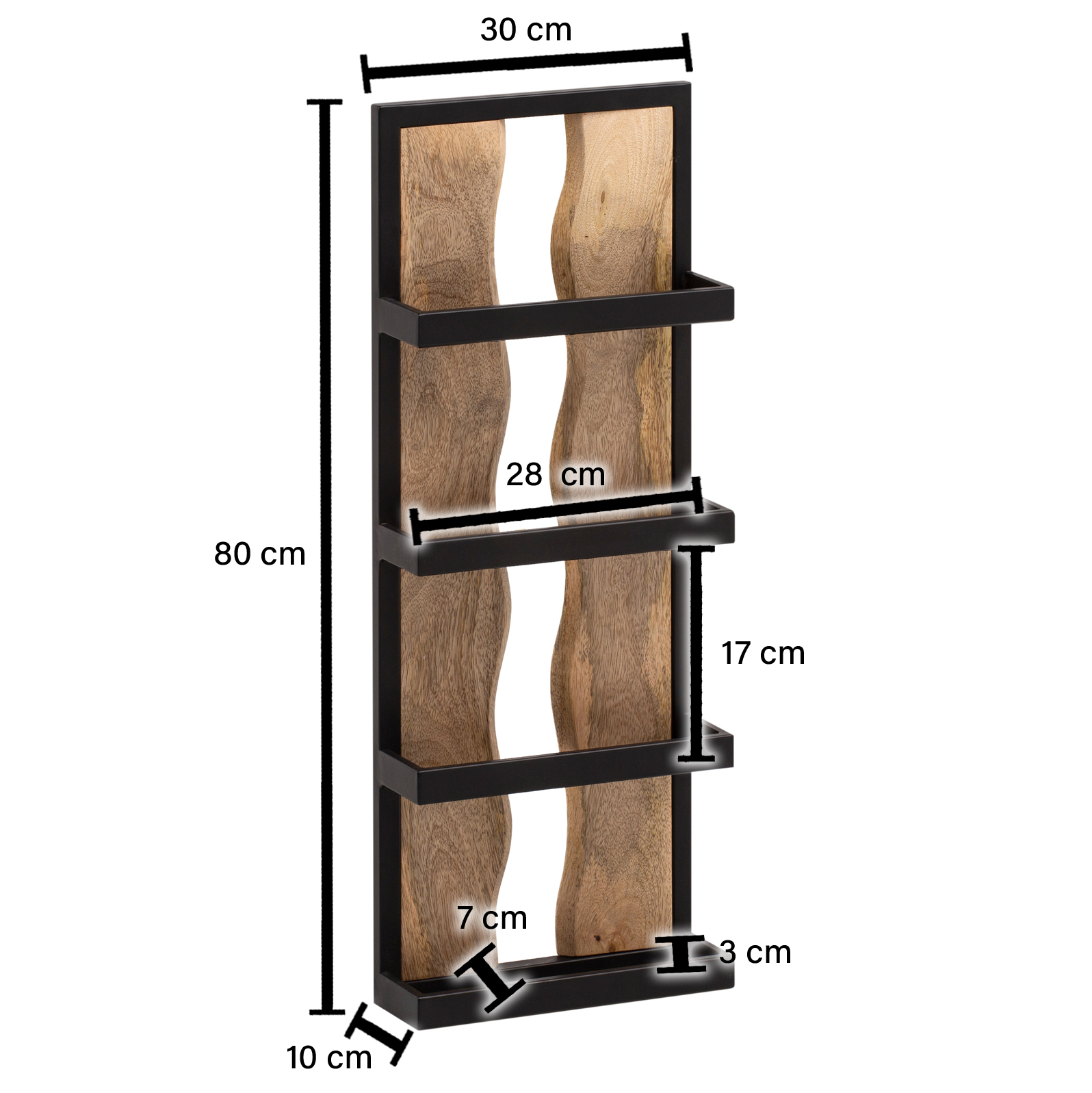 Wandregal Mango Massivholz / Industriemetall | Schwarz und Hellbraun | 30x80x10 cm