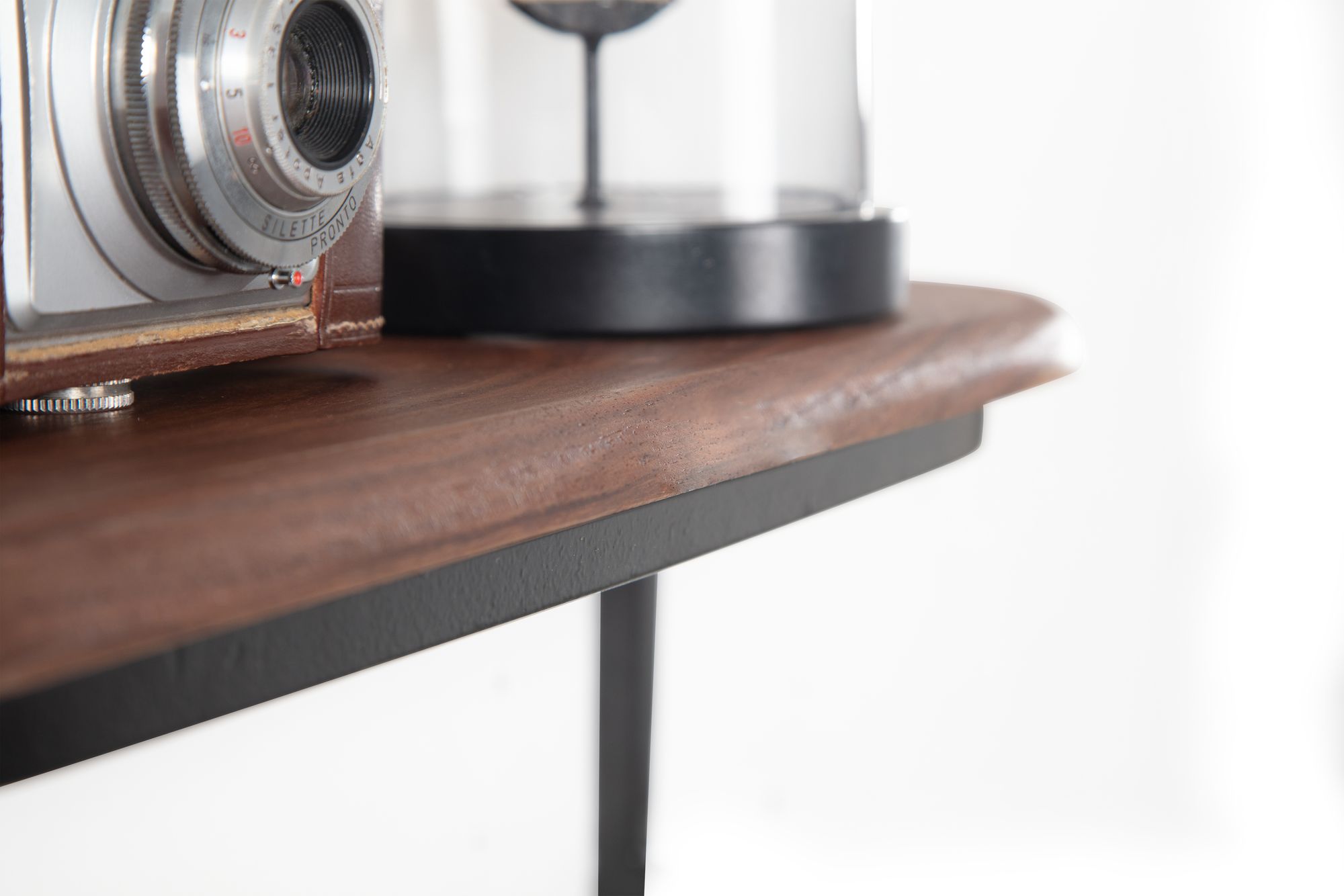 - Material: Ablagefläche aus Sheesham-Massivholz mit Klarlack, Rahmen pulverbeschichtetes Eisen