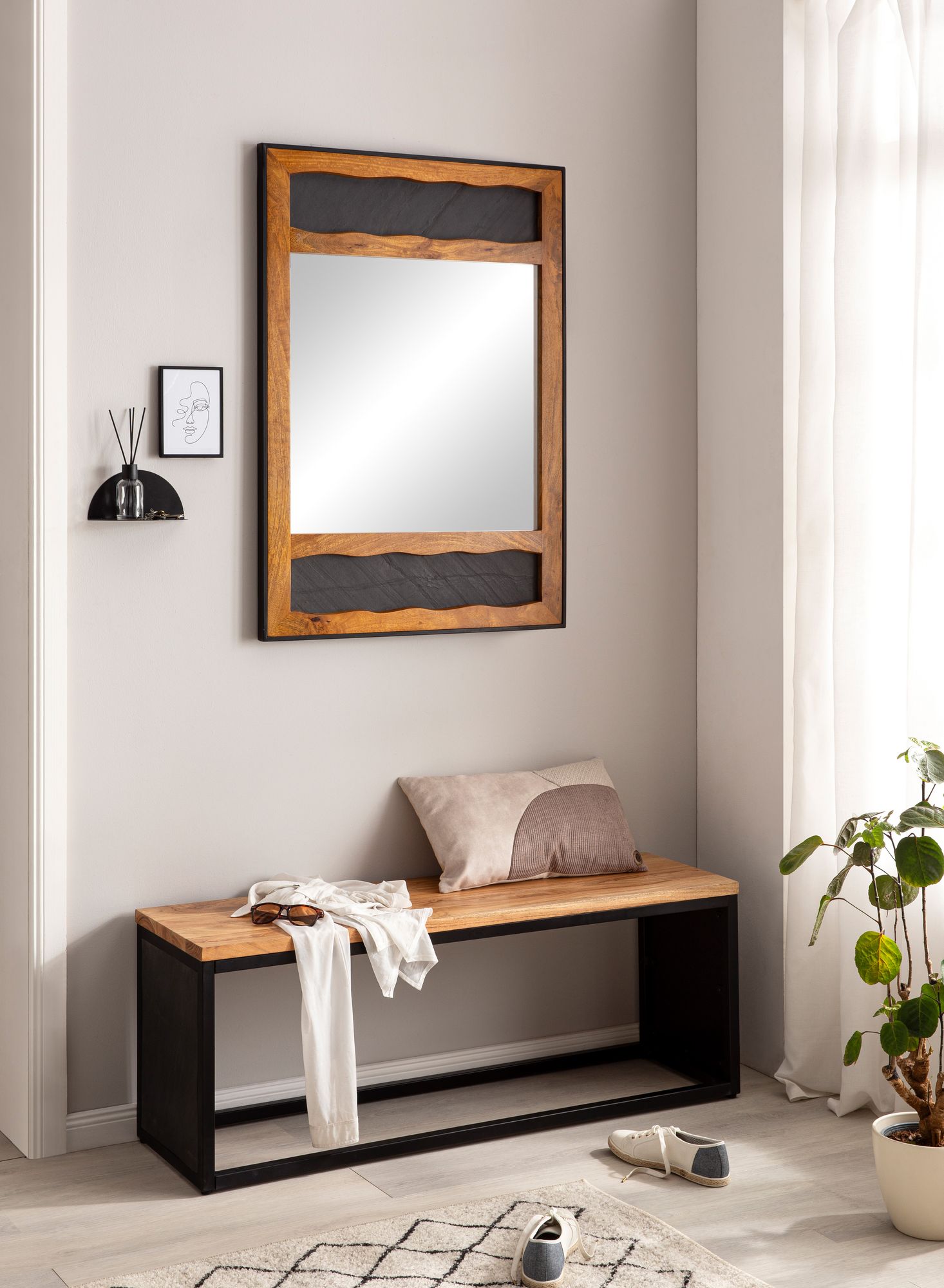 - Rahmen: Mango Massivholz, mit Klarlack beschichtet