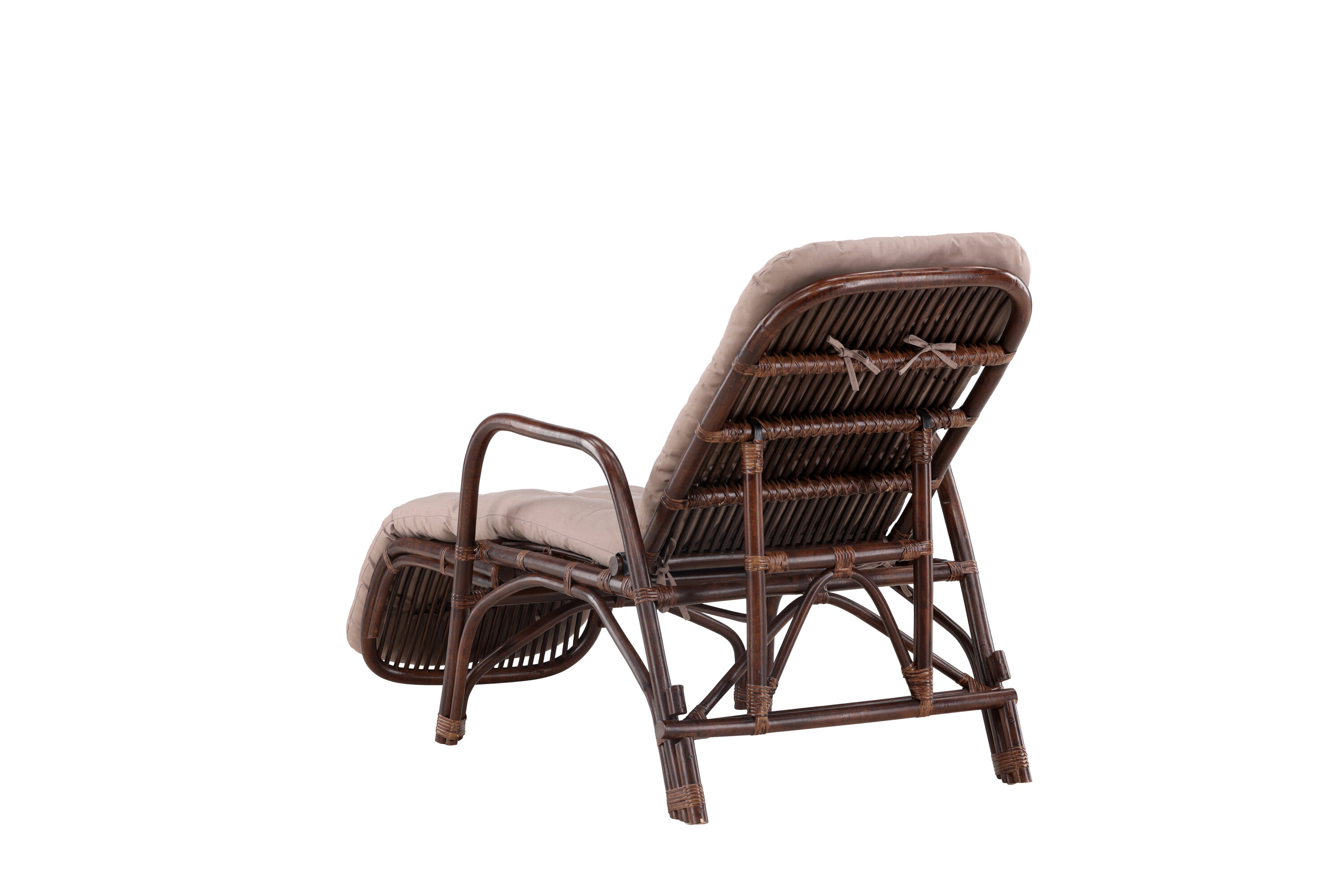 Entdecken Sie eine Oase der Entspannung mit der Sonnenliege Nella im schönen Rattan. Die tiefe dunkle Nussbaumfarbe verleiht Ihrer Außenumgebung eine exklusive Note, während die weichen beigen Kissen ein gemütliches Gefühl schaffen, das zur totalen Entspannung einlädt.