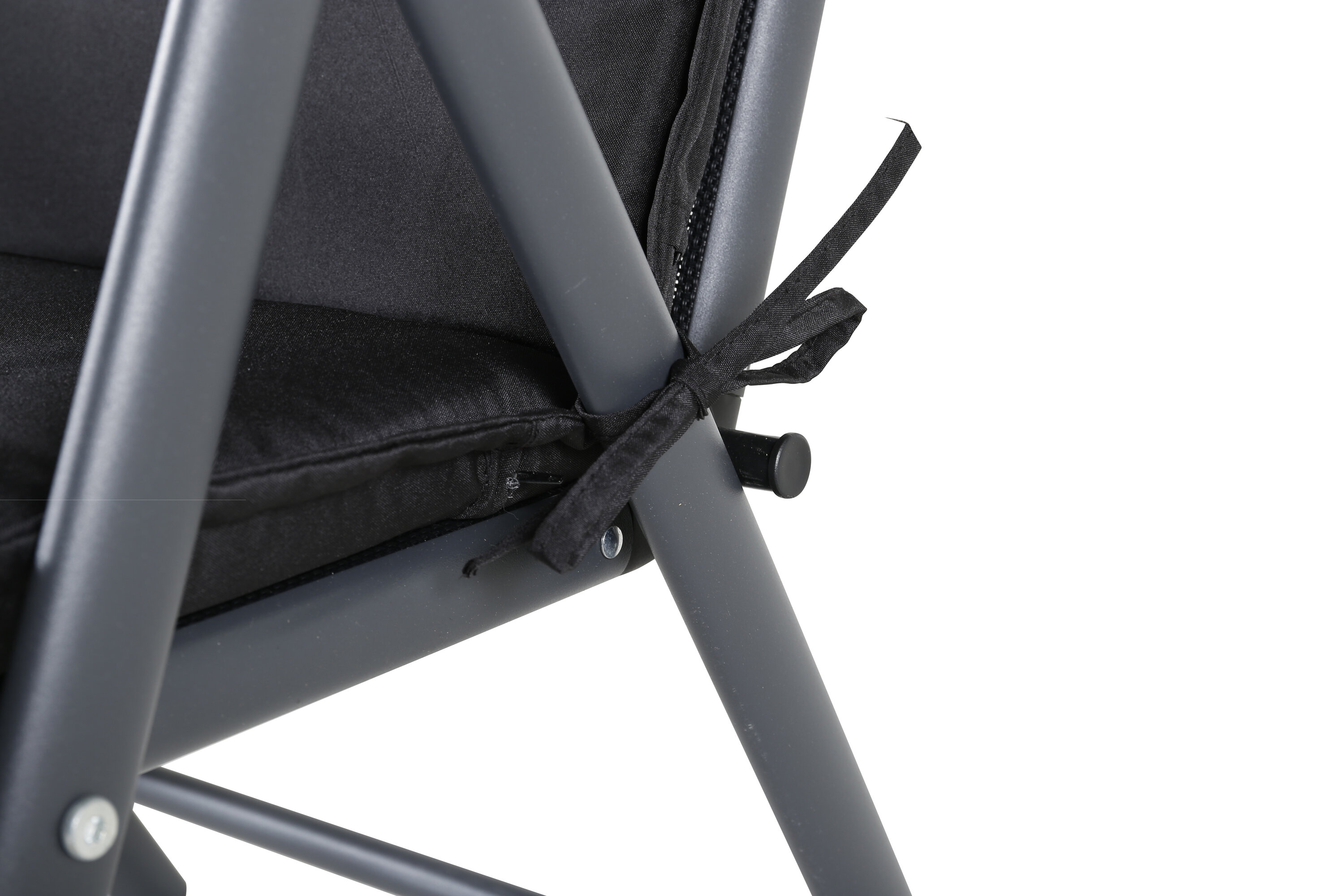 Klassisches und stilvolles graues Positionspad mit Kissen und Riemen. Die Gurte helfen, das Kissen an Ort und Stelle zu halten. Genießen Sie Ihre schönen Sommertage!
