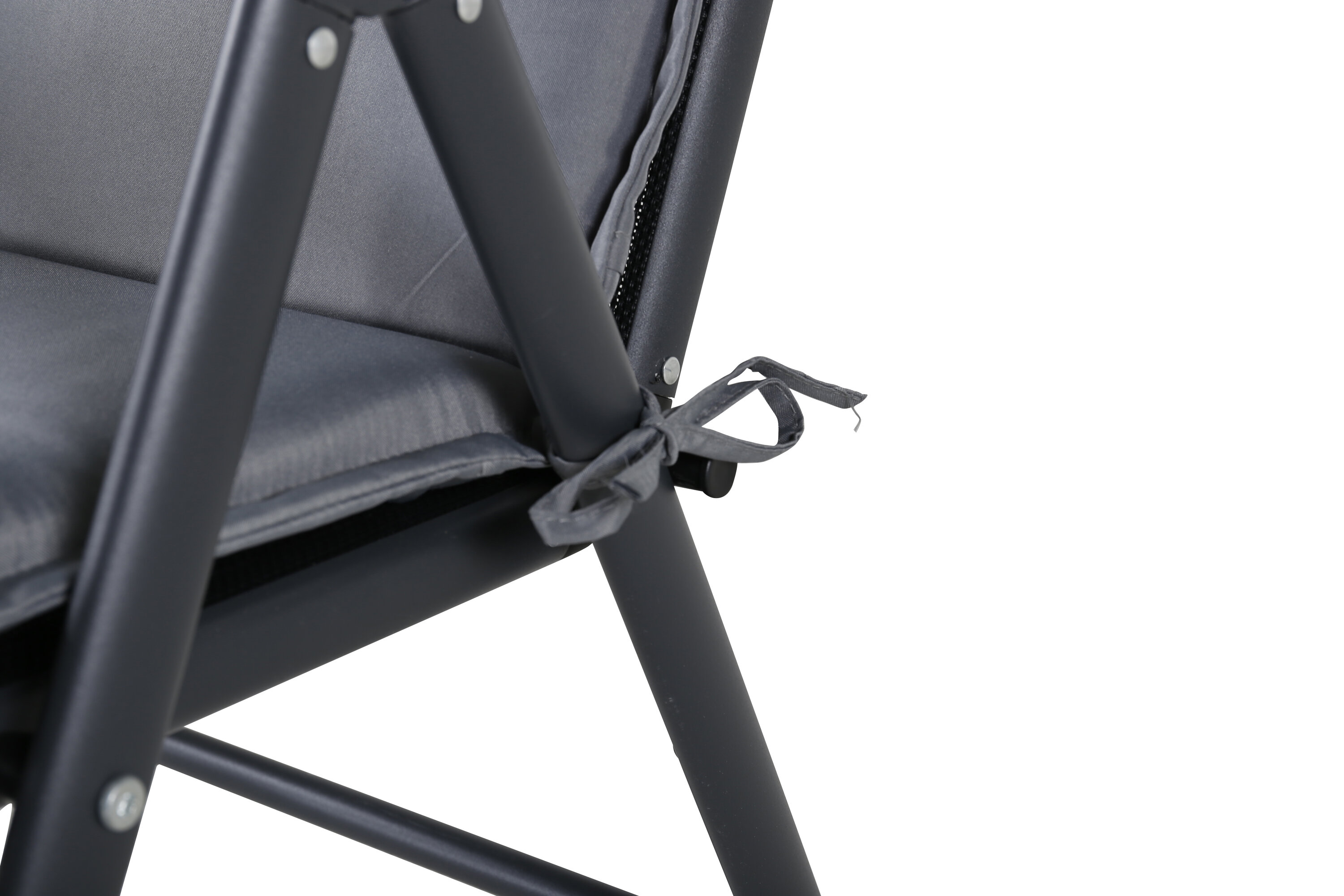 Klassisches und stilvolles graues Positionspad, mit Trägern ausgestattet. Die Gurte helfen, das Kissen an Ort und Stelle zu halten. Genießen Sie Ihre schönen Sommertage!