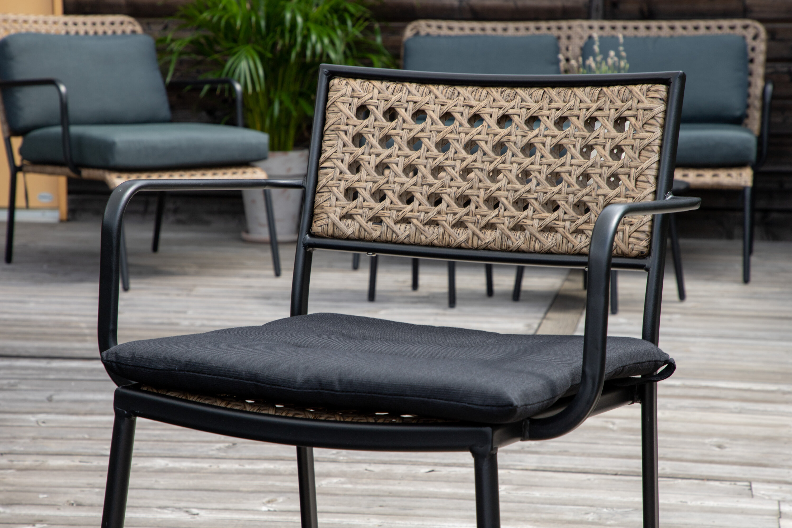 Paola Esszimmerstuhl ist eine perfekte Mischung aus dekorativem Holz und stilvoller schwarzer Farbe. Die feinen Kontraste zwischen den Farben sorgen für ein harmonisches Gefühl im Außenbereich! Hier erhalten Sie einen Stuhl, mit dem Sie ganz einfach charmante Außenumgebungen schaffen können. Der Stuhl ist stapelbar.