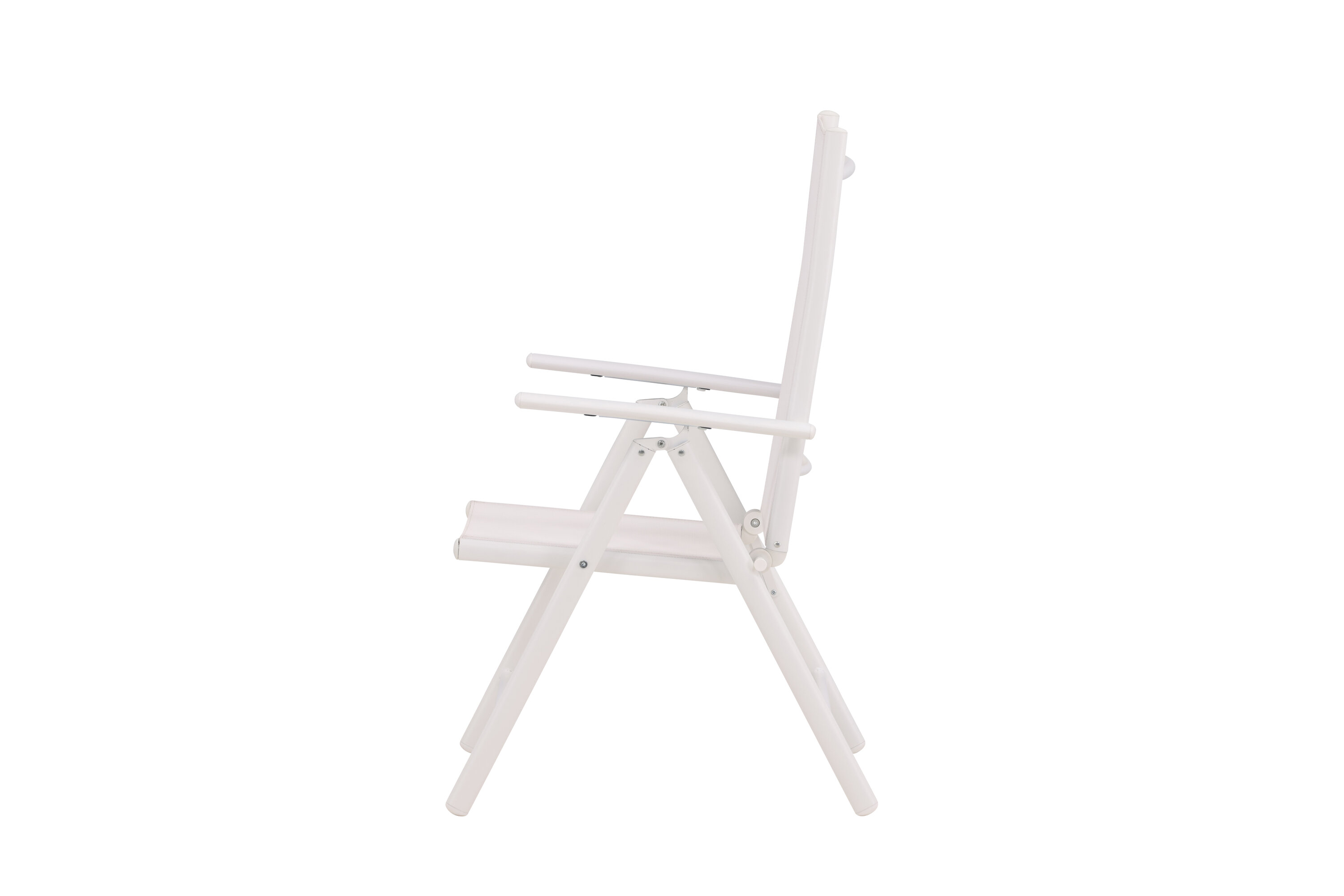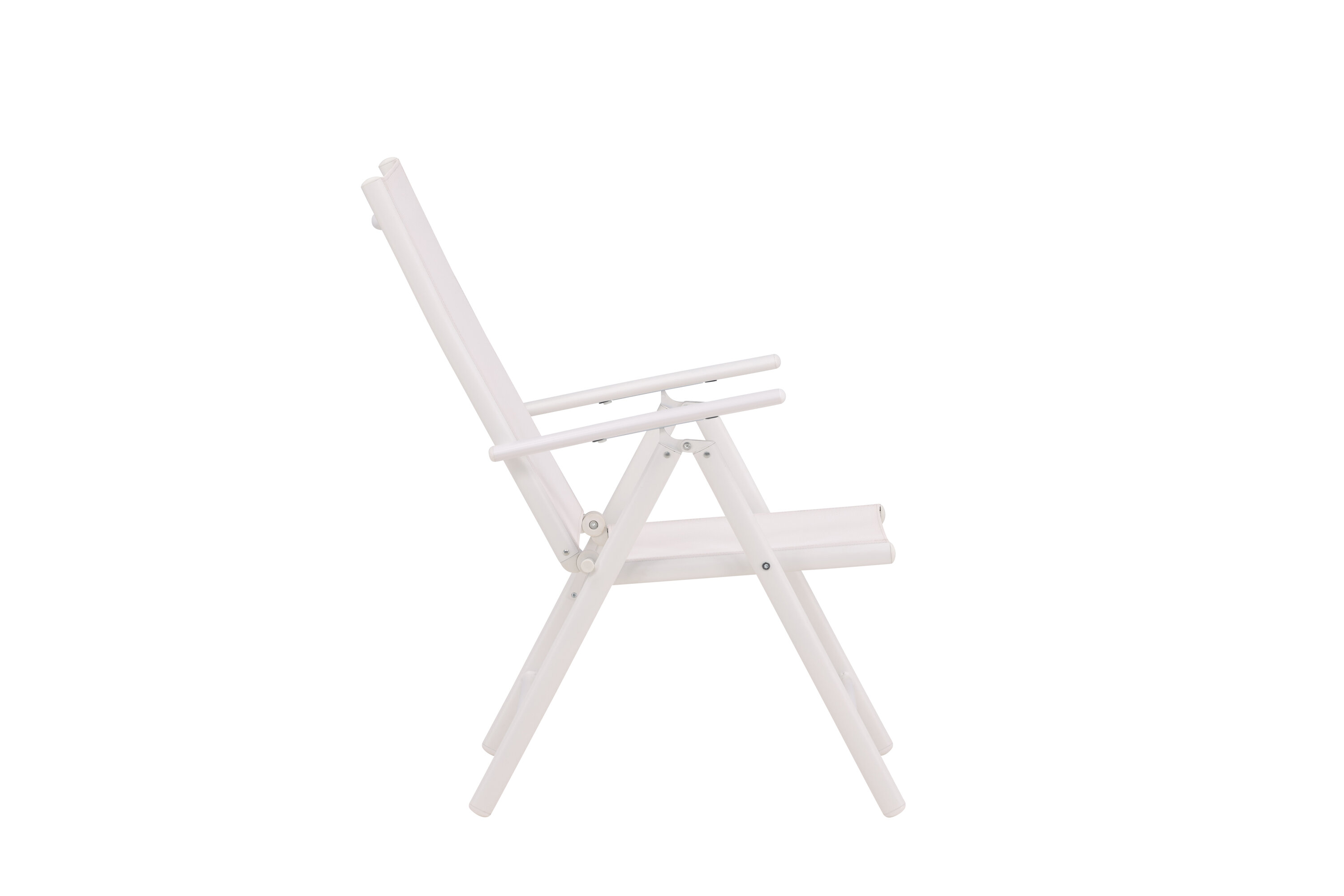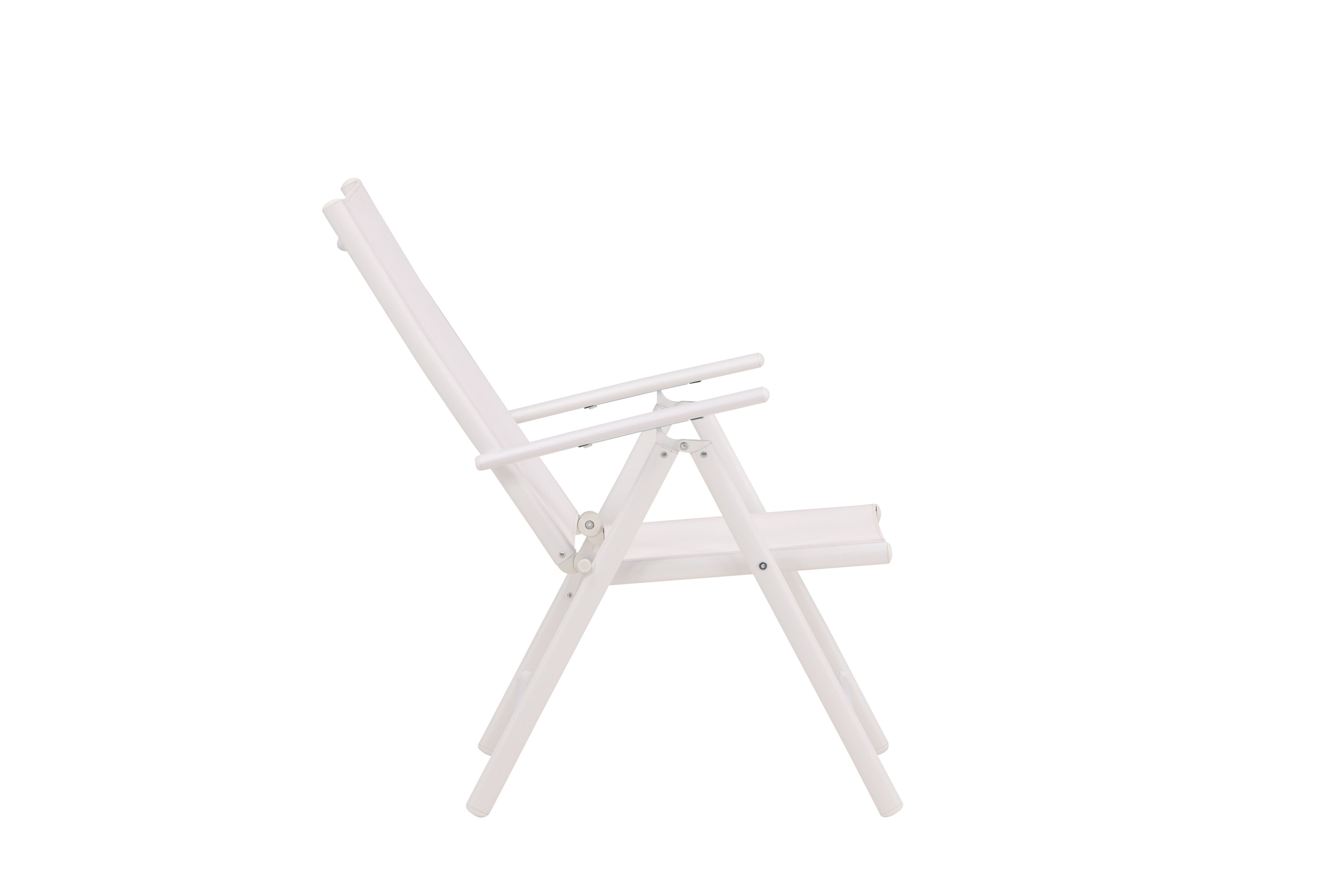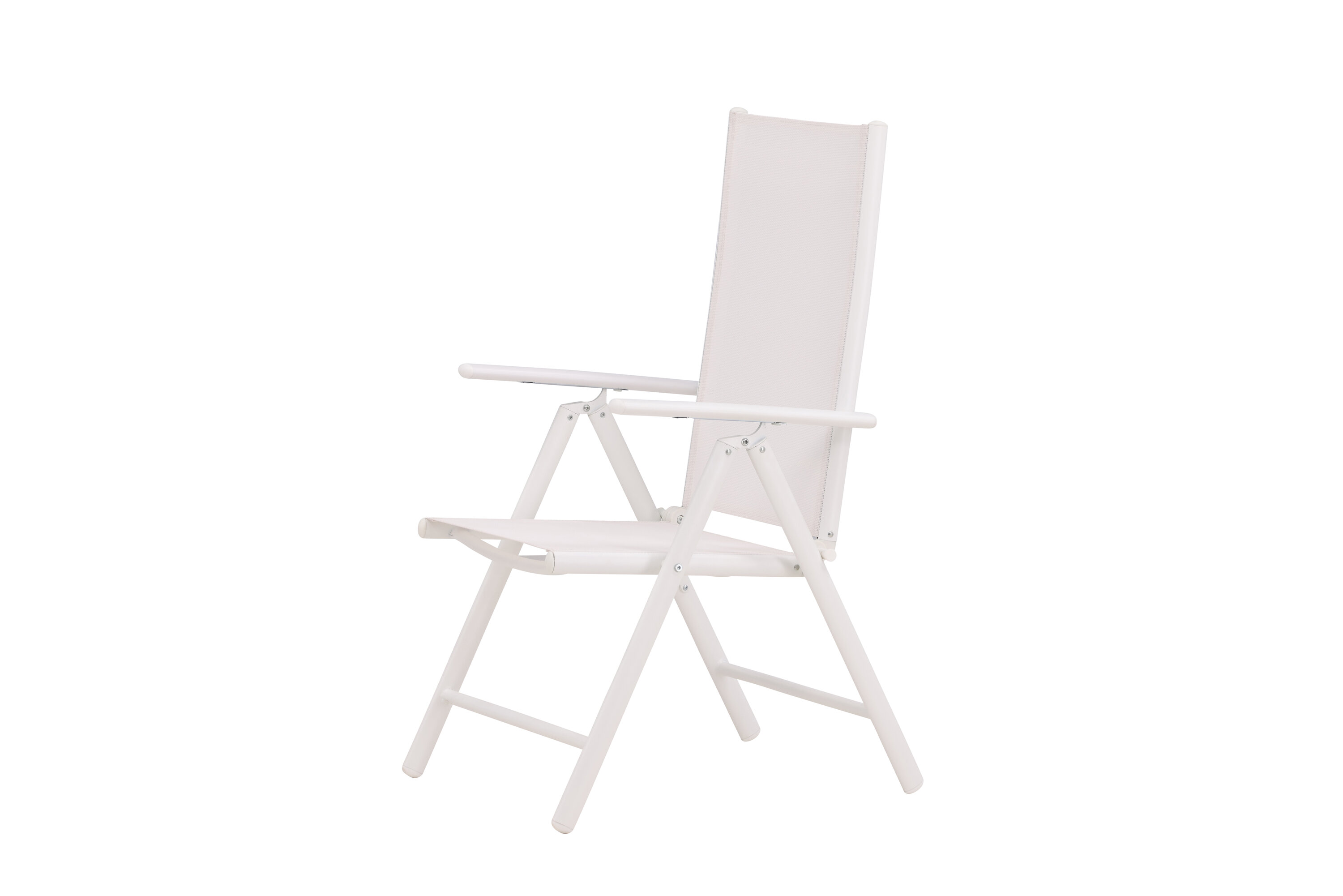 Sitzen Sie diesen Sommer entspannt und genießen Sie angenehme Mahlzeiten im Freien! Break ist ein flexibler Klappstuhl in einer zeitlosen weißen Farbe, der auf den meisten Terrassen zu Hause ist. Der 5-Positionen-Modus und die Armlehnen des Stuhls machen ihn sehr bequem und nützlich, sowohl als Ess- als auch als Entspannungsstuhl. Der Stuhl hat einen weißen Textilene-Sitz und eine leichte Aluminiumrahmenkonstruktion. Möblieren Sie um einen passenden Esstisch und laden Sie zu vielen gesellschaftlichen Momenten ein!