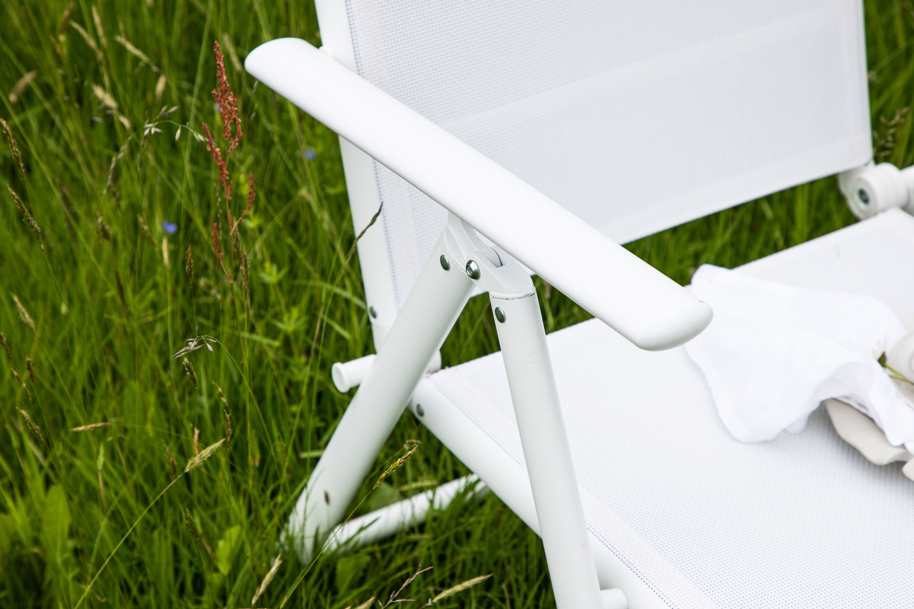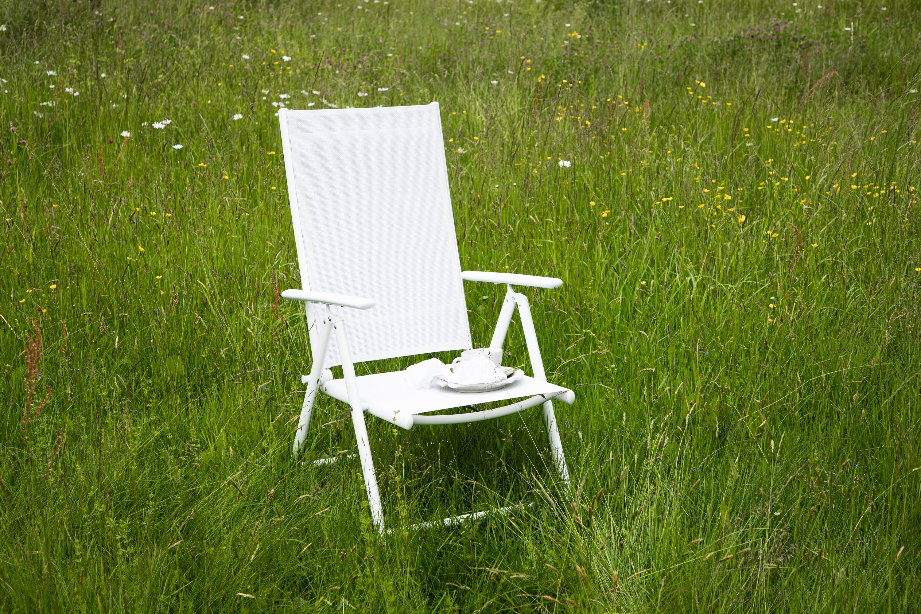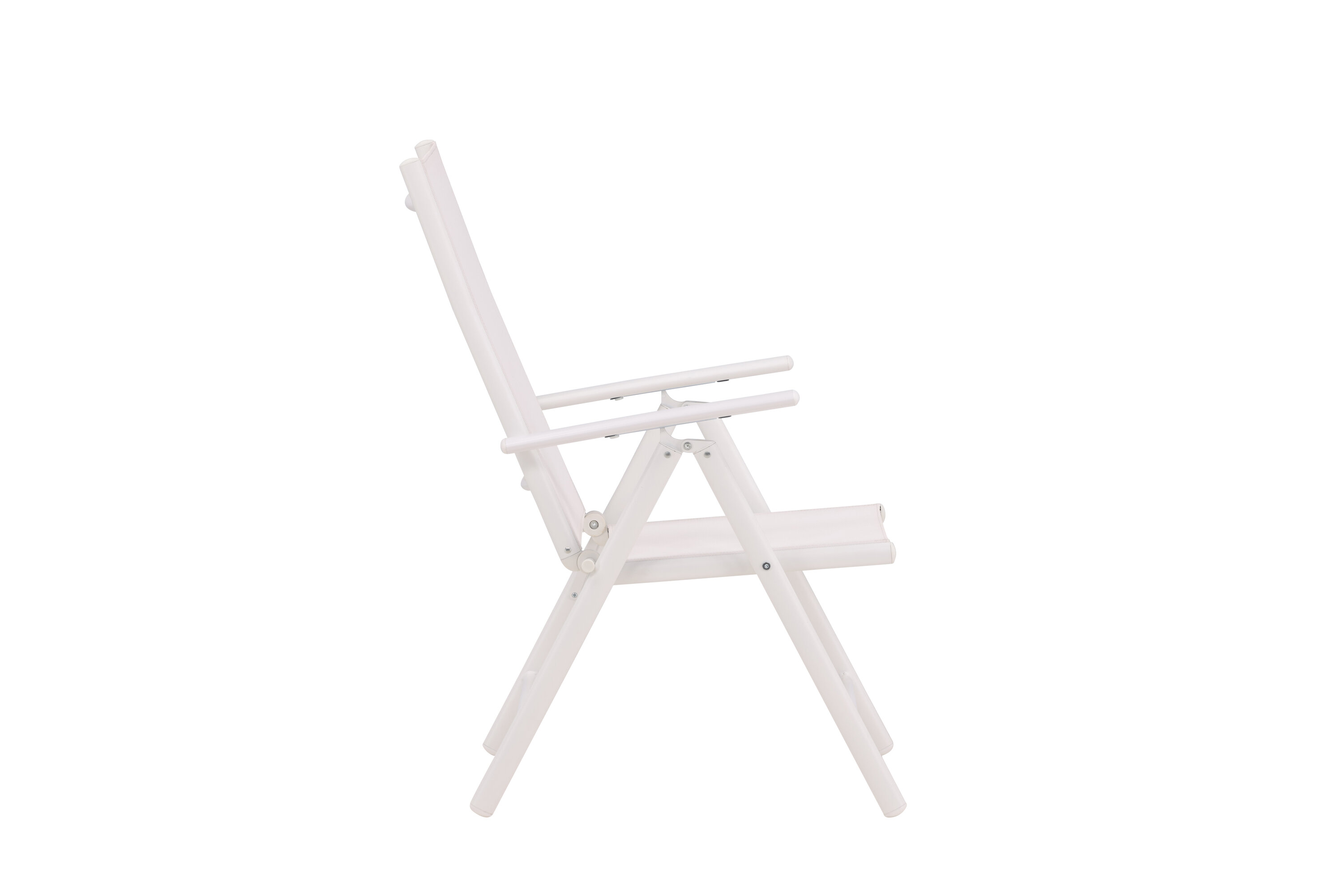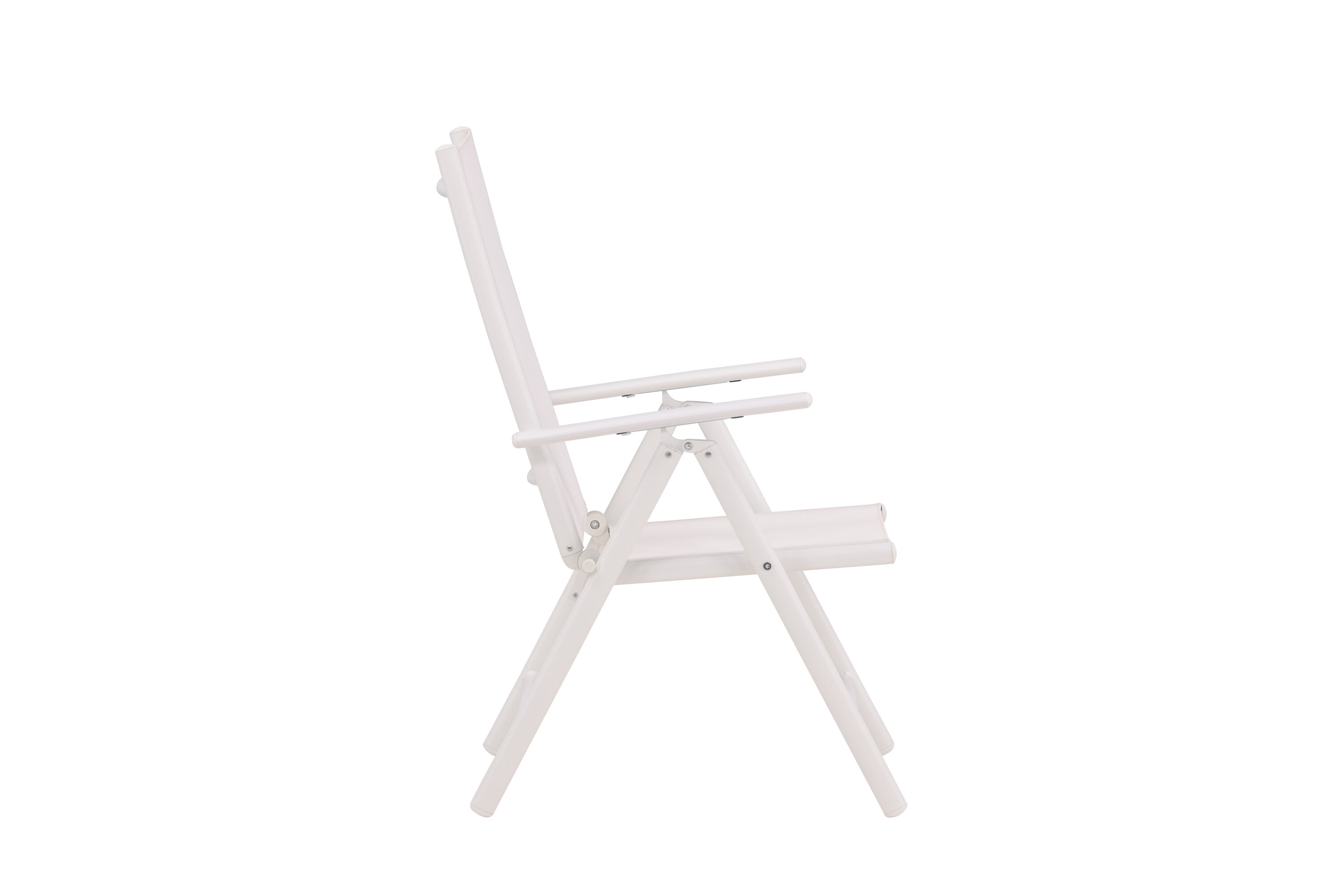Sitzen Sie diesen Sommer entspannt und genießen Sie angenehme Mahlzeiten im Freien! Break ist ein flexibler Klappstuhl in einer zeitlosen weißen Farbe, der auf den meisten Terrassen zu Hause ist. Der 5-Positionen-Modus und die Armlehnen des Stuhls machen ihn sehr bequem und nützlich, sowohl als Ess- als auch als Entspannungsstuhl. Der Stuhl hat einen weißen Textilene-Sitz und eine leichte Aluminiumrahmenkonstruktion. Möblieren Sie um einen passenden Esstisch und laden Sie zu vielen gesellschaftlichen Momenten ein!