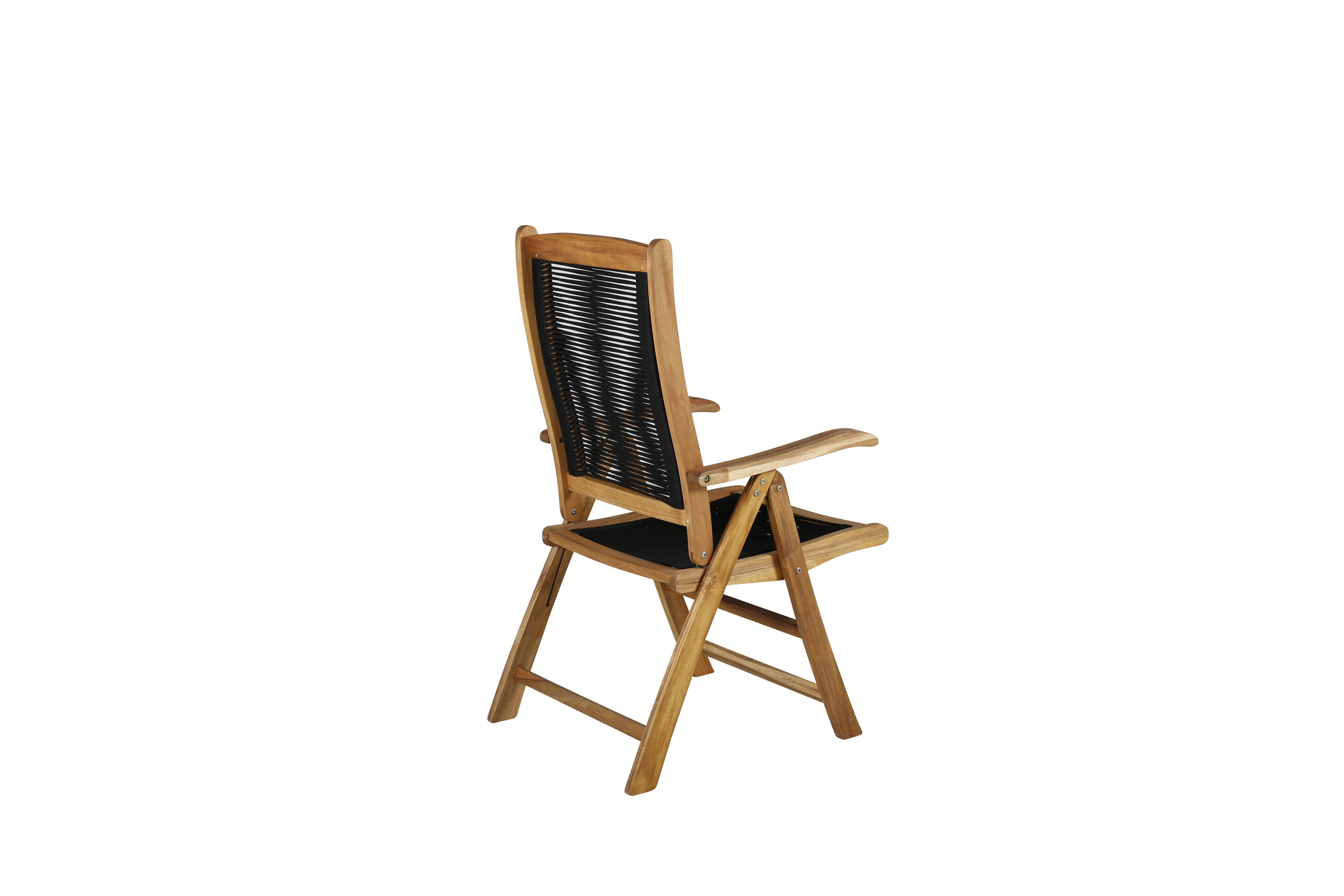 Die Kombination von Schwarz und Holz fühlt sich genau richtig an! Der Stuhl ist dank seiner modischen Konstruktion in Akazienholz und dem Sitz in strapazierfähigem schwarzem Seil garantiert ein Hingucker auf dem Balkon. Ein klappbarer Esszimmerstuhl, der der Terrasse garantiert einen pompösen Ausdruck verleiht.