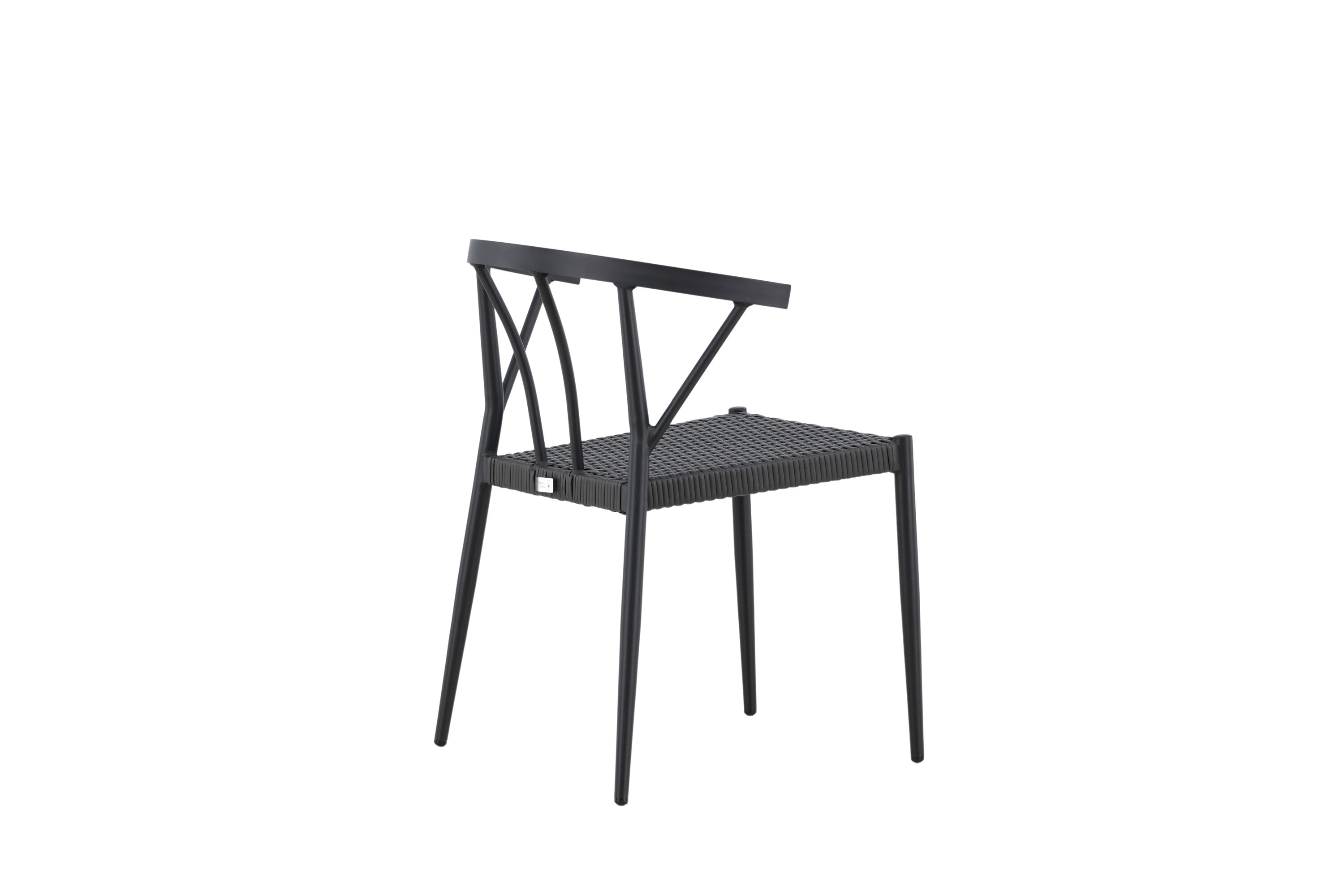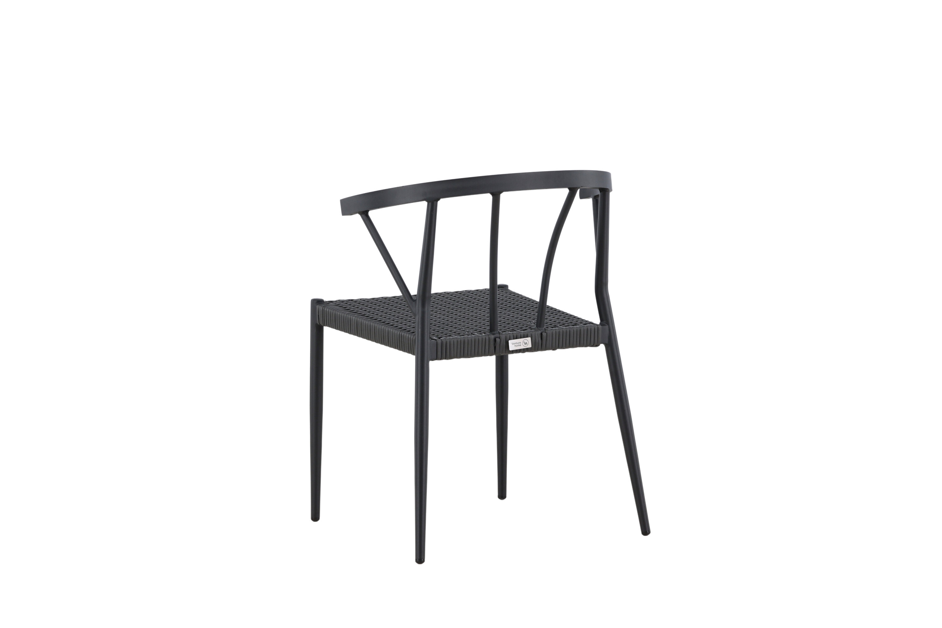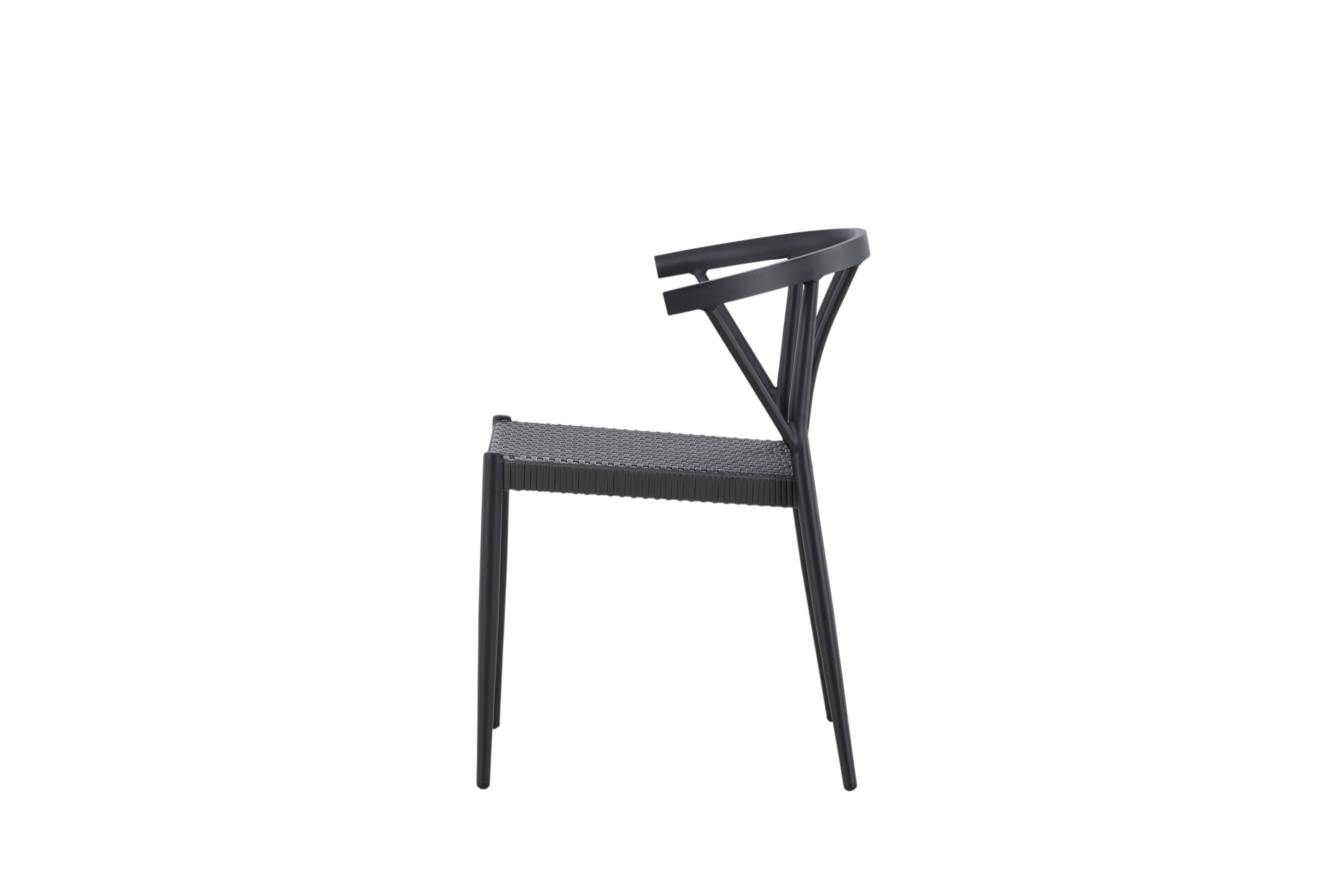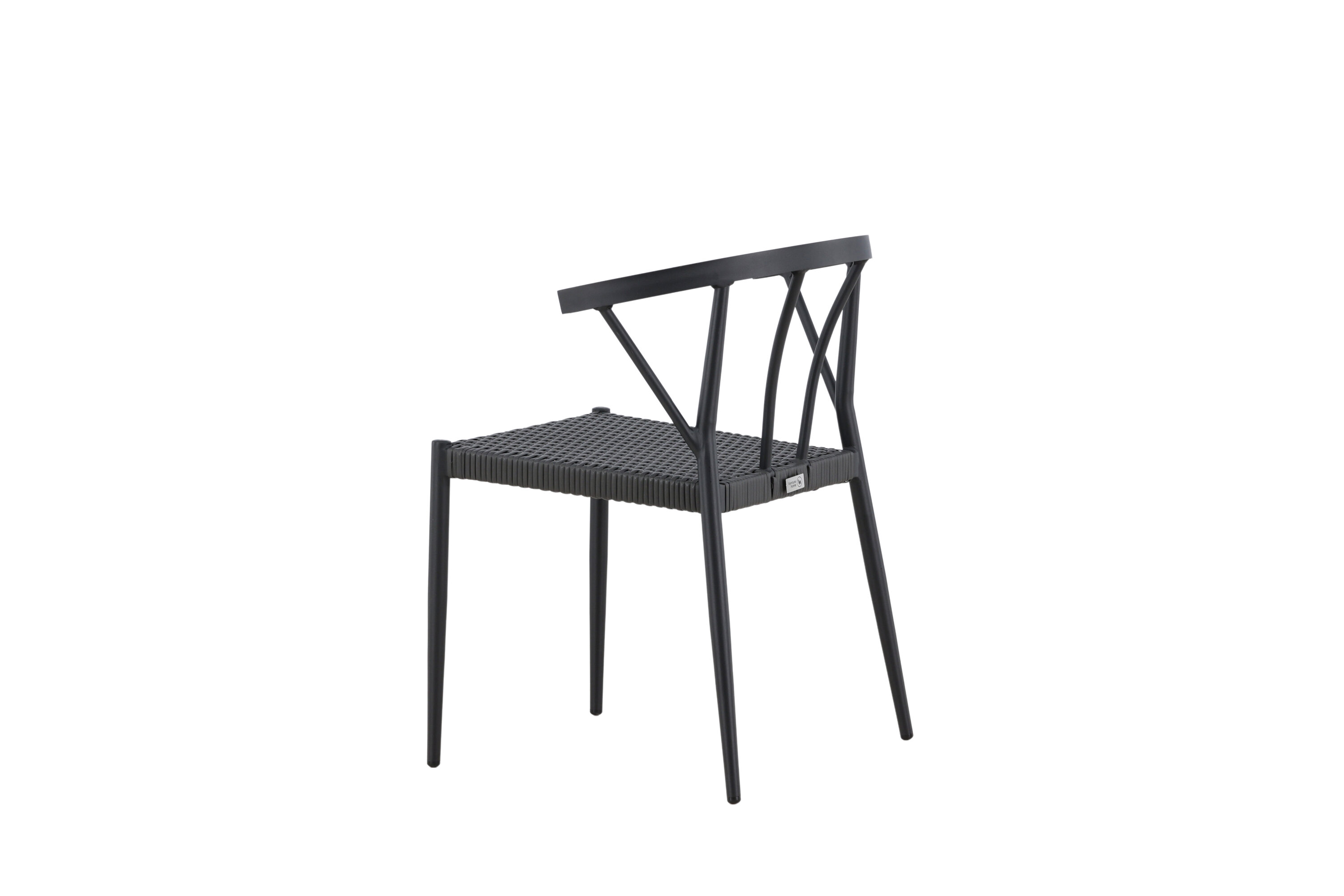 Ein klassischer Esszimmerstuhl aus Aluminium mit einem Kissen aus künstlichem Rattan. Verleiht Ihrer Terrasse oder Terrasse ein modernes Gefühl und ist leicht zu bewegen. Kombinieren Sie den Stuhl mit Ihrem Lieblingstisch und Sie erhalten einen perfekten Ort für Abendessen mit Freunden und Familie! Der Stuhl ist stapelbar.