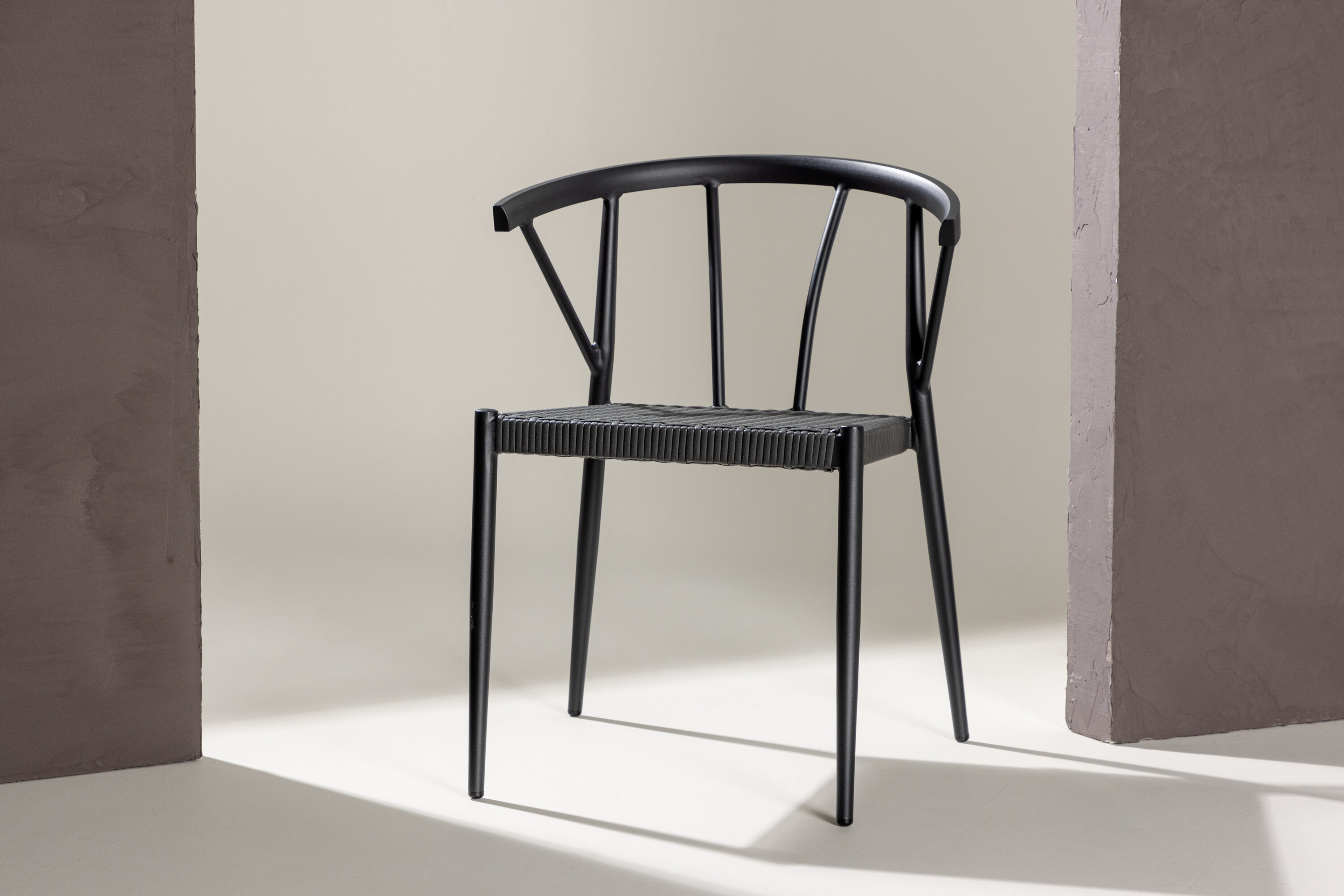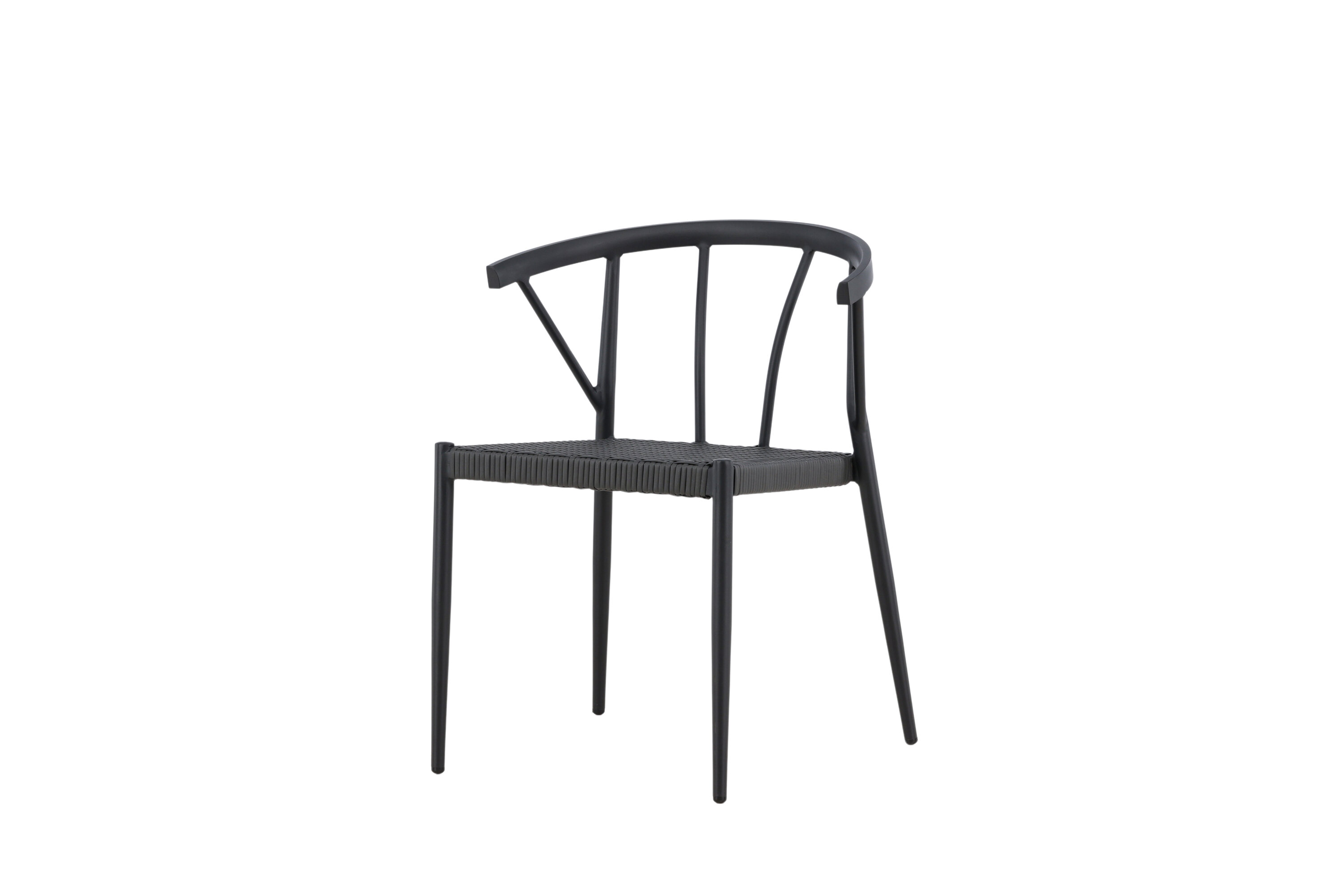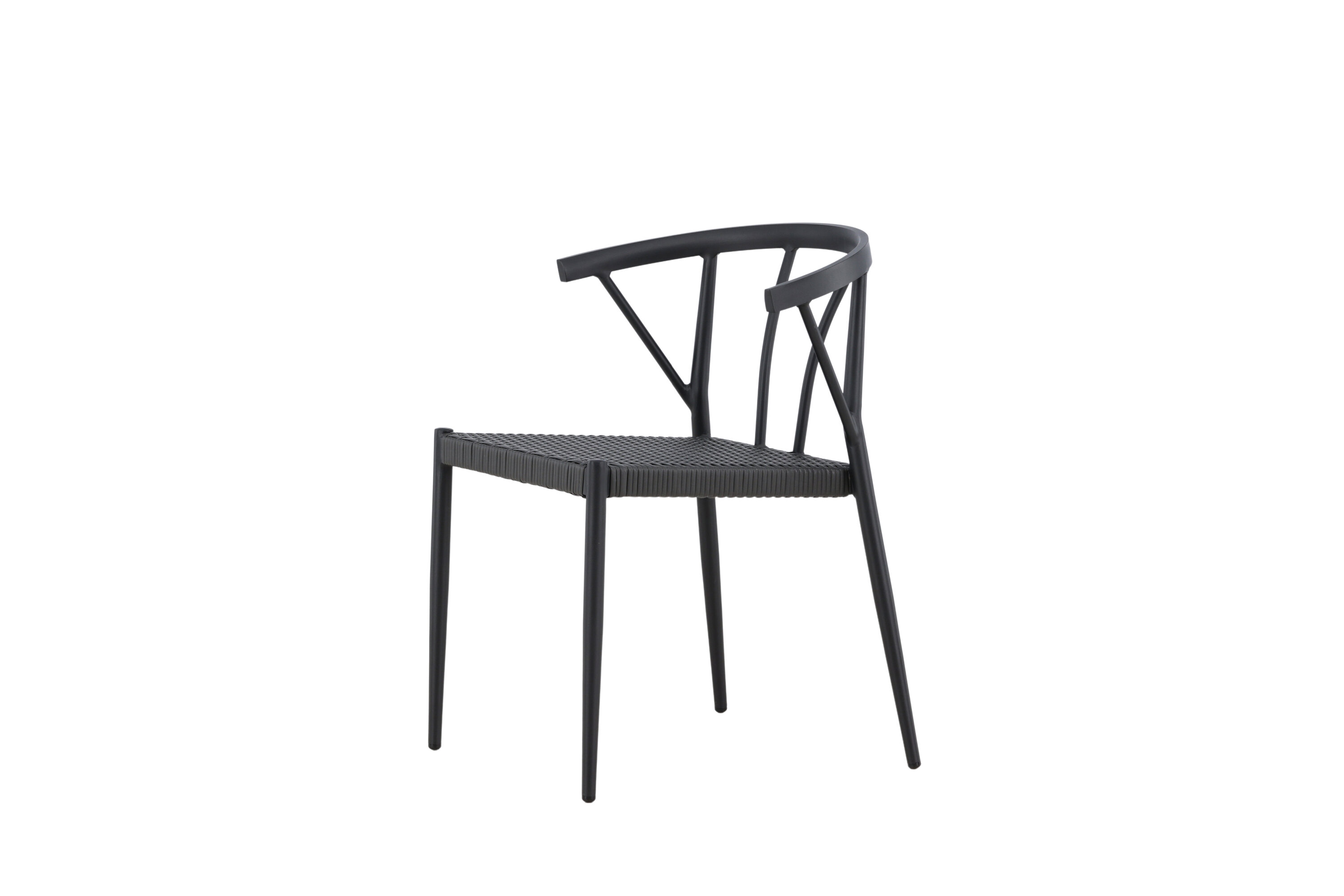 Ein klassischer Esszimmerstuhl aus Aluminium mit einem Kissen aus künstlichem Rattan. Verleiht Ihrer Terrasse oder Terrasse ein modernes Gefühl und ist leicht zu bewegen. Kombinieren Sie den Stuhl mit Ihrem Lieblingstisch und Sie erhalten einen perfekten Ort für Abendessen mit Freunden und Familie! Der Stuhl ist stapelbar.
