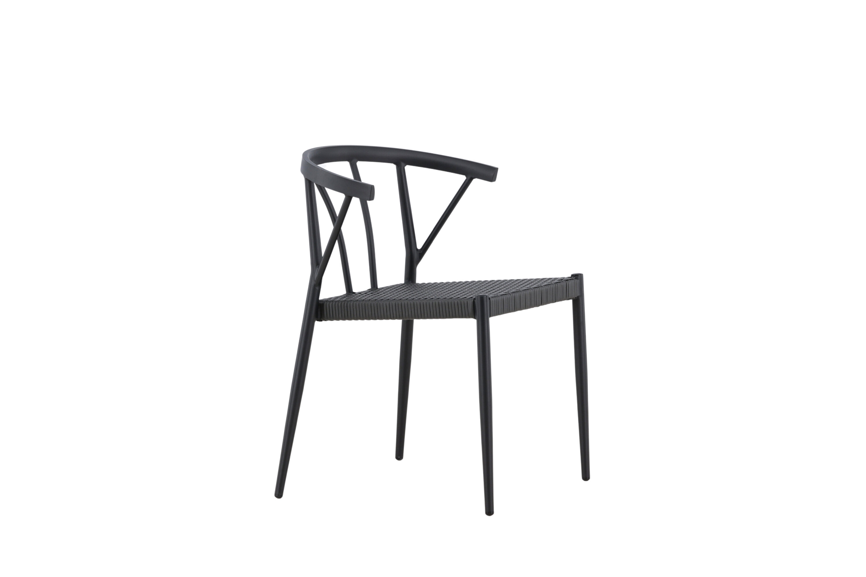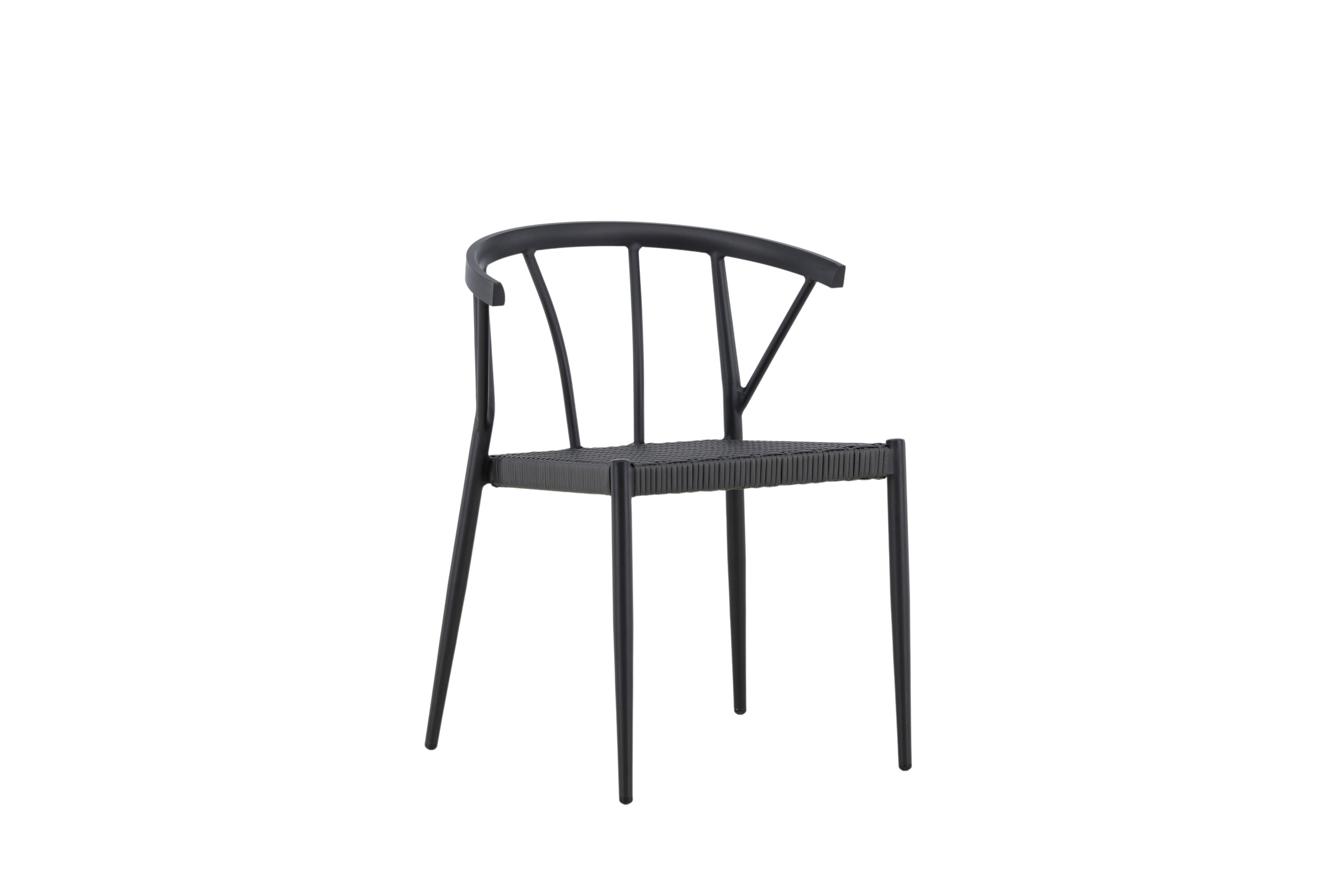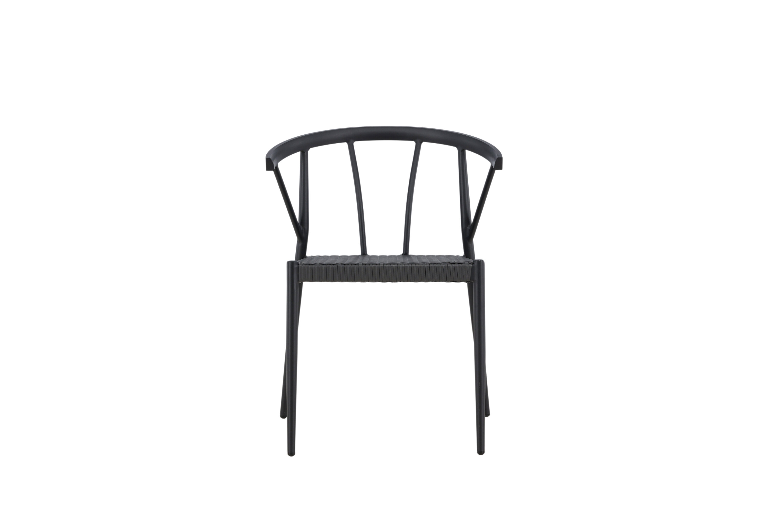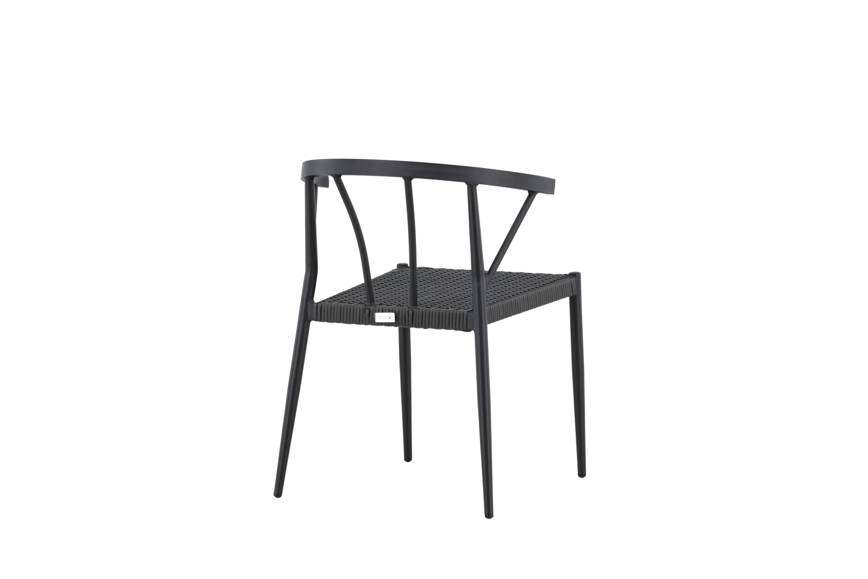 Ein klassischer Esszimmerstuhl aus Aluminium mit einem Kissen aus künstlichem Rattan. Verleiht Ihrer Terrasse oder Terrasse ein modernes Gefühl und ist leicht zu bewegen. Kombinieren Sie den Stuhl mit Ihrem Lieblingstisch und Sie erhalten einen perfekten Ort für Abendessen mit Freunden und Familie! Der Stuhl ist stapelbar.