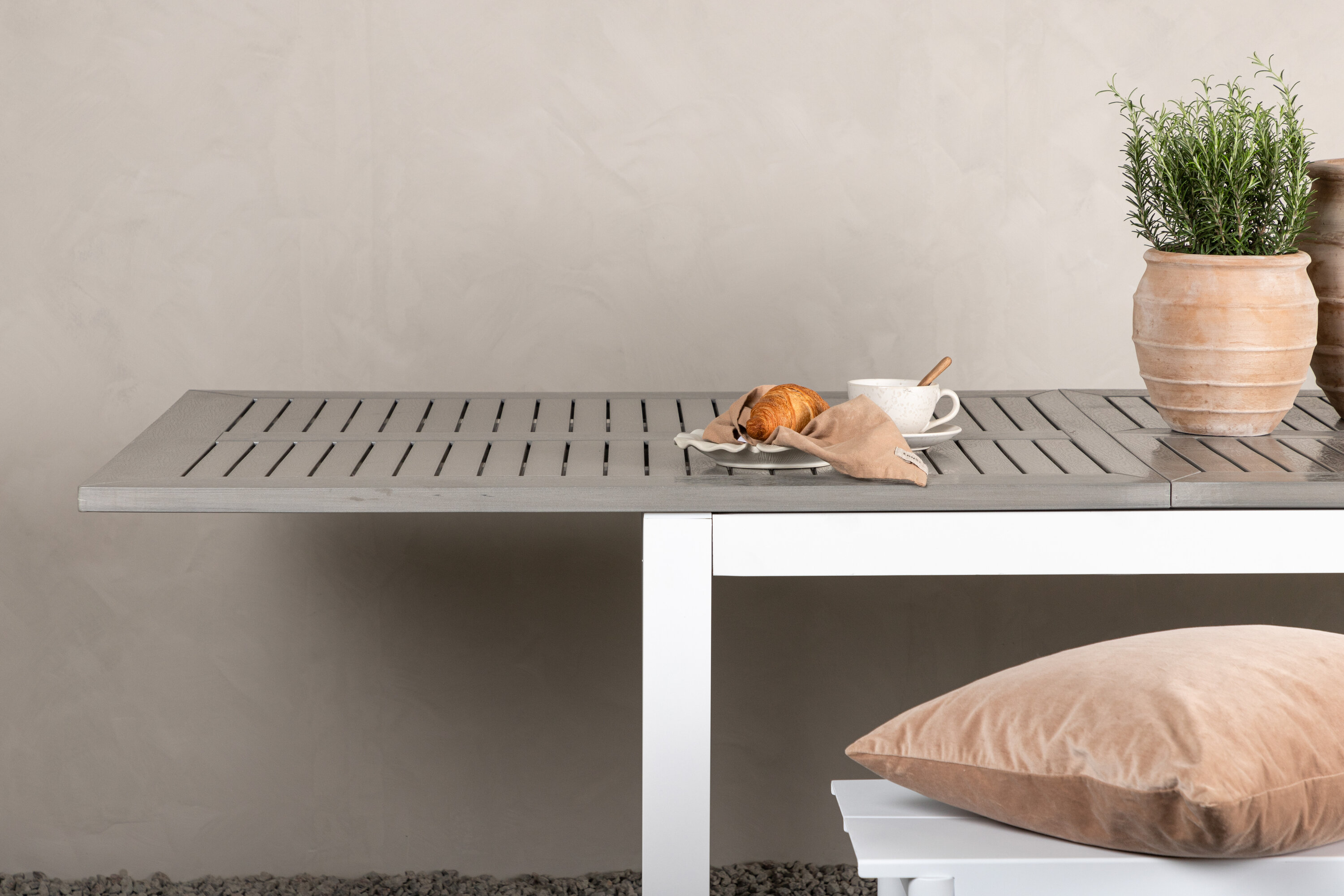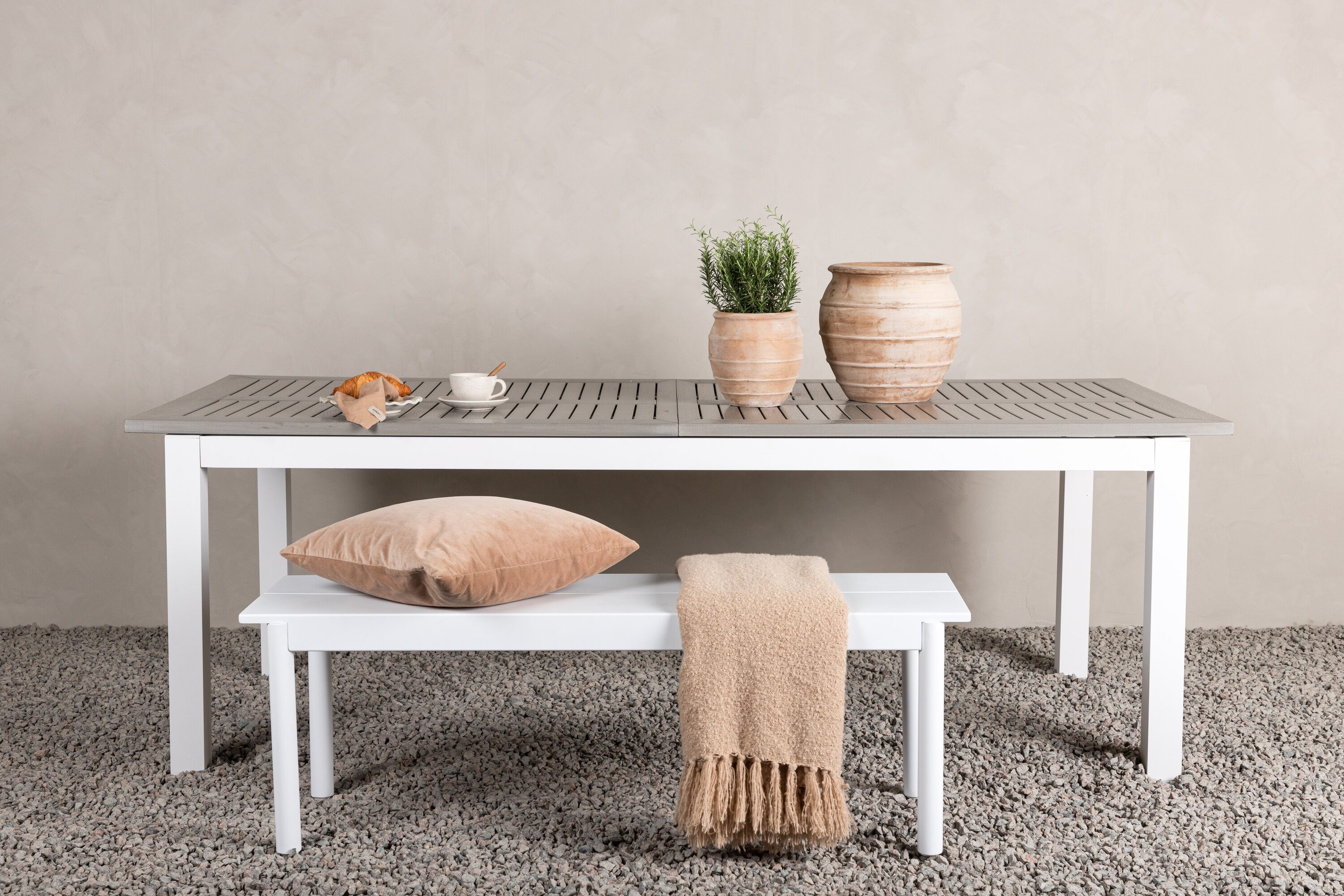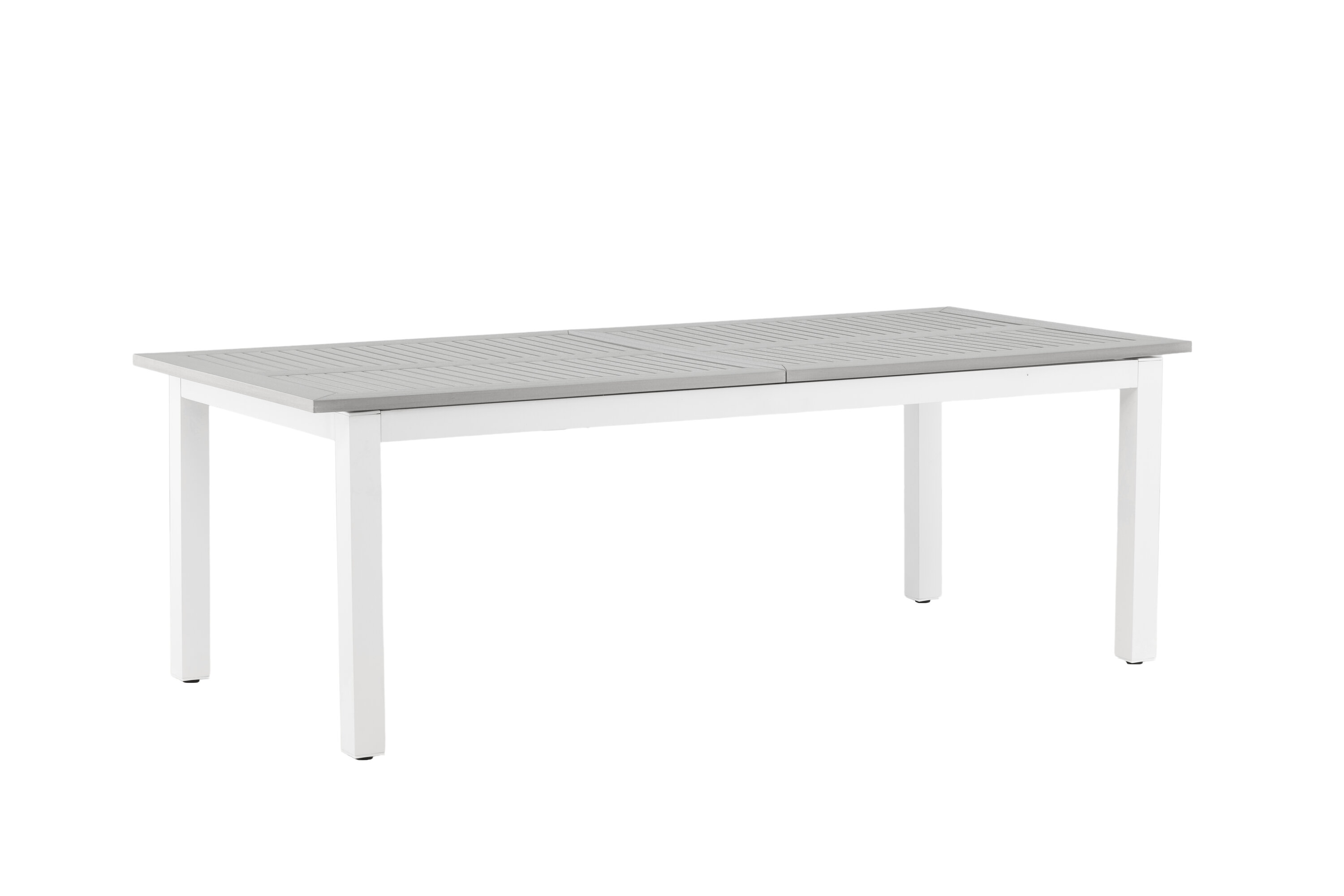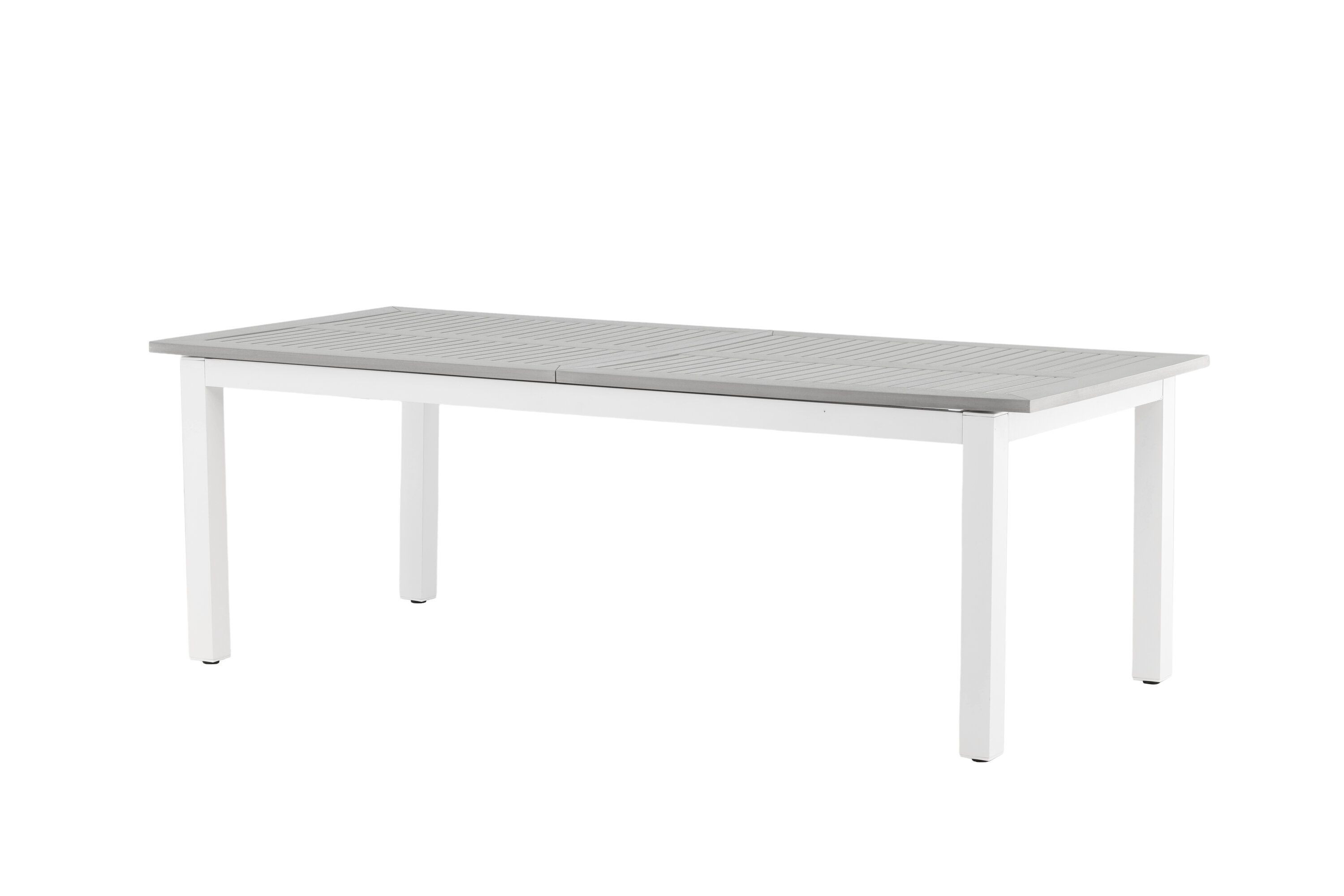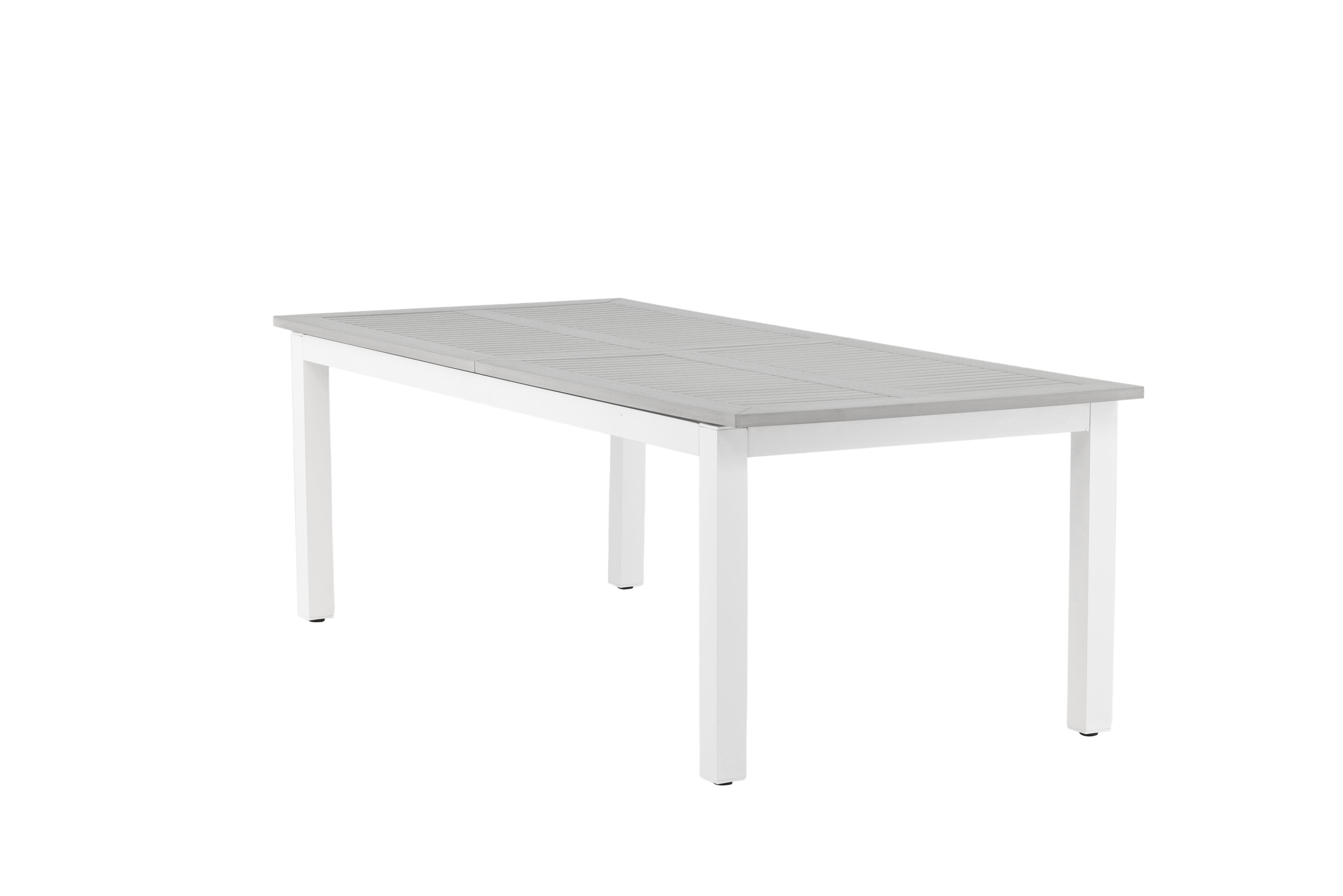 Albany ist ein ausziehbarer Esstisch mit allen Rechten - stilvoll, praktisch und zeitlos! Die Tischplatte ist aus grauem Aintwood und der Korpus aus weißem Aluminium; Zwei langlebige Materialien, die Ihnen einen Tisch geben, der im Laufe der Zeit steht. Die gerade nordische Form macht einen robusten und sauberen Eindruck. Möblieren Sie die Terrasse und schaffen Sie ein charmantes Zentrum, um Ihre Lieben zu versammeln!