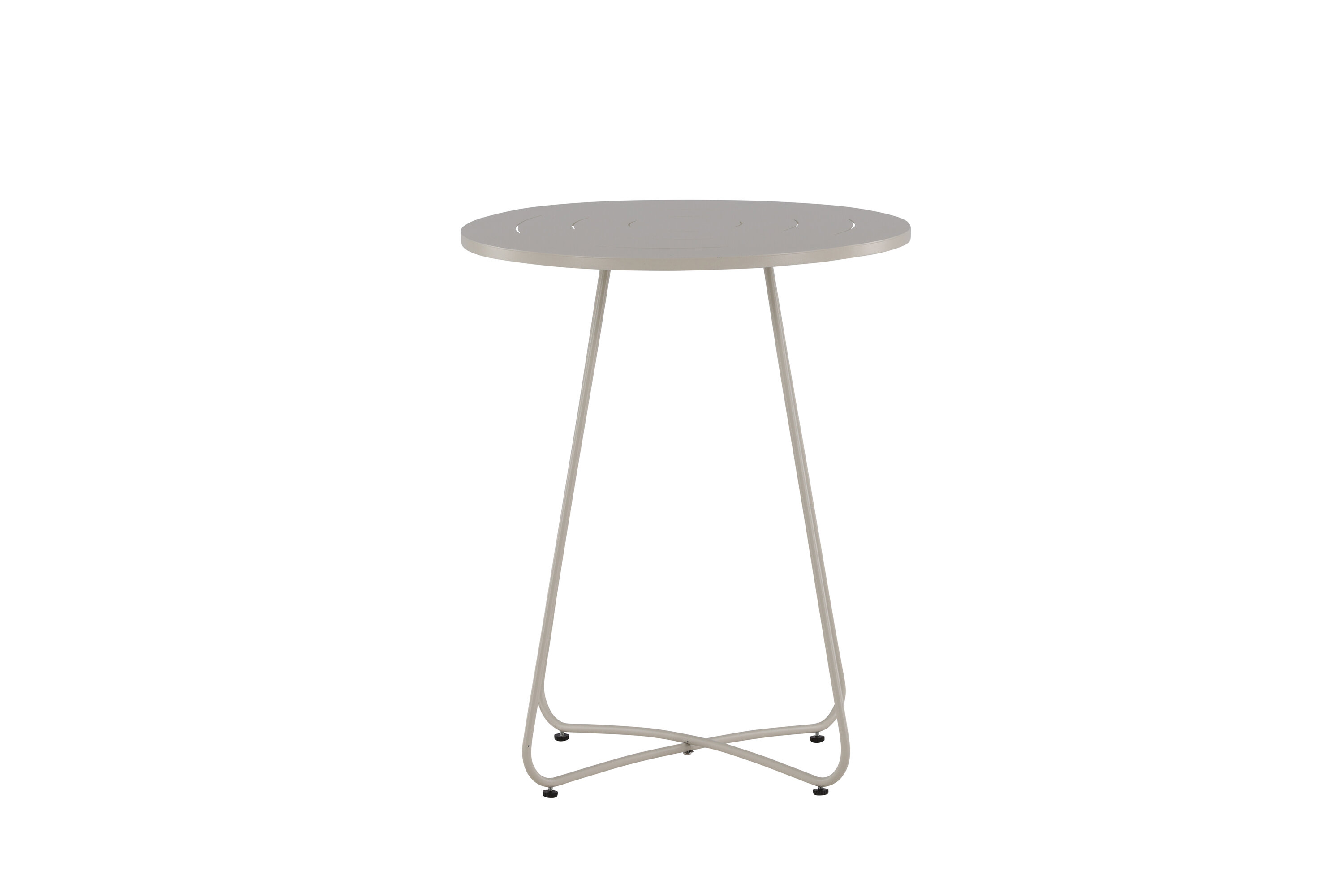 Bacong - ein stilvoller Café-Tisch in zeitlosem Beige und hübschem Design. Hergestellt aus beigefarbenem Stahl, der den Tisch so praktisch wie langlebig macht. Durch das geringe Gewicht ist der Tisch leicht zu bewegen und passt genauso gut in den Garten wie auf den kleinen Balkon. Die runde Kopfplatte und die schmalen Beine vermitteln einen minimalistischen Eindruck und eignen sich perfekt für den Nachmittagskaffee. Genießen Sie die wunderbaren Momente des Sommers!