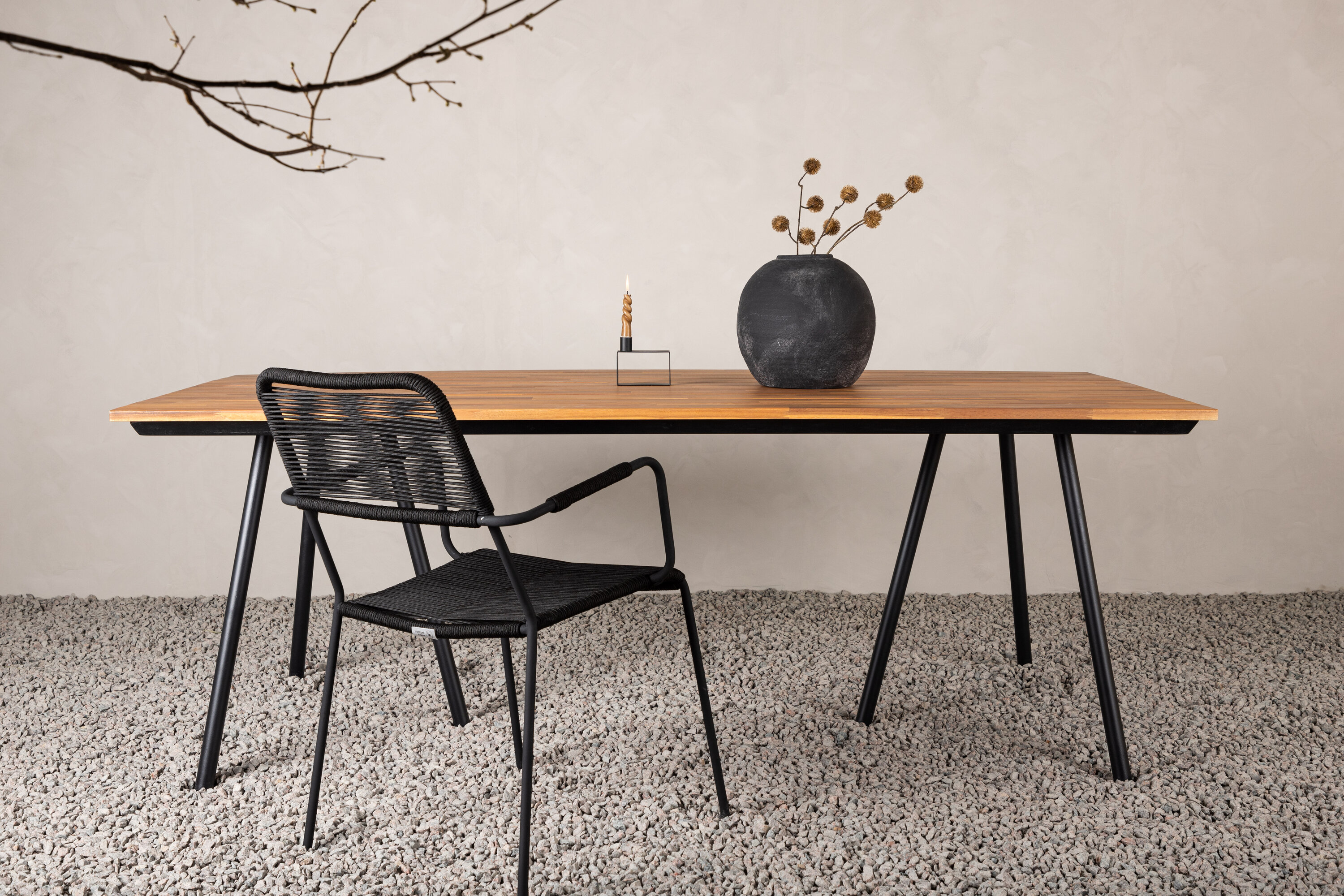Stilvoll, smart und langlebig - was will man mehr? Chan ist ein natürlicher Esstisch aus brauner Akazie mit schwarzem Stahluntergestell. Das skandinavische Design wird zum Blickfang mit leicht ausgestellten Beinen, die sich in ein schönes Detail verwandeln. Der Tisch eignet sich sowohl für Partys als auch für den Alltag. Zeigen Sie also die Mahlzeiten und genießen Sie gemeinsam Spätsommerabende!