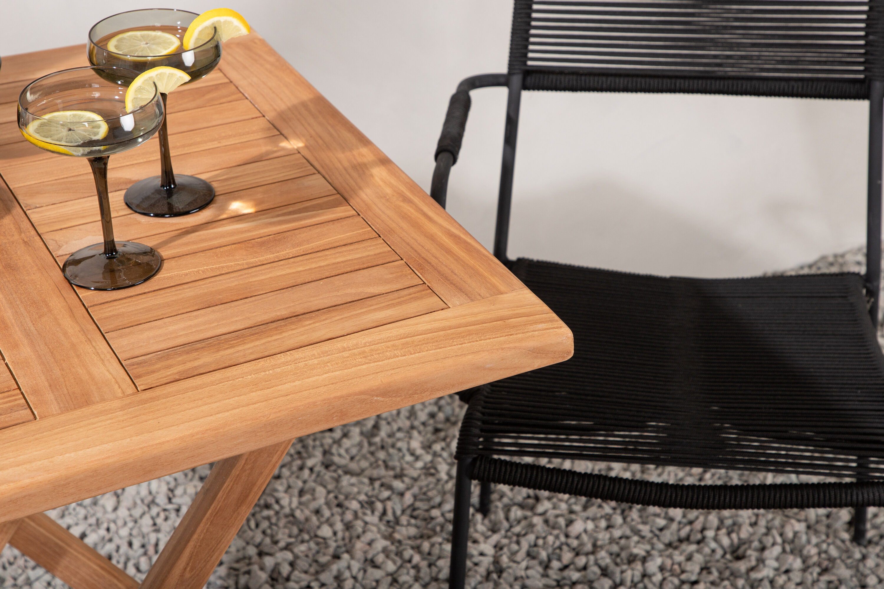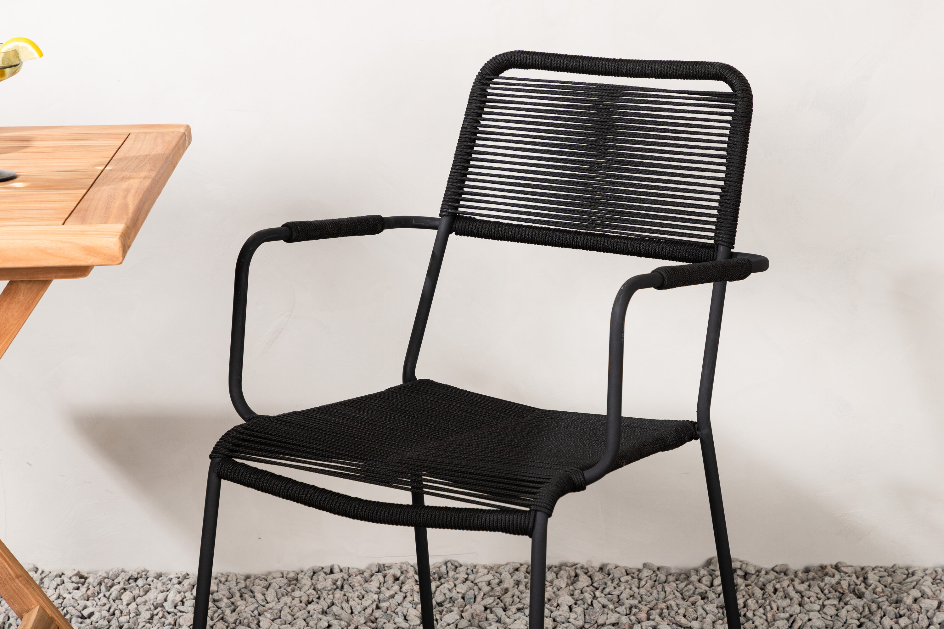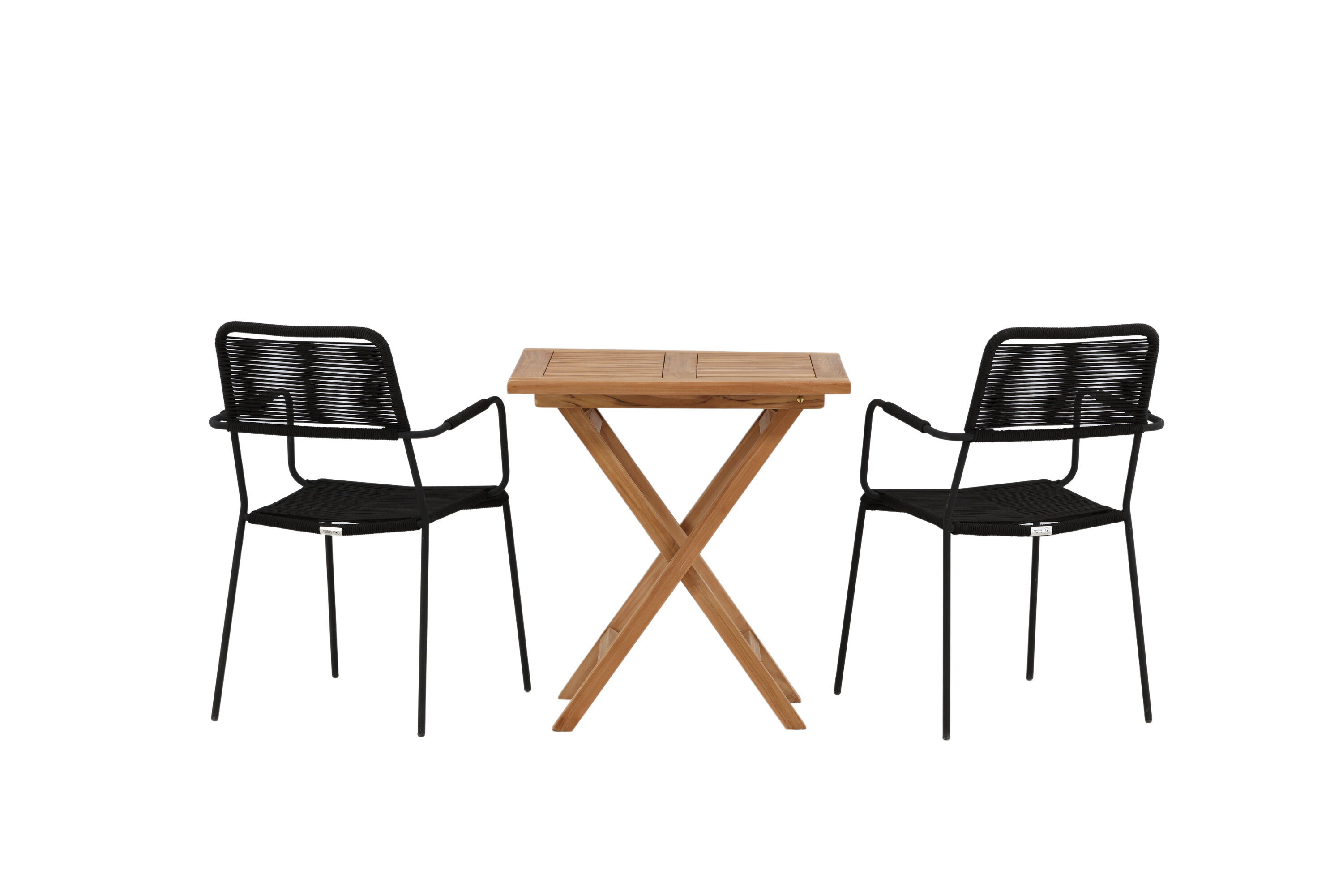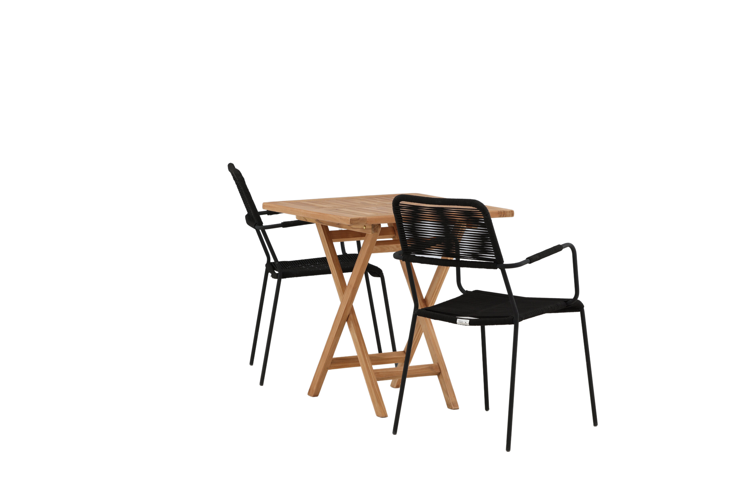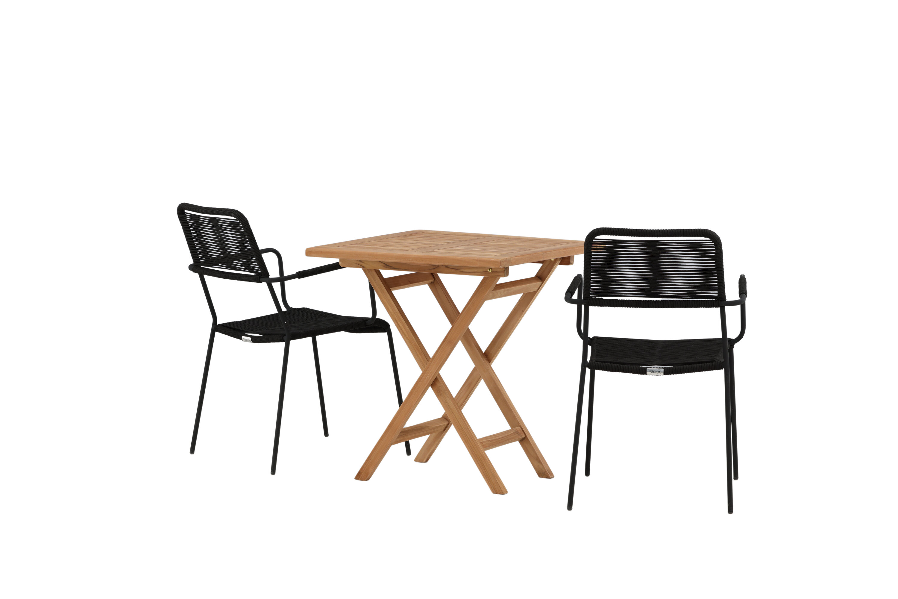 Möblieren Sie den Balkon oder die Terrasse charmant für alle Sommeranlässe! Der Kenya Café Tisch ist der perfekte Tisch aus wunderschönem Teakholz, der sich hervorragend für das Outdoor-Frühstück und den Nachmittagskaffee im Sommer eignet. Mit seinem klassischen Design und dem flexiblen Design lässt sich der Tisch leicht zusammenstellen und leicht bewegen. Maße: 70x70 cm. Hier zusammen mit Stühlen aus der Lindos Serie in modebewusstem Design. Die Stühle haben stilvolle schmale Beine und integrierte Armlehnen aus schwarzem Aluminium und einen Sitz aus strapazierfähigem, schwarzem Seil. Dies ist eine einladende Essensgruppe für zwei, die diesen Sommer garantiert angenehme Momente verlängern wird!