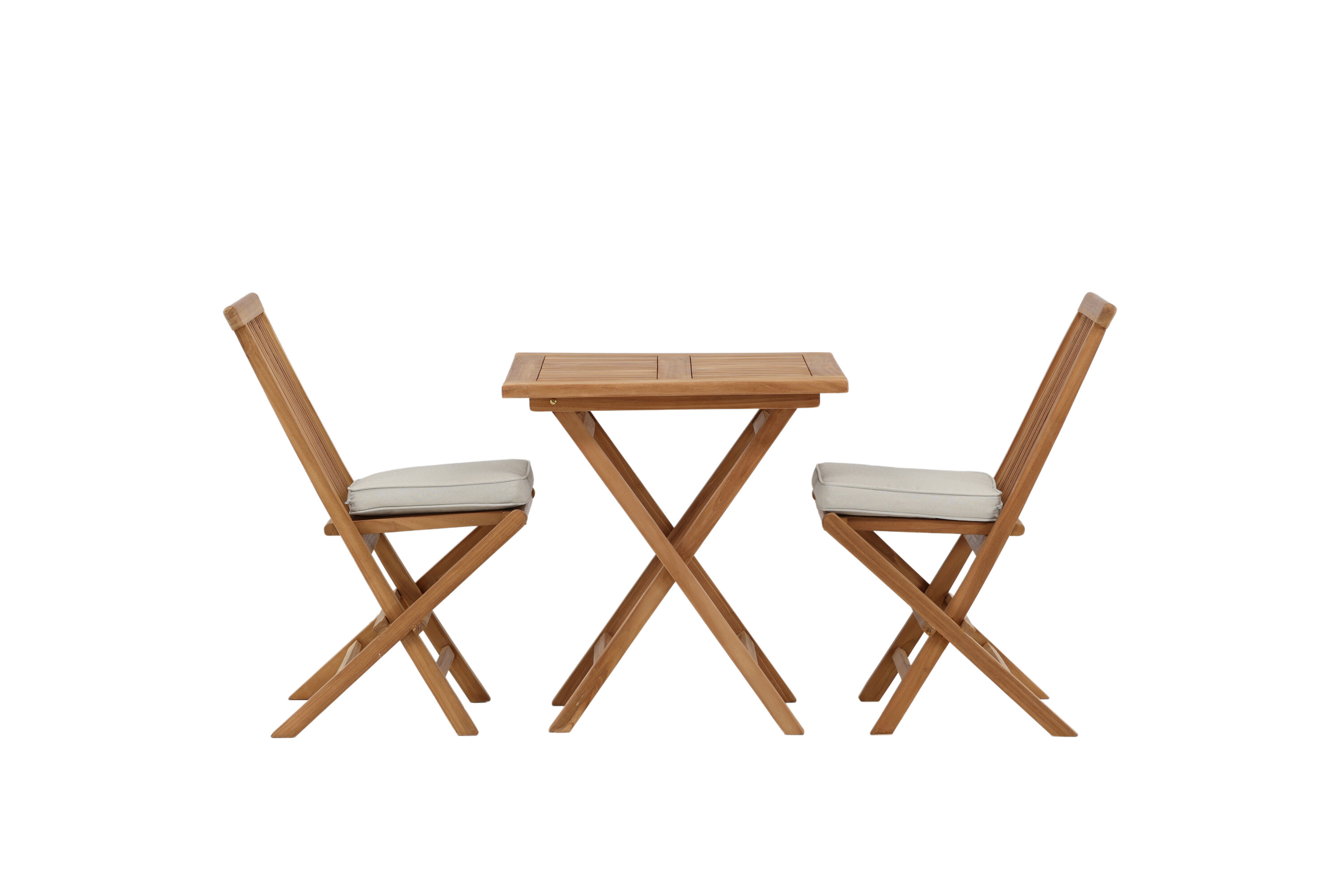 Einrichtung für die perfekte Kaffeepause in diesem Sommer! Der Kenia-Café-Tisch ist ein schöner Café-Tisch aus schönem Teakholz, der sich perfekt für alle Sommerfrühstücke und Nachmittagskaffees eignet. Mit seinem klassischen und glatten Design ist der Tisch einfach zu kombinieren und leicht zu bewegen. Hier zusammen mit 2 bequemen Esszimmerstühlen aus der Kenya-Serie, ebenfalls in Teakholz. Die Stühle sind auch zusammenklappbar, um sie bequem aufzubewahren. Schaffen Sie einen charmanten Ort für alle Sommeranlässe! Tischabmessungen: 70x70cm.