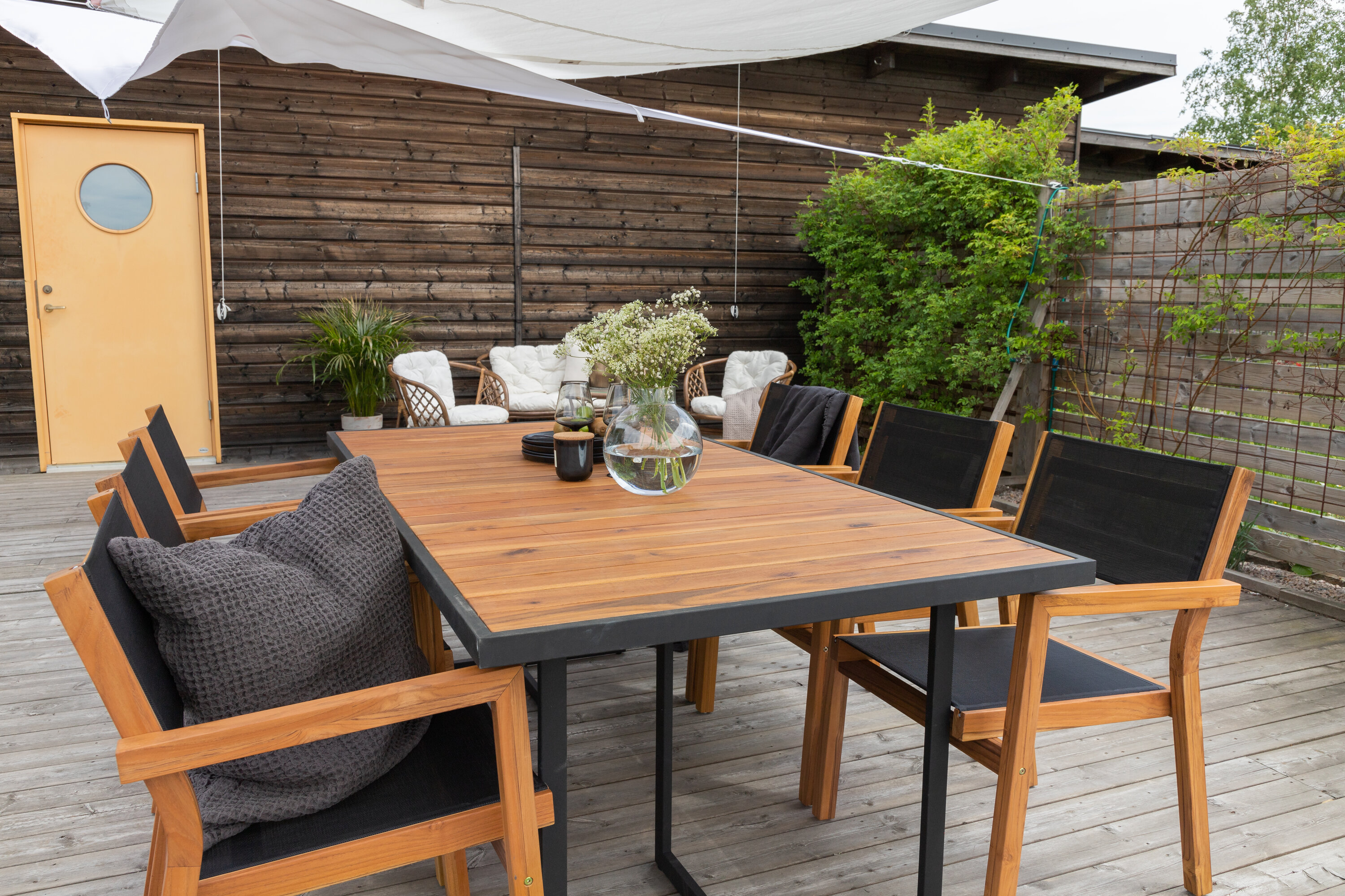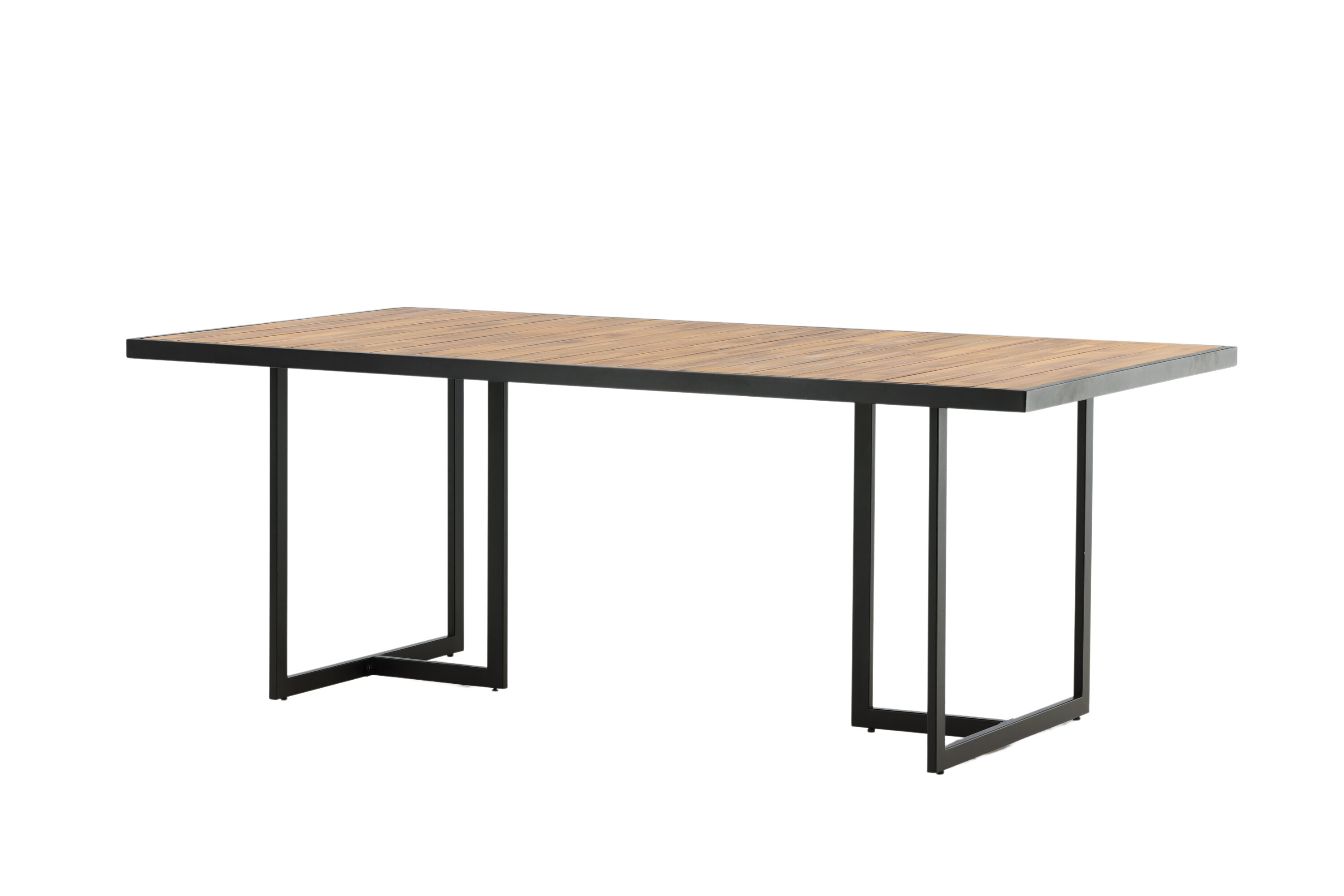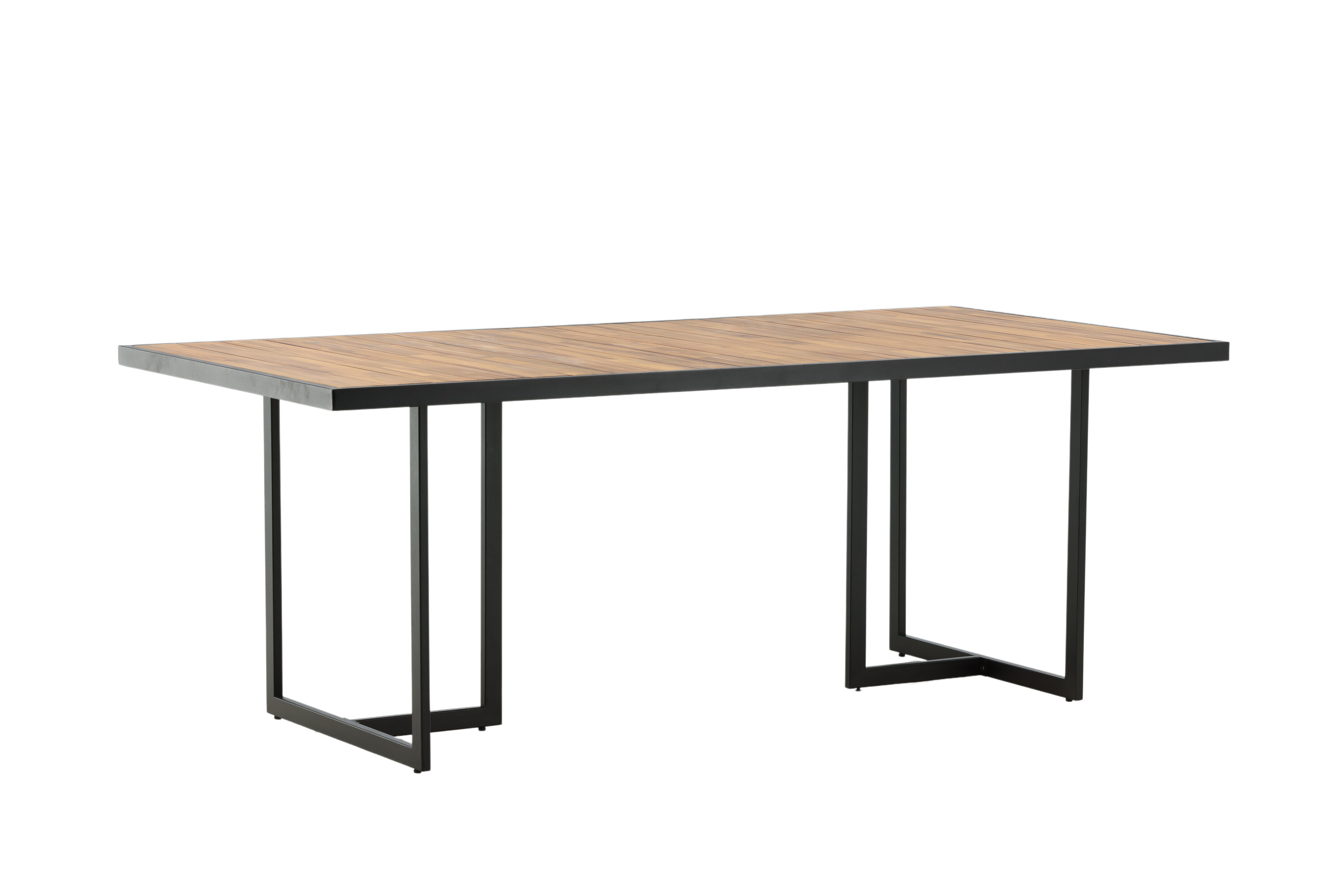 Esstisch khung in brauner Akazie mit Zierrahmen und Untergestell in schwarzem Stahl. Ein Esstisch, der genauso gut in den Garten wie auf die Terrasse passt. Genießen Sie gemeinsam die wunderbaren Momente des Sommers! Lesen Sie mehr unter unseren Wartungshinweisen, wie Sie Ihren Tisch am besten pflegen können.
