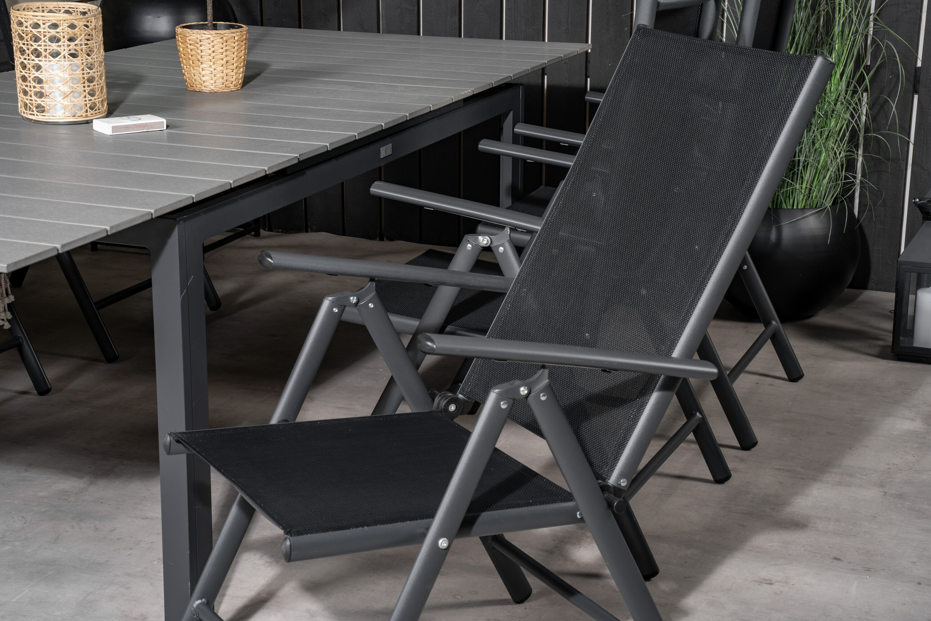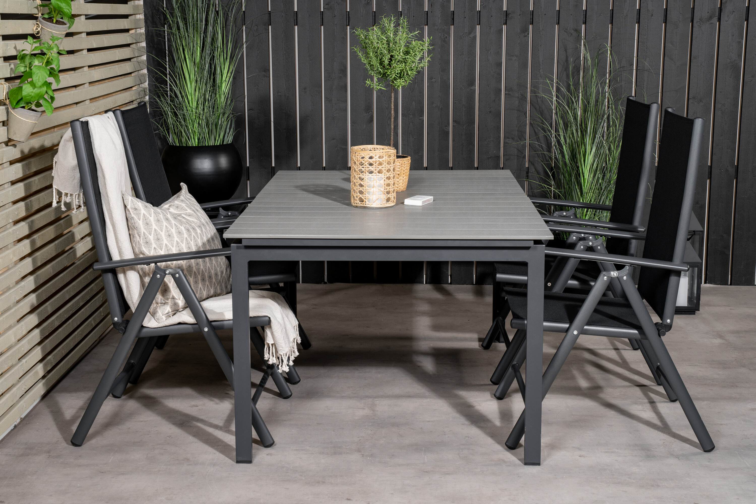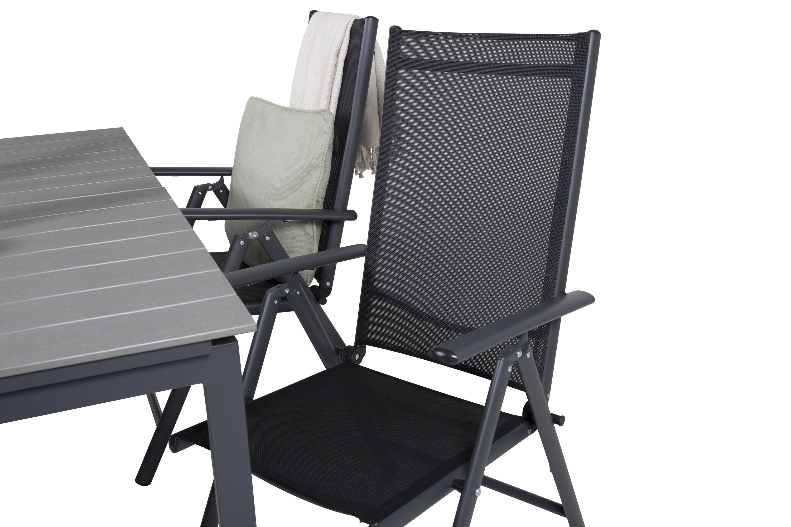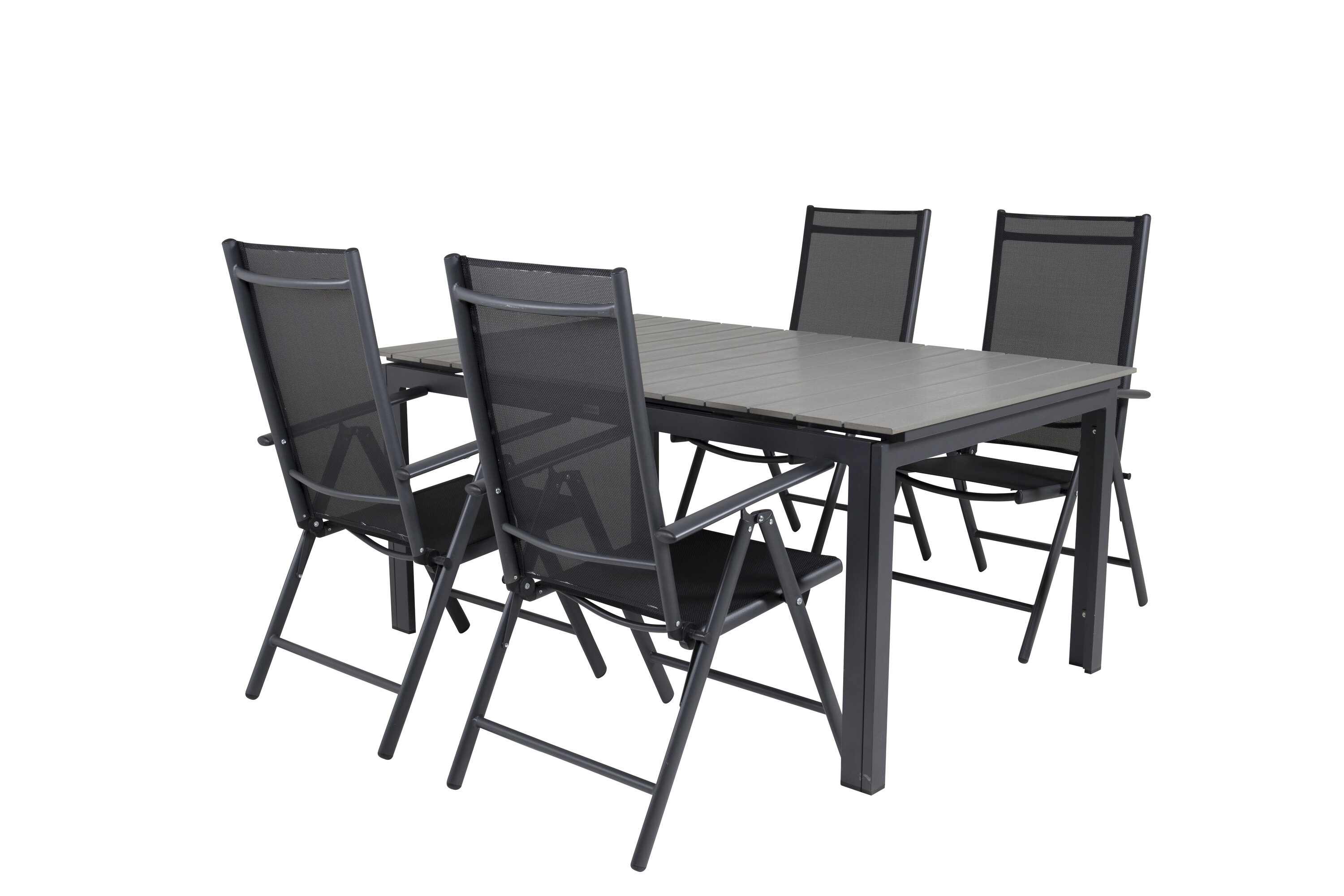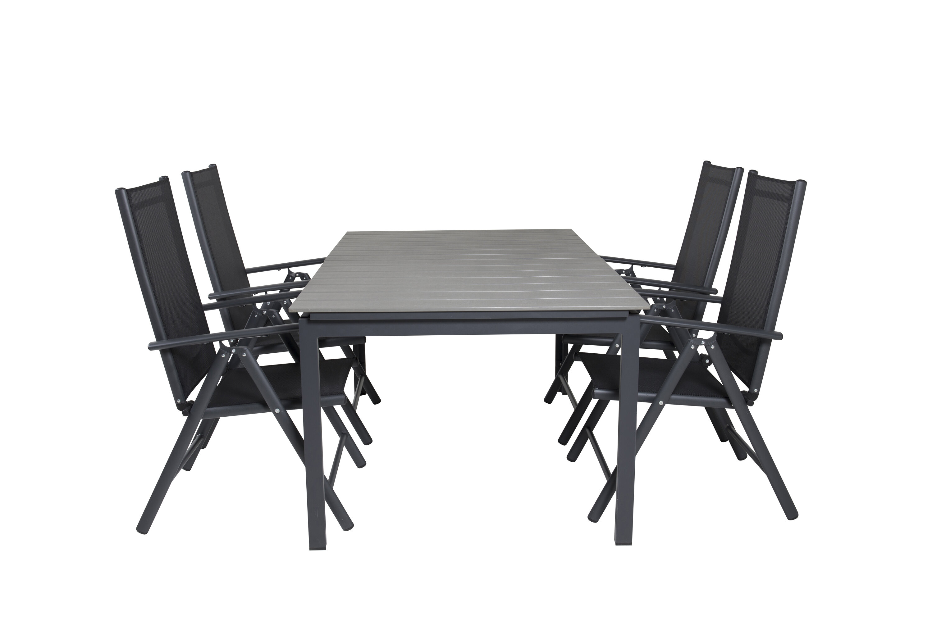 Unsere beliebten Klapp-Essstühle der Serie Break zusammen mit Esstisch-Ebenen im klassischen Stil! Die perfekte Kombination für diejenigen, die eine stilvolle und praktische Lebensmittelgruppe suchen, um die Terrasse zu dekorieren!
