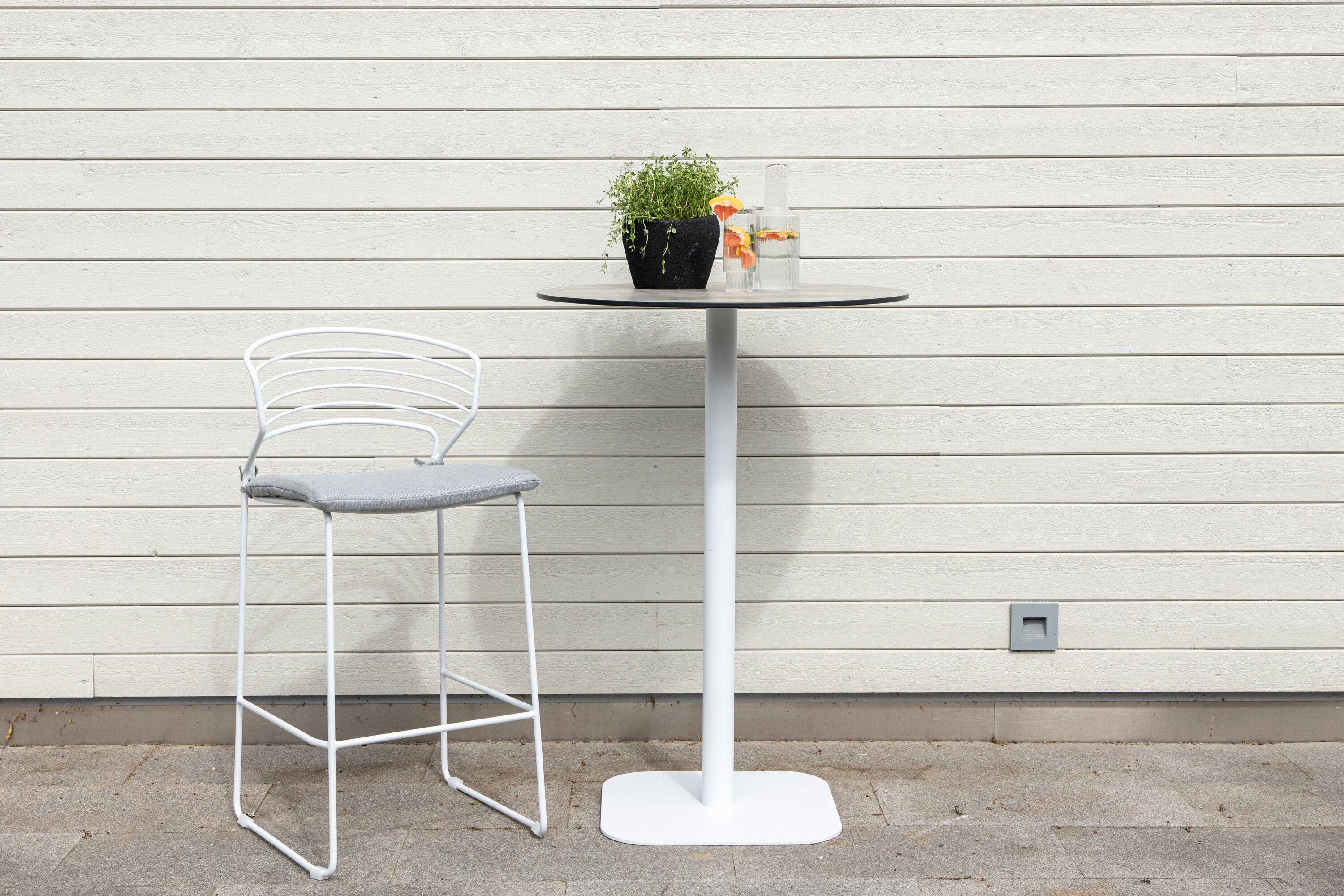 Erleben Sie eine geschmackvolle Kombination aus Eleganz und Funktionalität mit dem Milano-Bartisch. Milano ist die perfekte Ergänzung für Ihr Zuhause. Die Tischplatte in elegantem Grau verleiht Milano ein modernes und raffiniertes Gefühl, während das runde Tischbein in Weiß für einen frischen Kontrast sorgt. Das schlanke und einfache Design ermöglicht es diesem Stehtisch, sich in verschiedene Einrichtungsstile einzufügen und bietet einen eleganten Ausdruck.