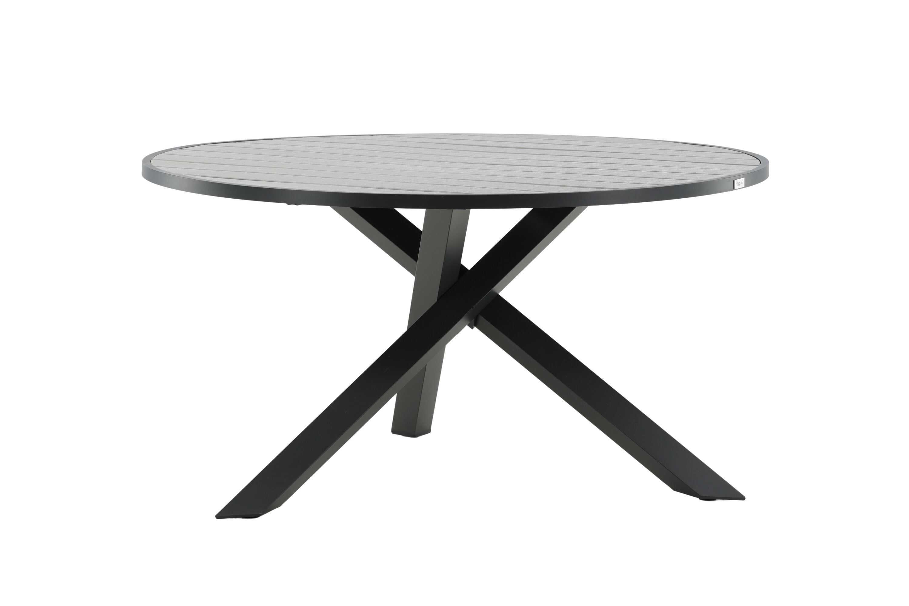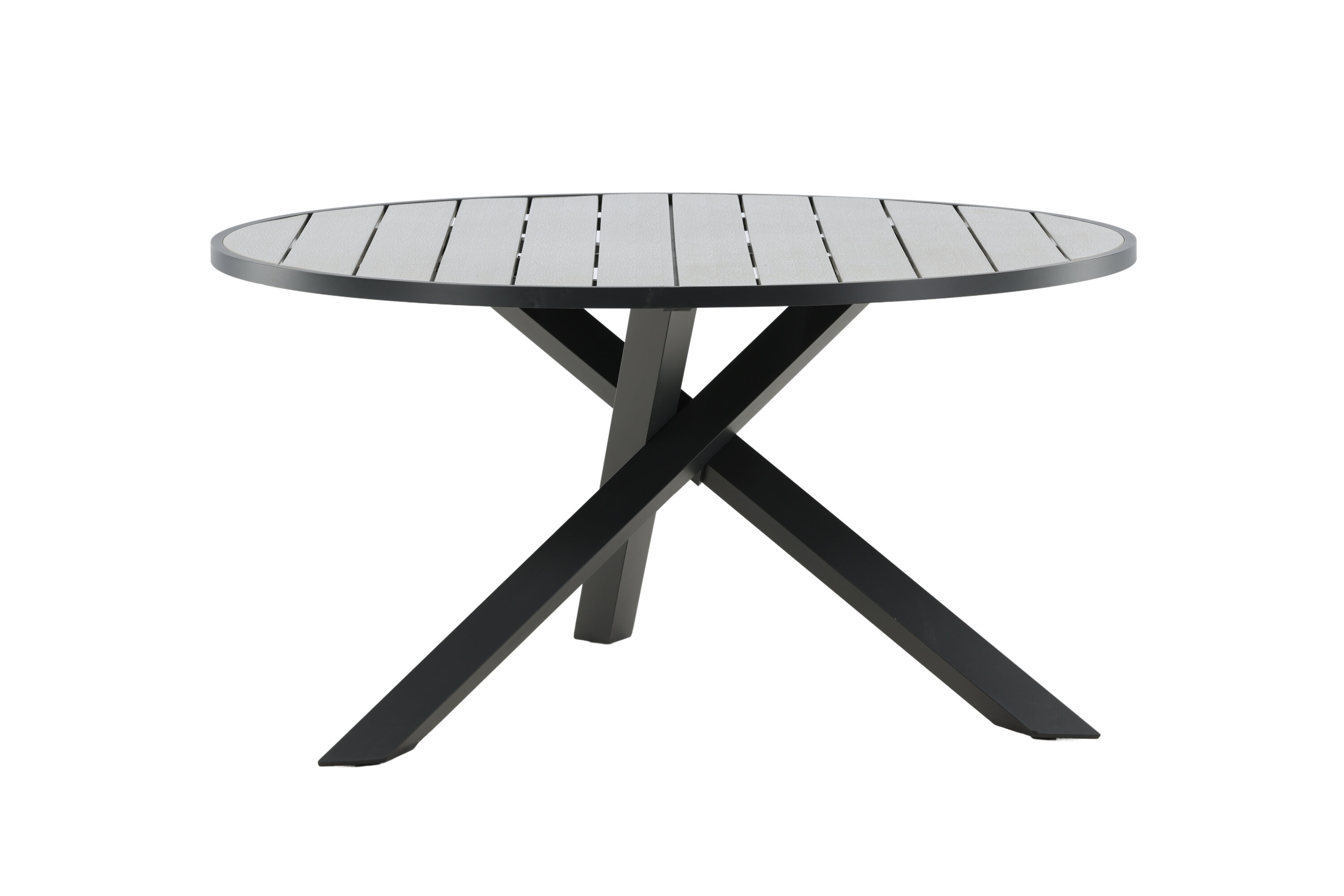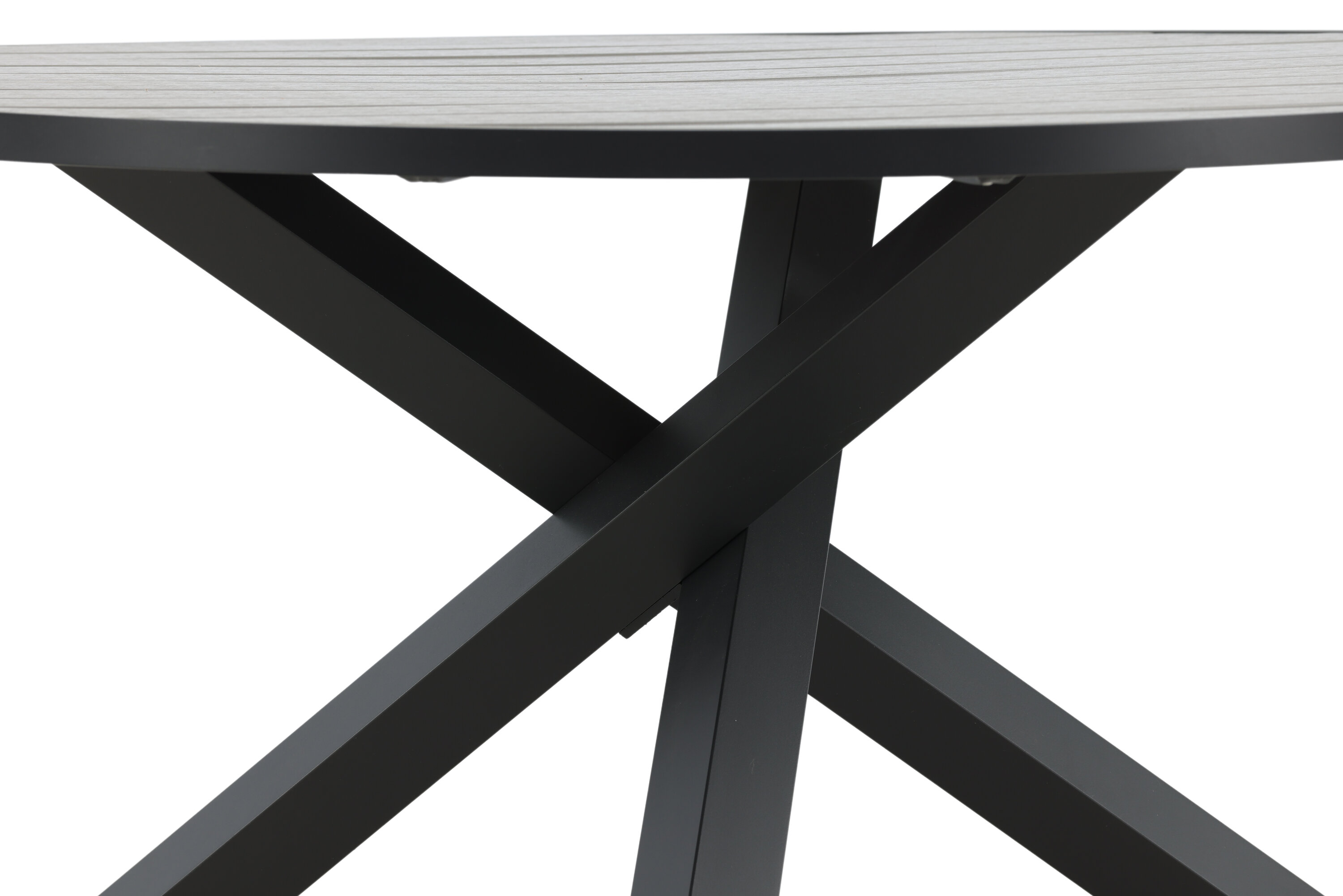 Ein runder Esstisch ist perfekt für diejenigen, die in diesem Sommer ein angenehmes, geselliges und einladendes Gefühl für den Außenbereich oder den Balkon schaffen wollen! Hier können Gespräche und Lachen frei um einen stilvollen Esstisch im klassischen Look aus der Parma-Serie fließen. Der Esstisch hat eine graue Aintwood-Tischplatte und ein kreuzfahrtähnliches Fahrgestell aus schwarzem Metall - machen Sie sich bereit für das Nachtleben und lassen Sie die Zeit hier zum Highlight des Tages werden!