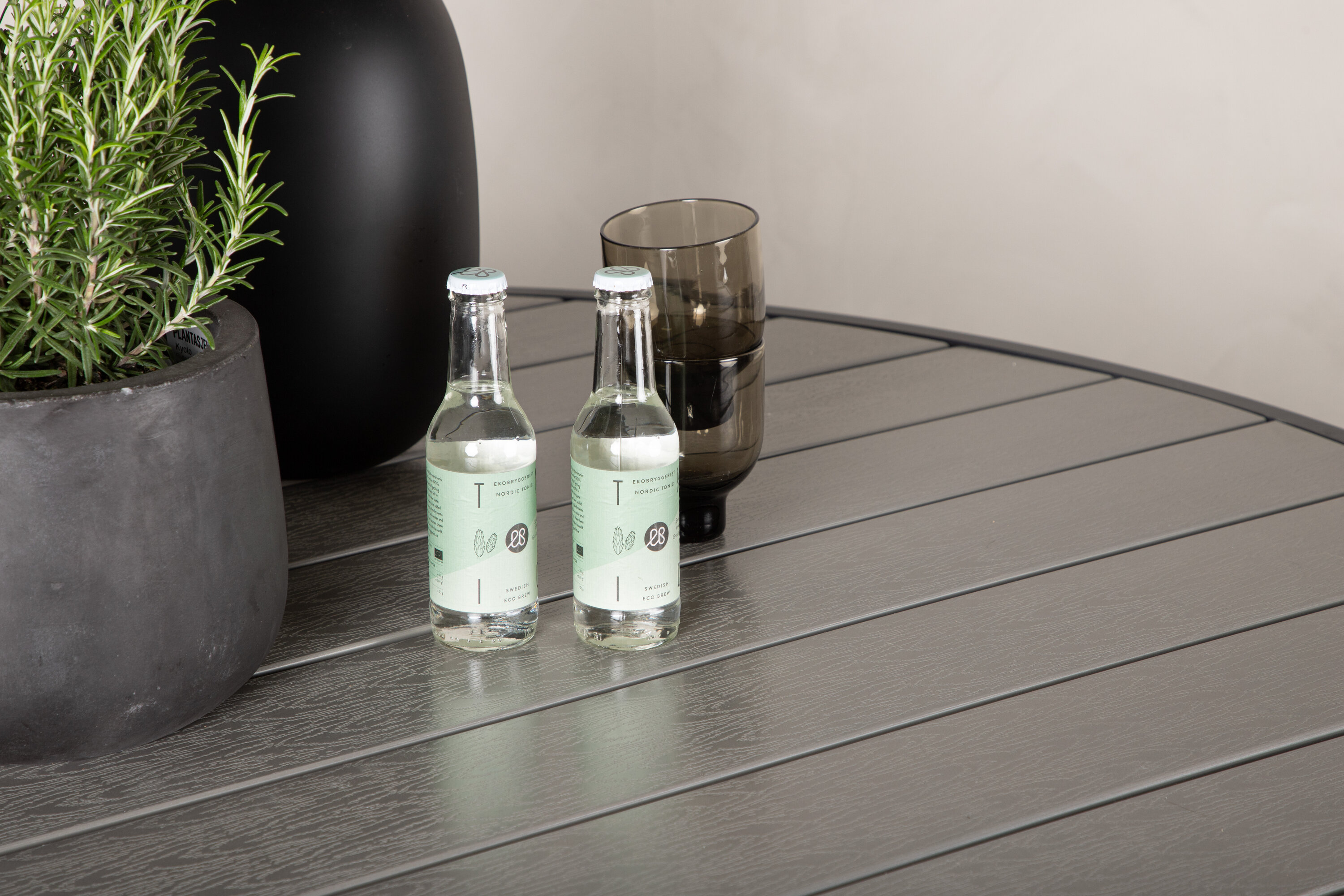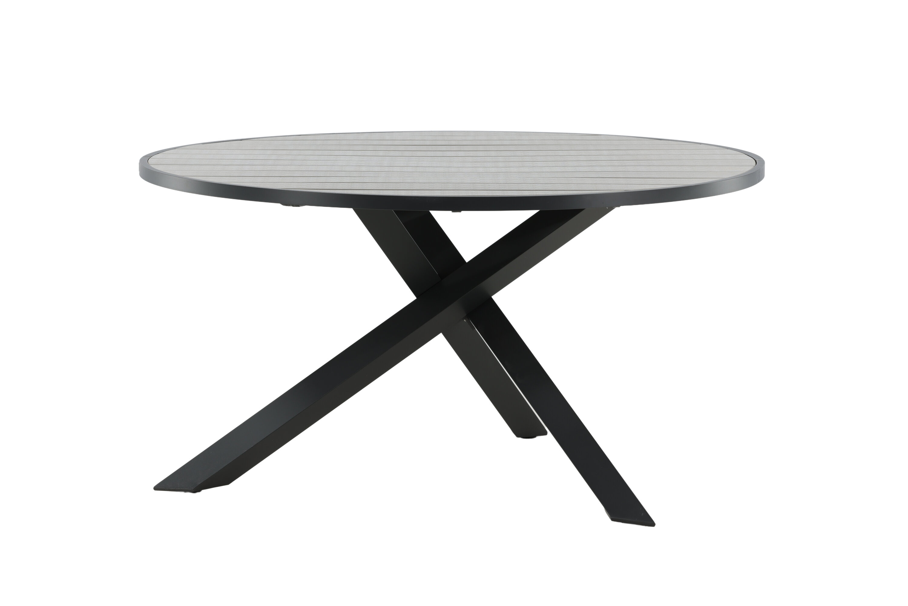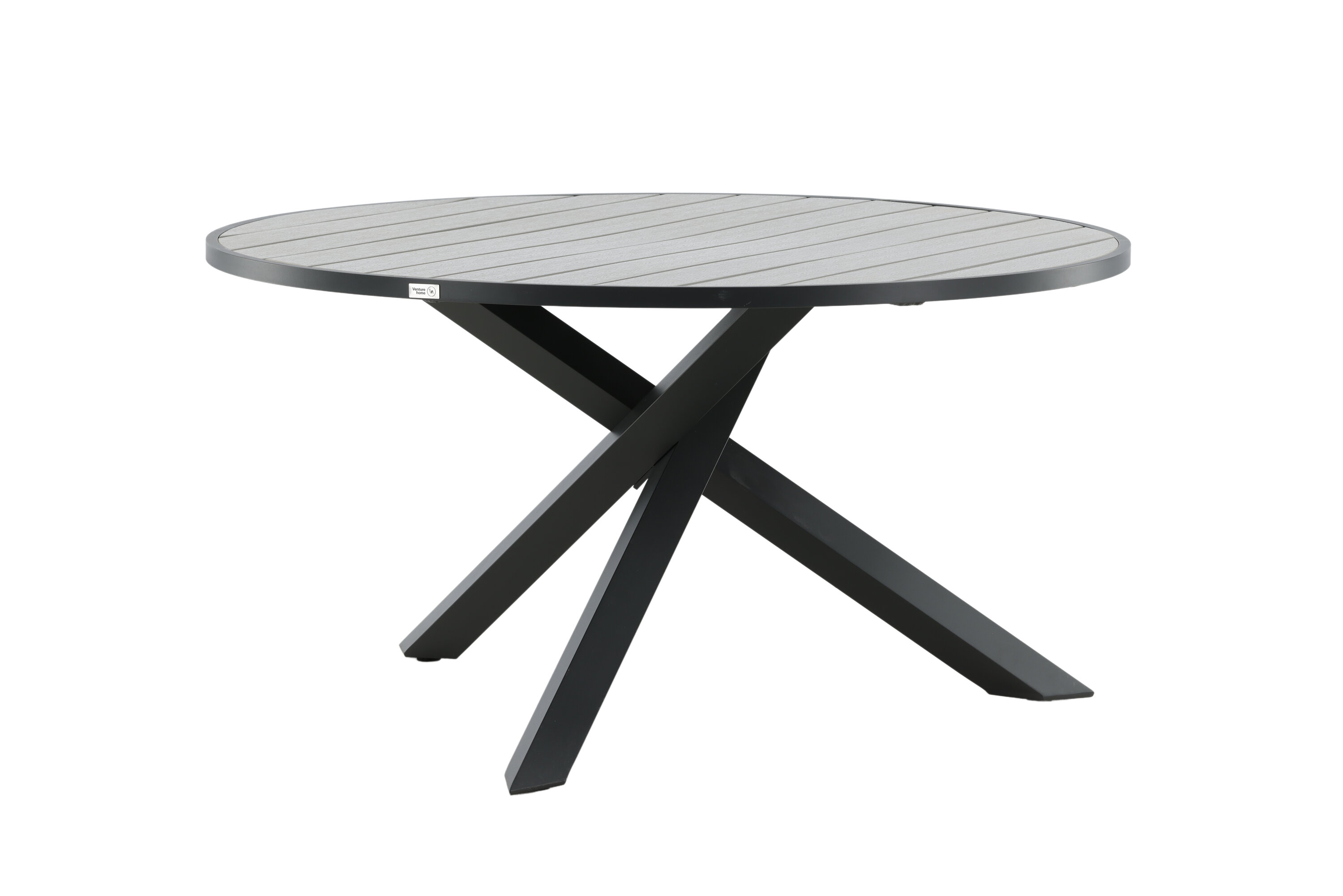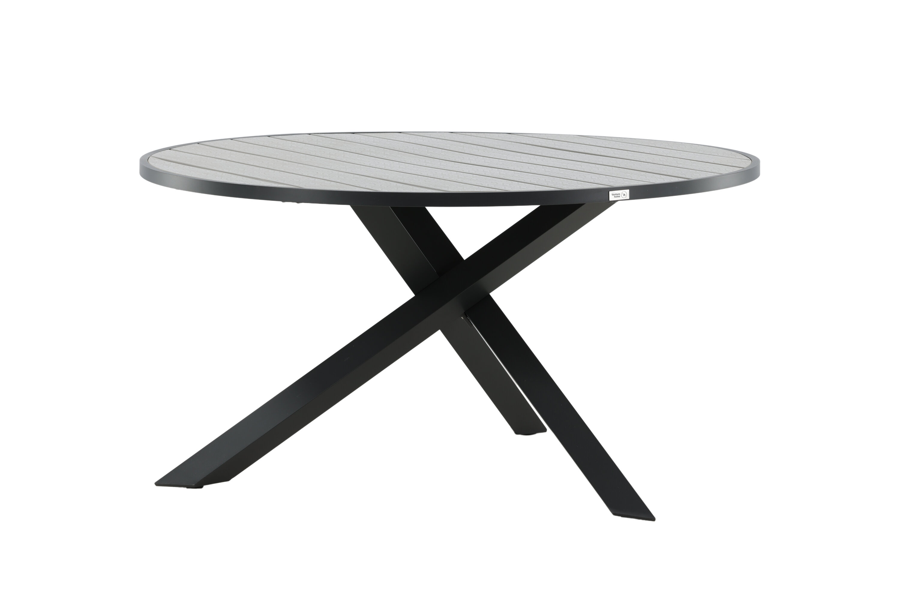 Ein runder Esstisch ist perfekt für diejenigen, die in diesem Sommer ein angenehmes, geselliges und einladendes Gefühl für den Außenbereich oder den Balkon schaffen wollen! Hier können Gespräche und Lachen frei um einen stilvollen Esstisch im klassischen Look aus der Parma-Serie fließen. Der Esstisch hat eine graue Aintwood-Tischplatte und ein kreuzfahrtähnliches Fahrgestell aus schwarzem Metall - machen Sie sich bereit für das Nachtleben und lassen Sie die Zeit hier zum Highlight des Tages werden!