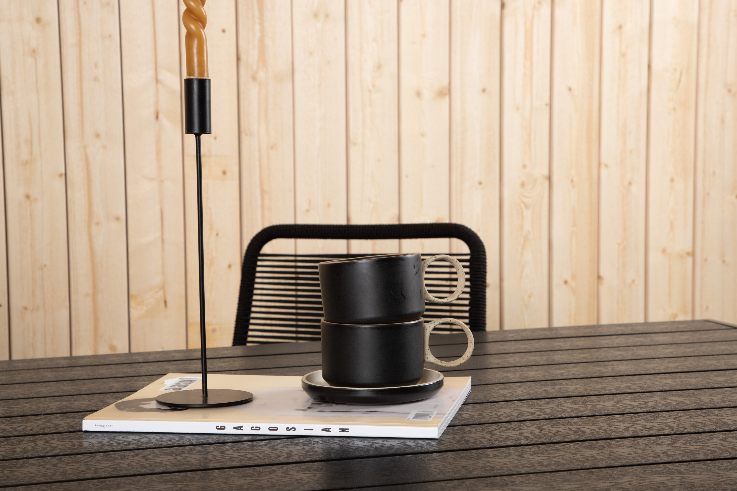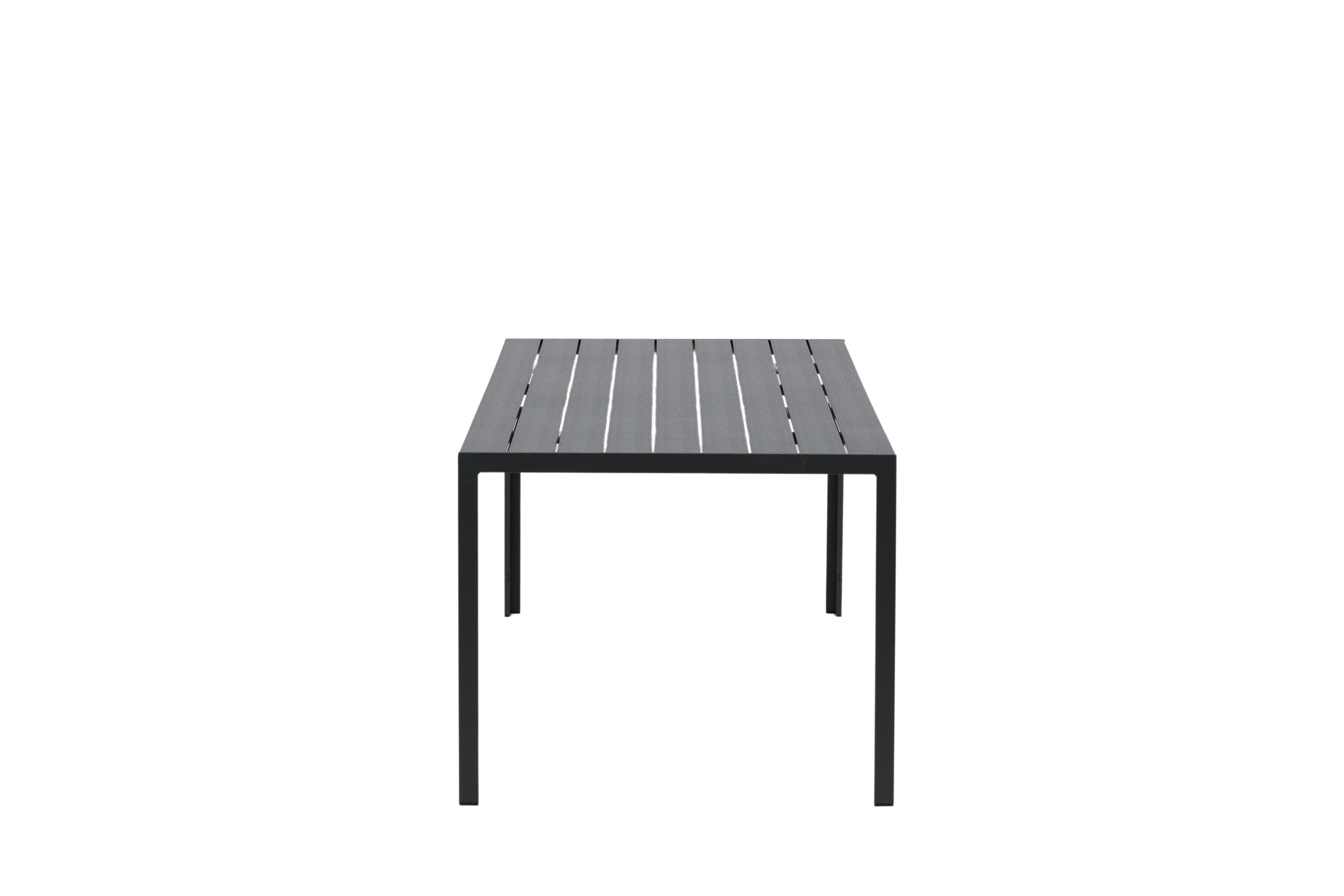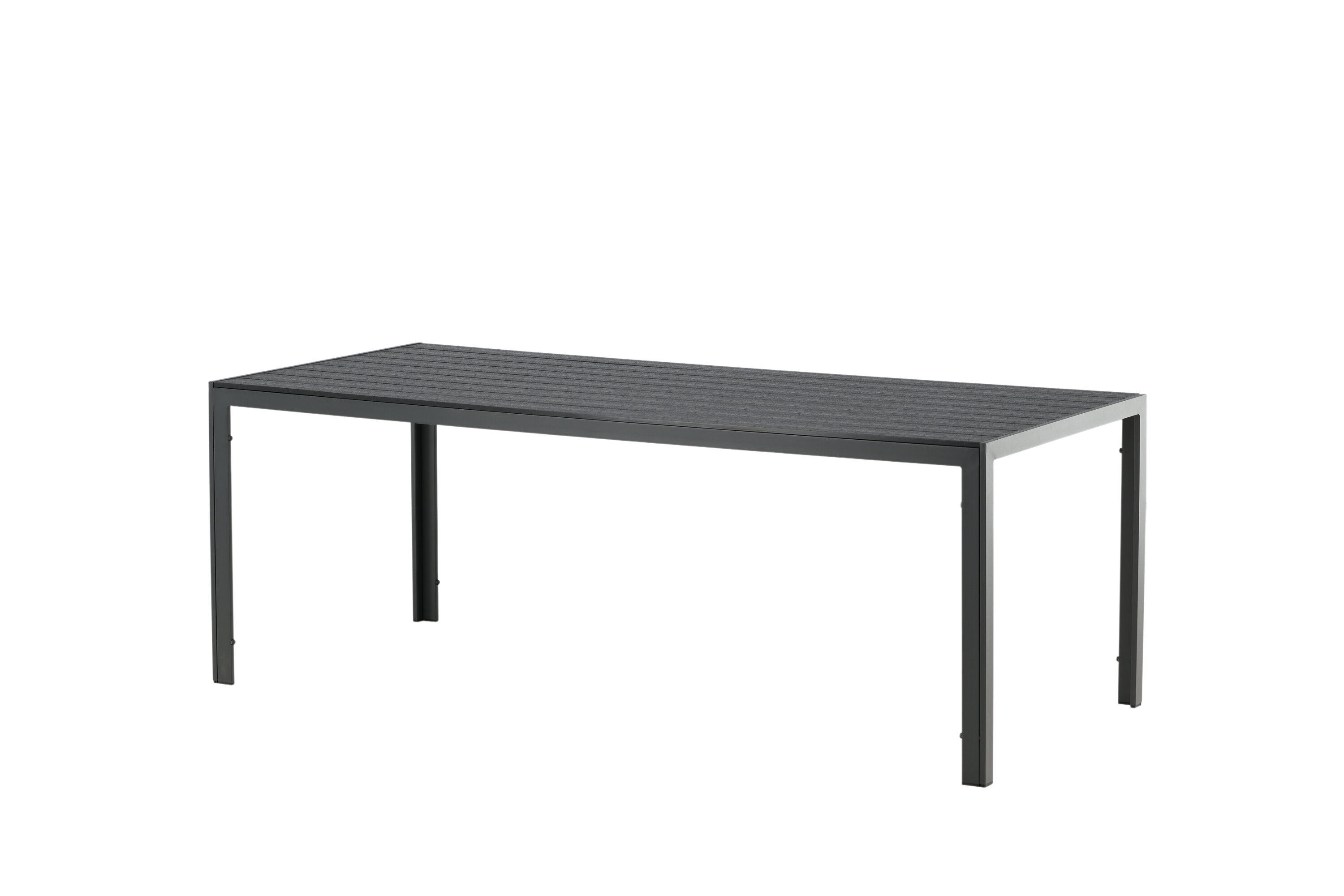 Elegant, ordentlich und langlebig - ein rechteckiger Esstisch, an dem jeder einfach Recht hat! Break hat gerade Formen im klassischen nordischen Design mit einer Tischplatte aus schwarzem Polyholz und einem Tischbein aus Aluminium. Die Materialien sind sowohl langlebig als auch leicht, so dass Sie sich bei Bedarf leicht um den Esstisch bewegen können. Bereiten Sie sich diesen Sommer auf das Nachtleben vor und genießen Sie Mahlzeiten im Freien!