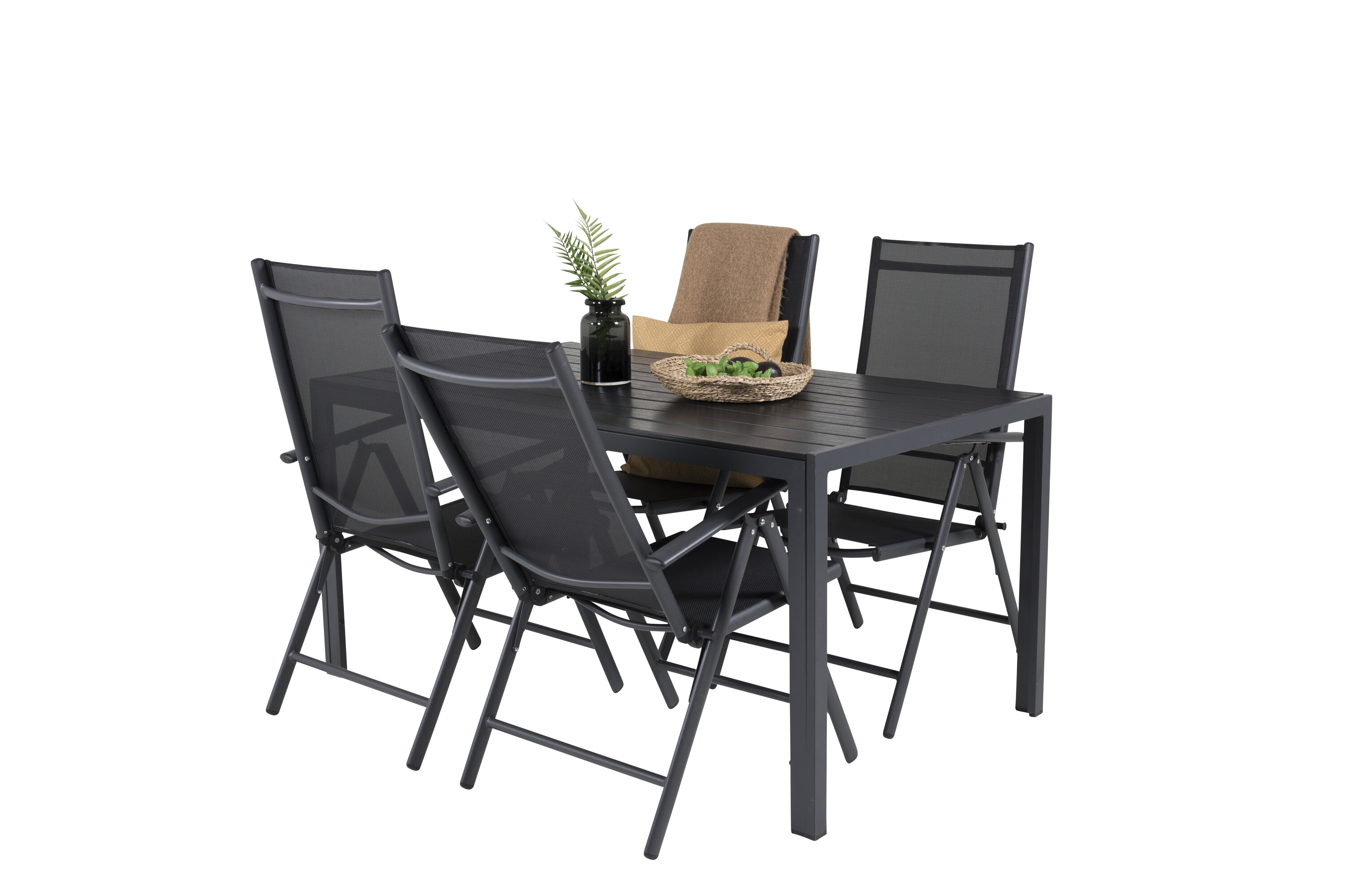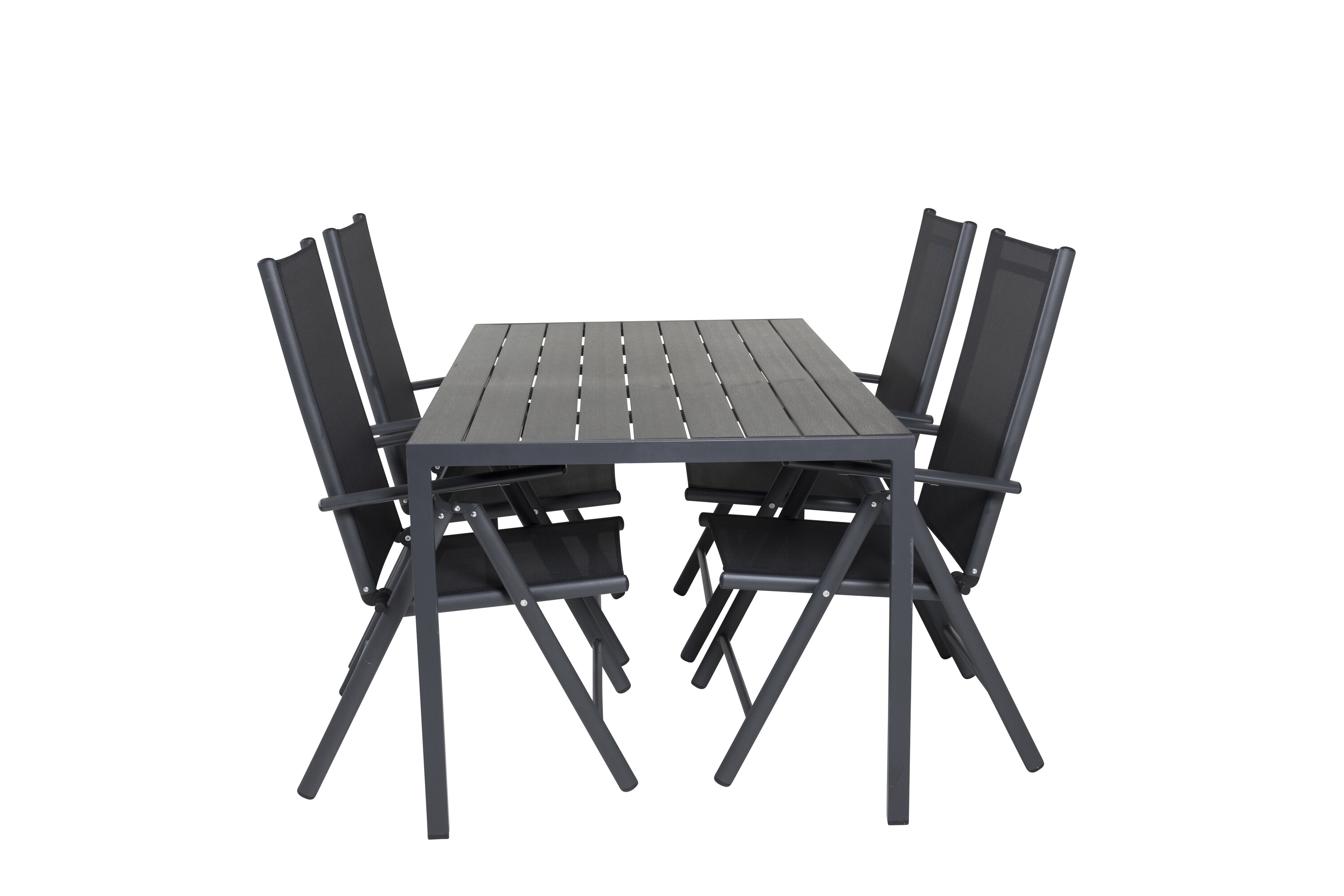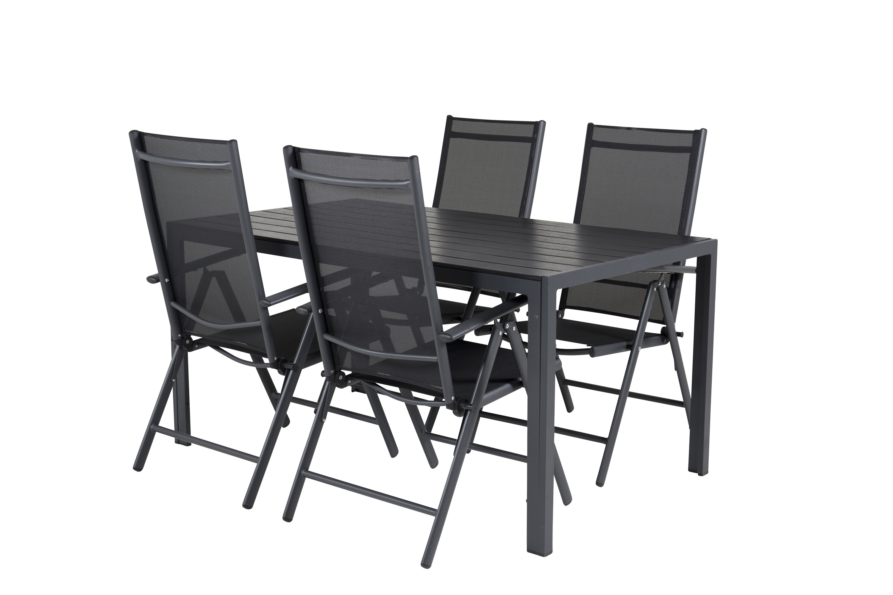 In einem durchgängig schwarzen und geraden Design erhalten Sie eine Lebensmittelgruppe, die im Laufe der Zeit steht. Esstisch Break zusammen mit 5-Positionsstühlen der Serie Break.