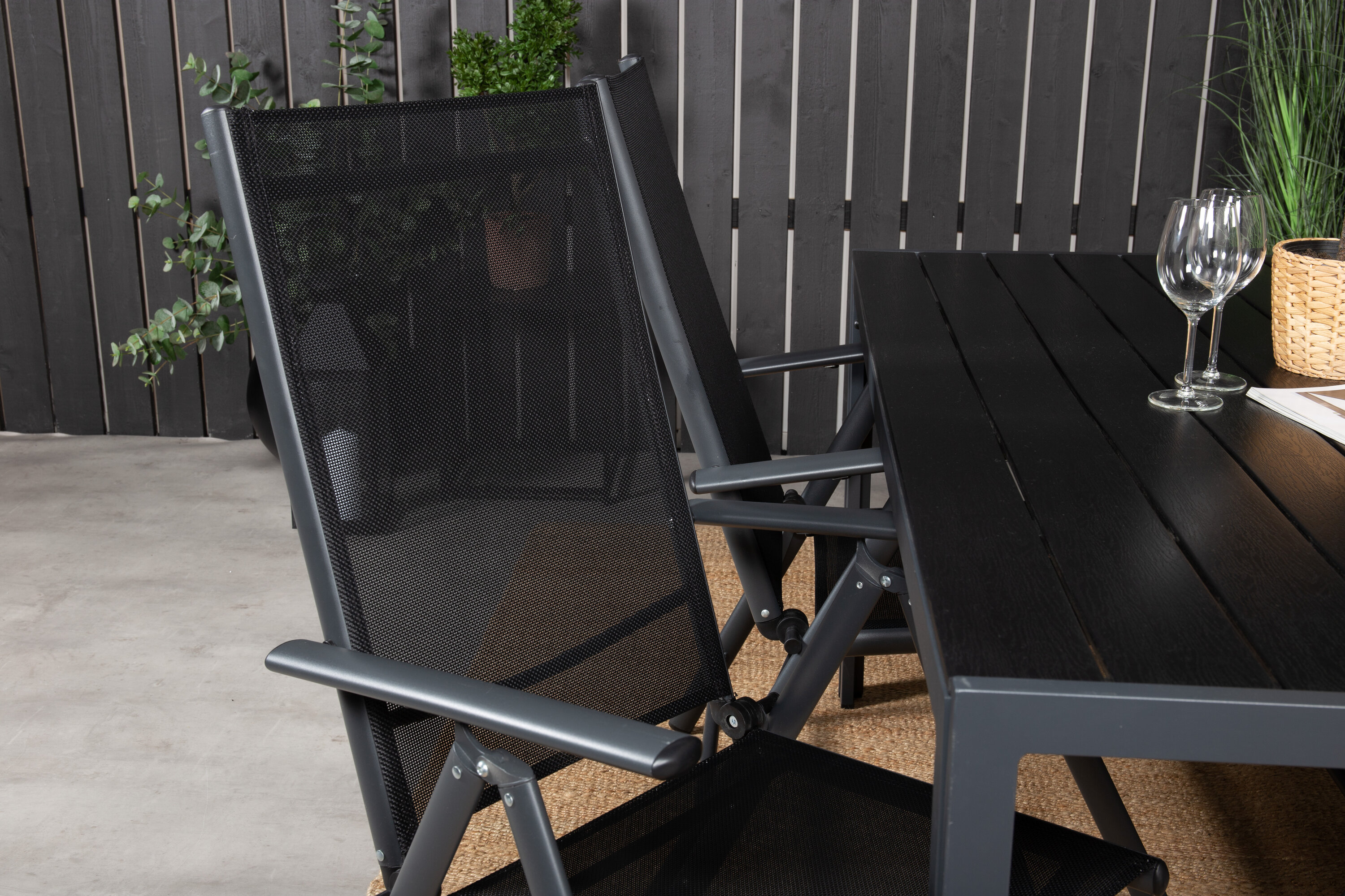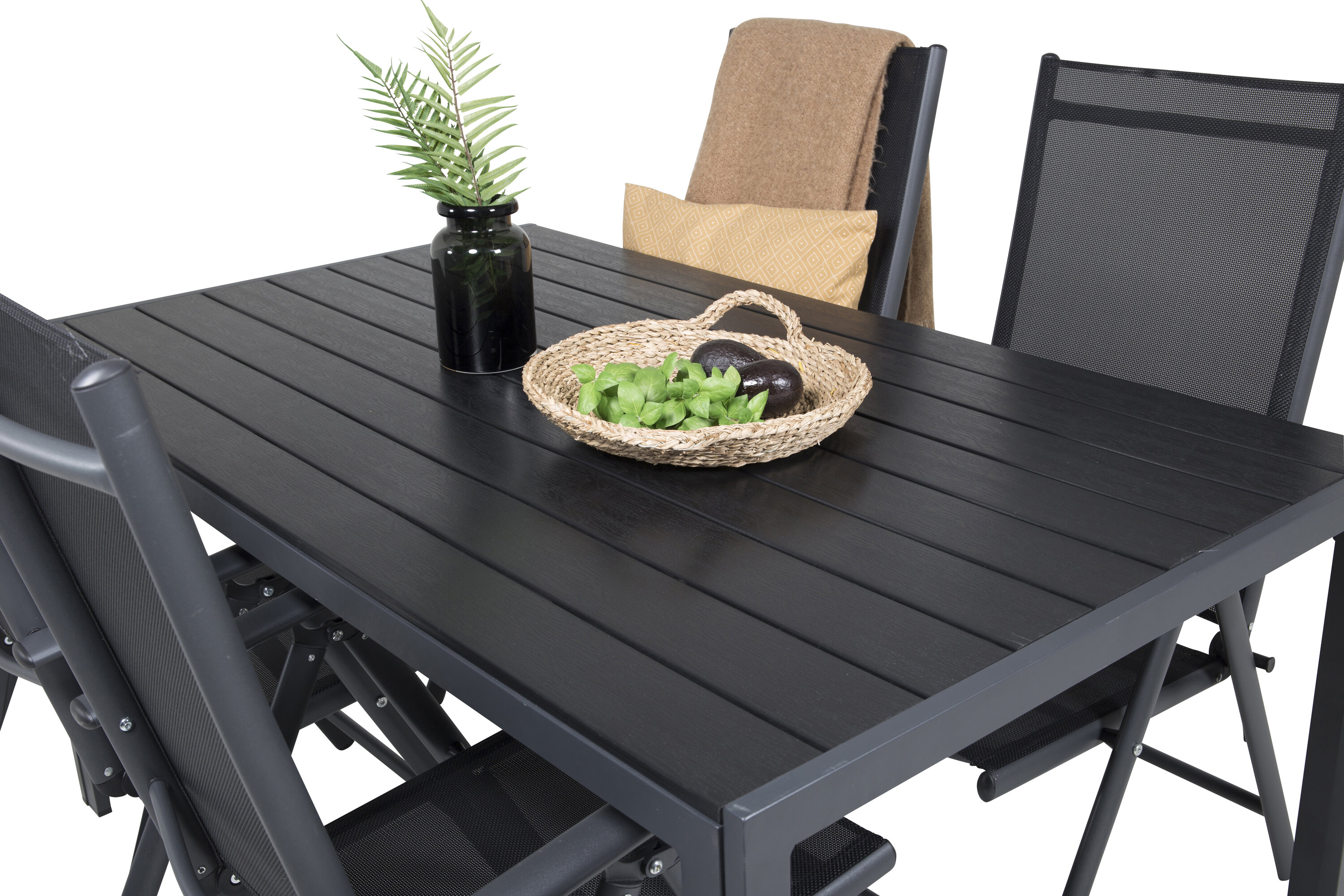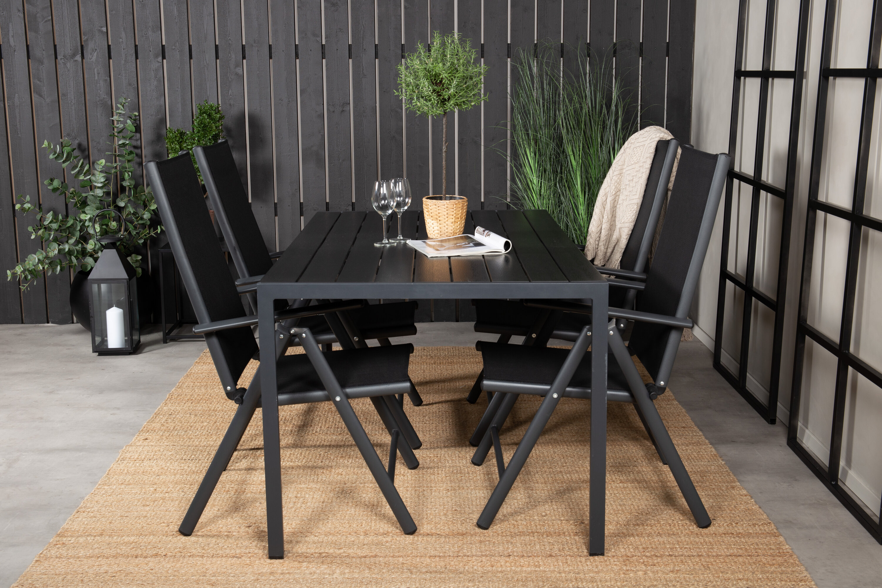 In einem durchgängig schwarzen und geraden Design erhalten Sie eine Lebensmittelgruppe, die im Laufe der Zeit steht. Esstisch Break zusammen mit 5-Positionsstühlen der Serie Break.