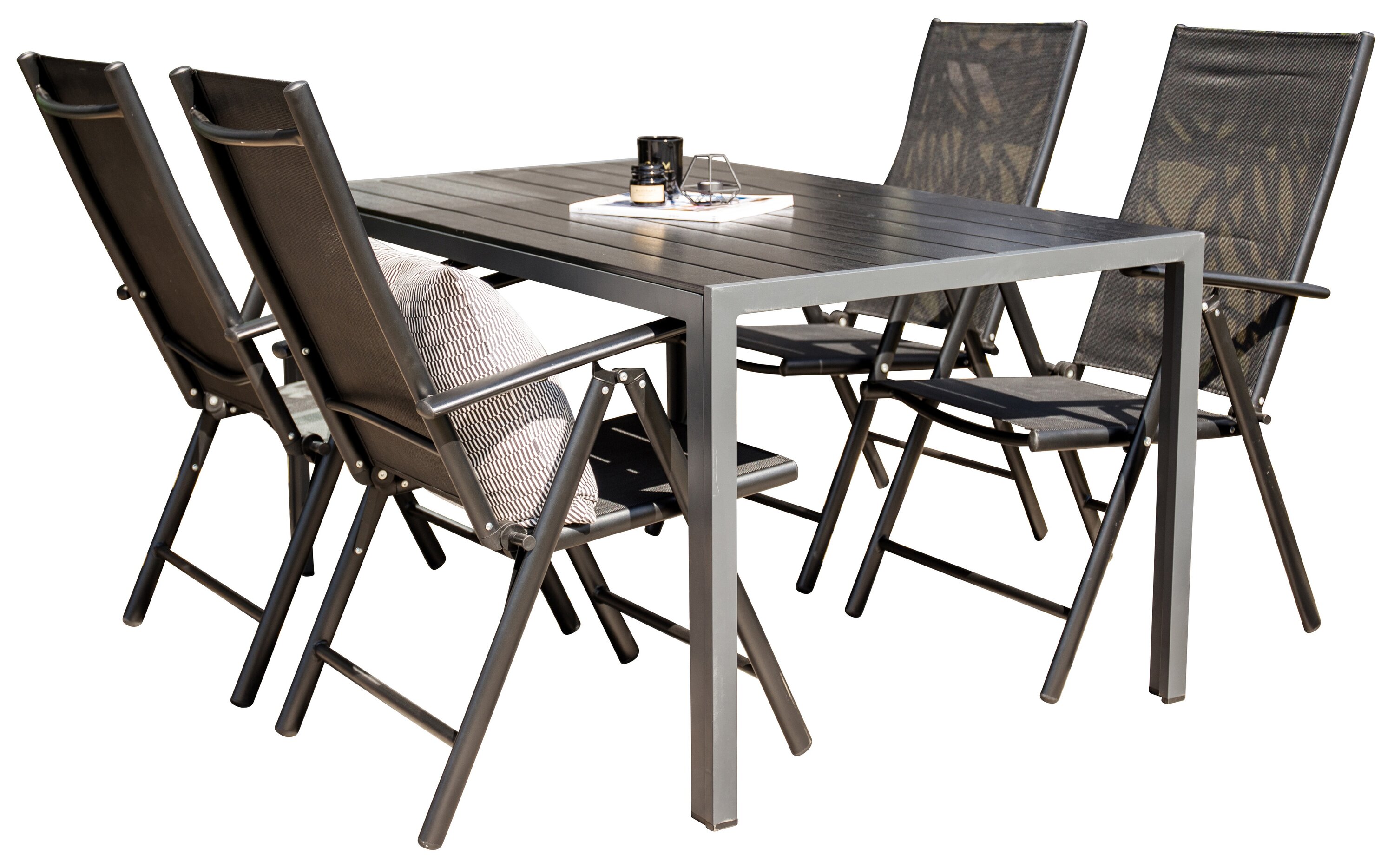 | Abmessungen | : Tisch: 74x150x90 Stuhl: 62x107,5x55 cm |