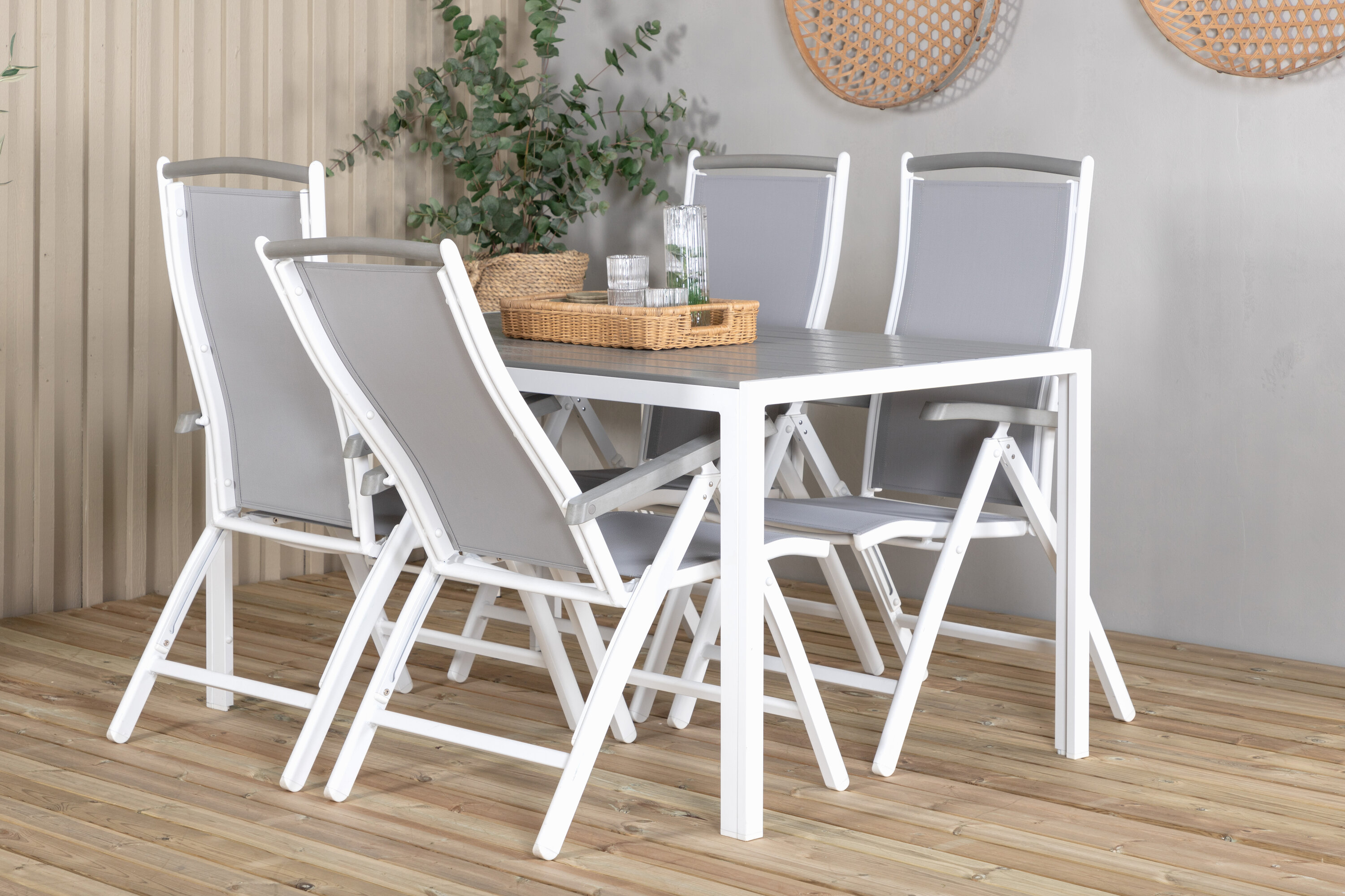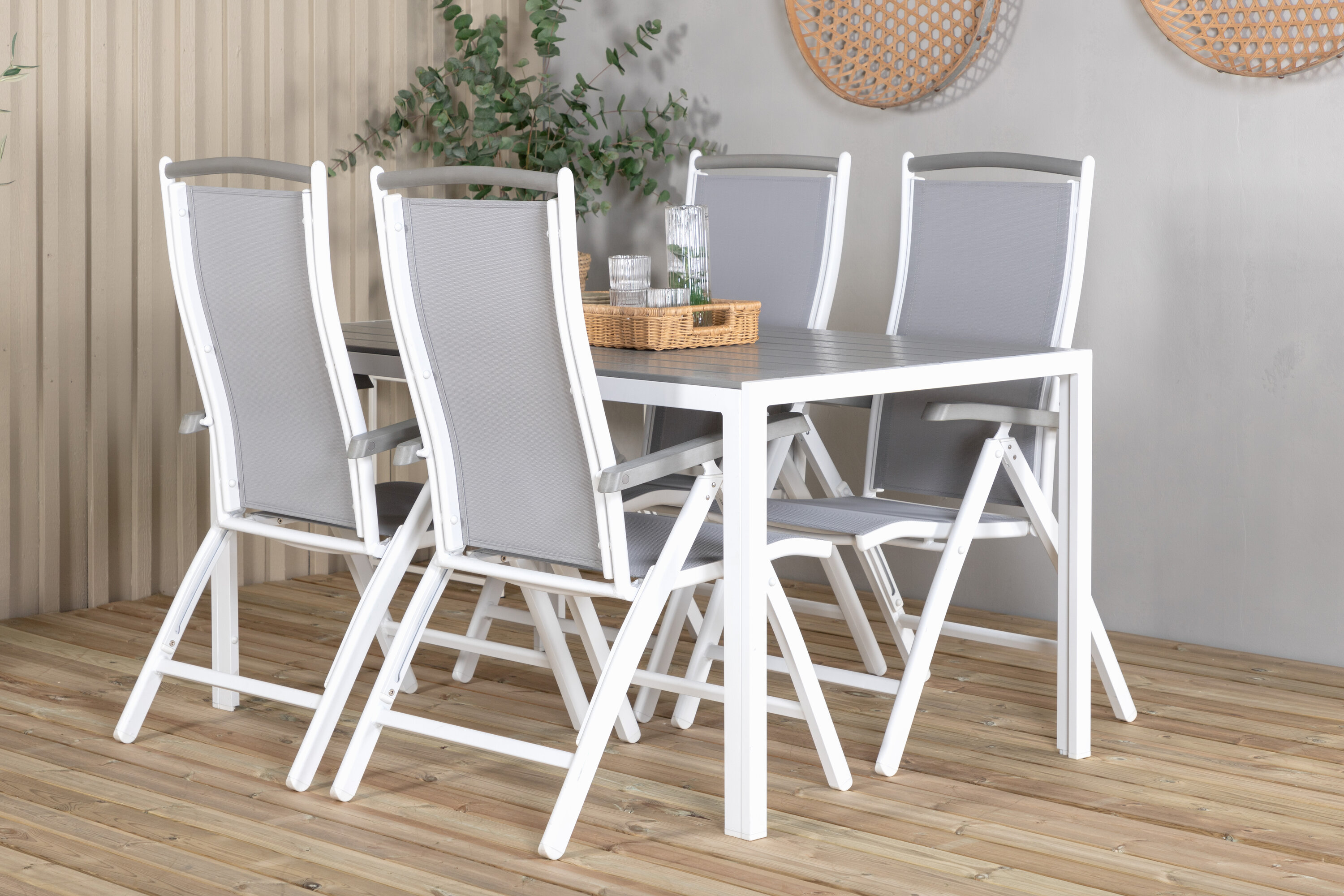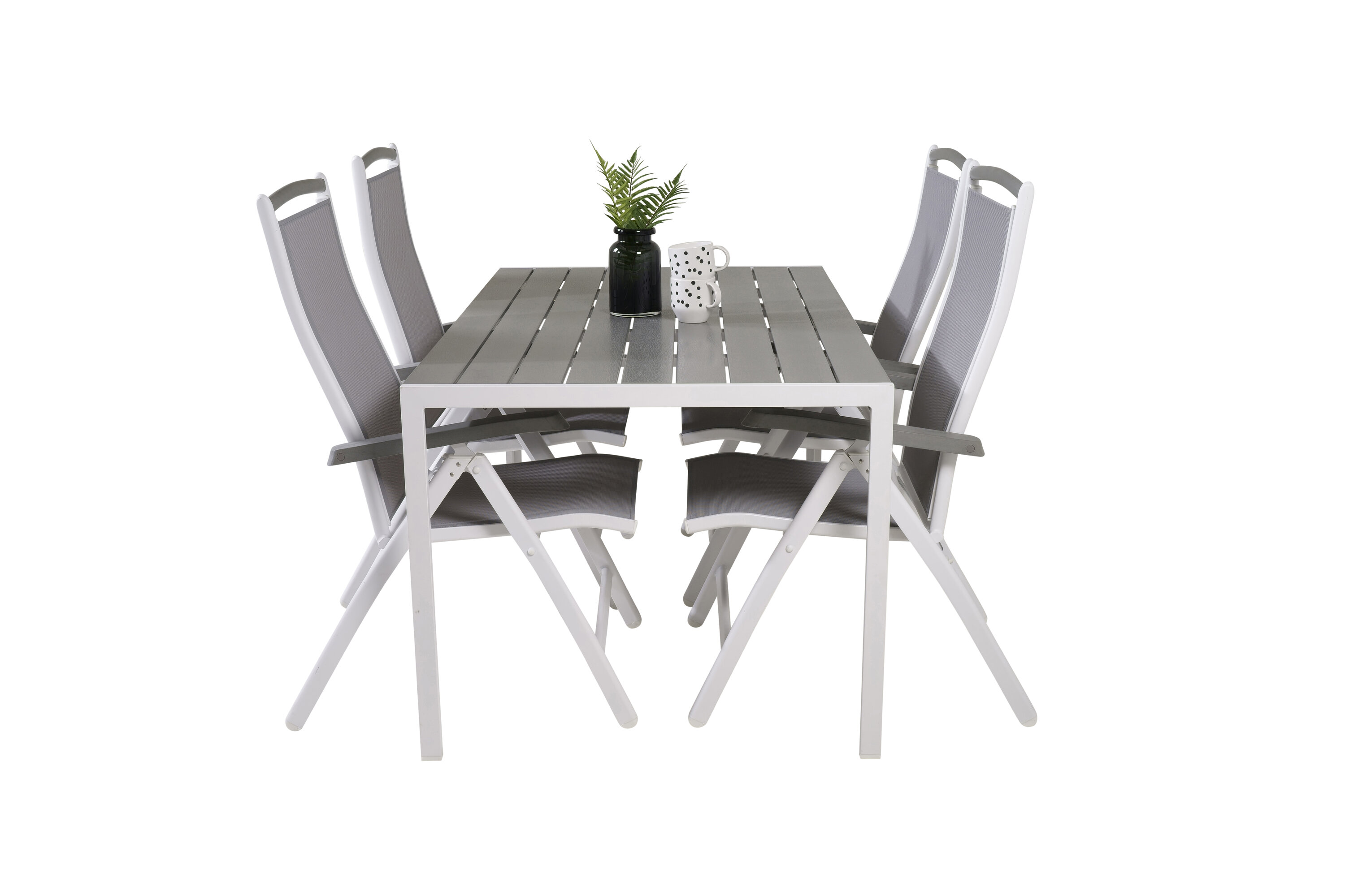 Eine moderne Lebensmittelgruppe in köstlichen Graustufen! Klassischer Esstisch ist sowohl trendfest als auch praktisch. Hier zusammen mit seinen freundlichen Esszimmerstühlen der Serie Albany mit klappbarer Rückenlehne. Versammeln Sie Familie und Freunde und genießen Sie warme Sommerabende auf der Terrasse!