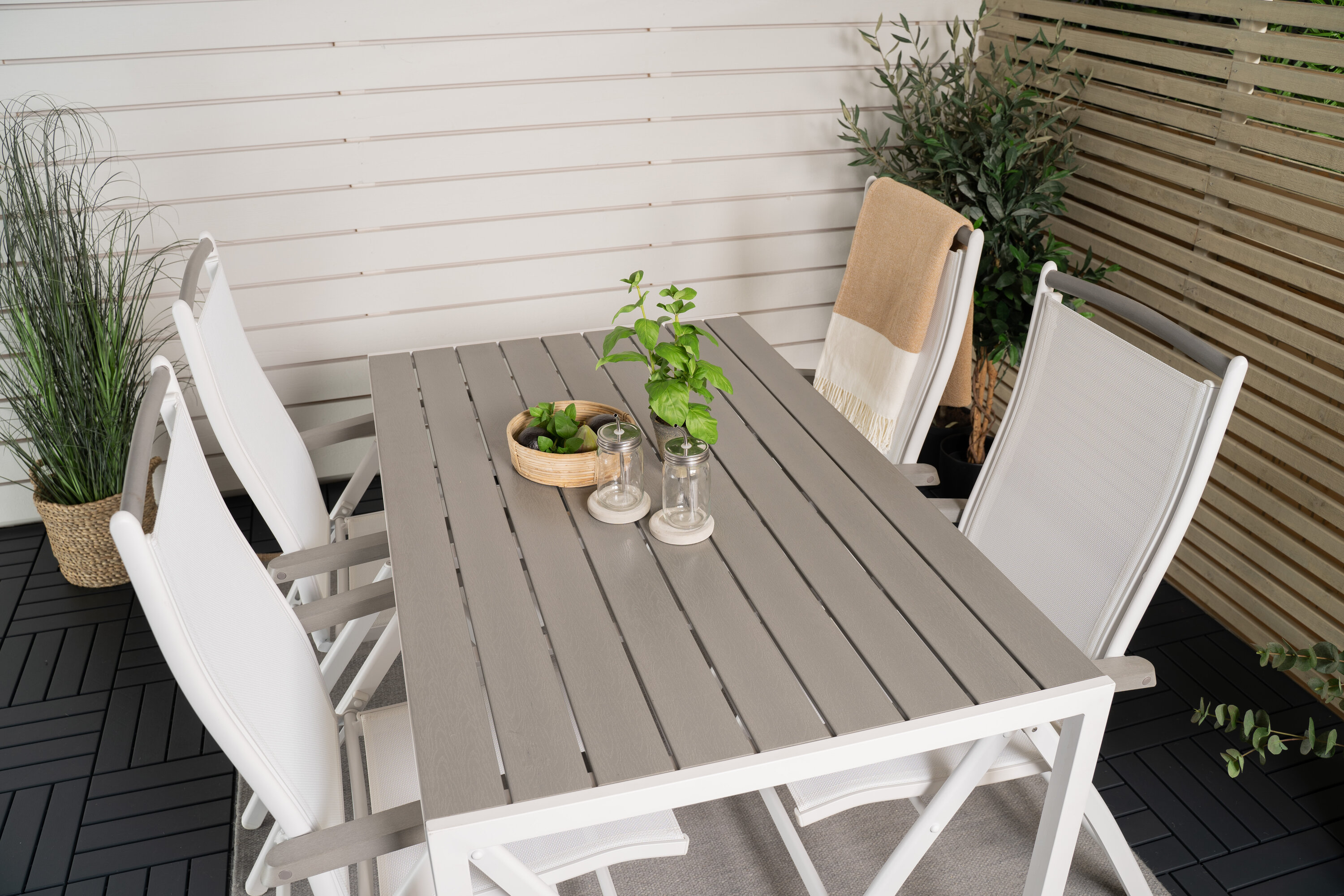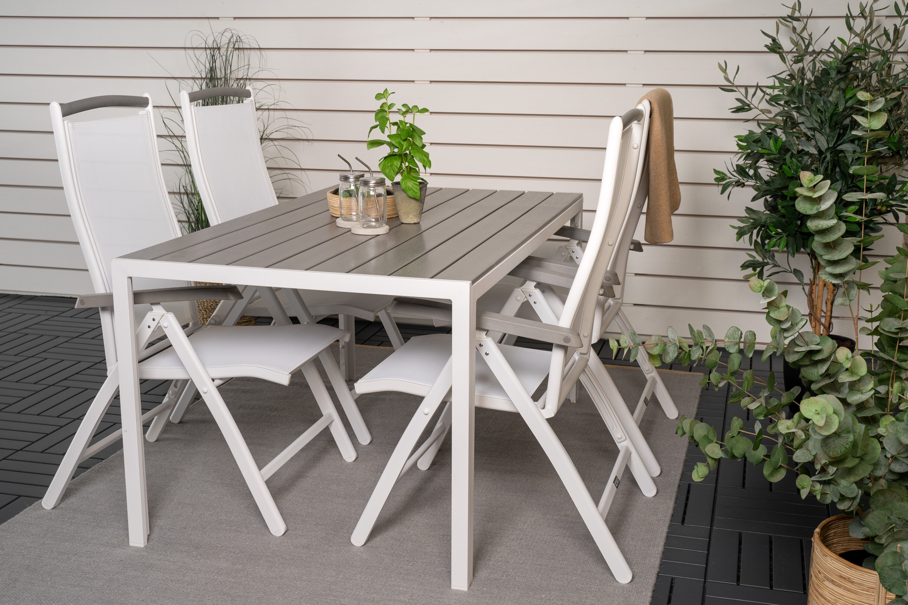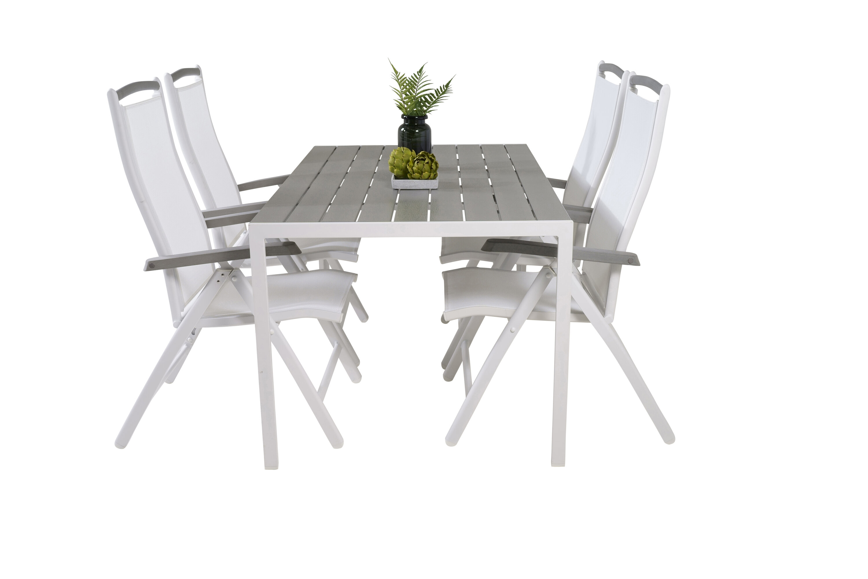 Albany, unsere beliebten Esszimmerstühle mit klappbarer Rückenlehne in perfekter Kombination mit unserem Esstisch Break im klassischen Stil. Lassen Sie diese stattliche Lebensmittelgruppe in zeitloser Farbskala Ihre Terrasse schmücken und die Dinner-Momente dieses Sommers verlängern!