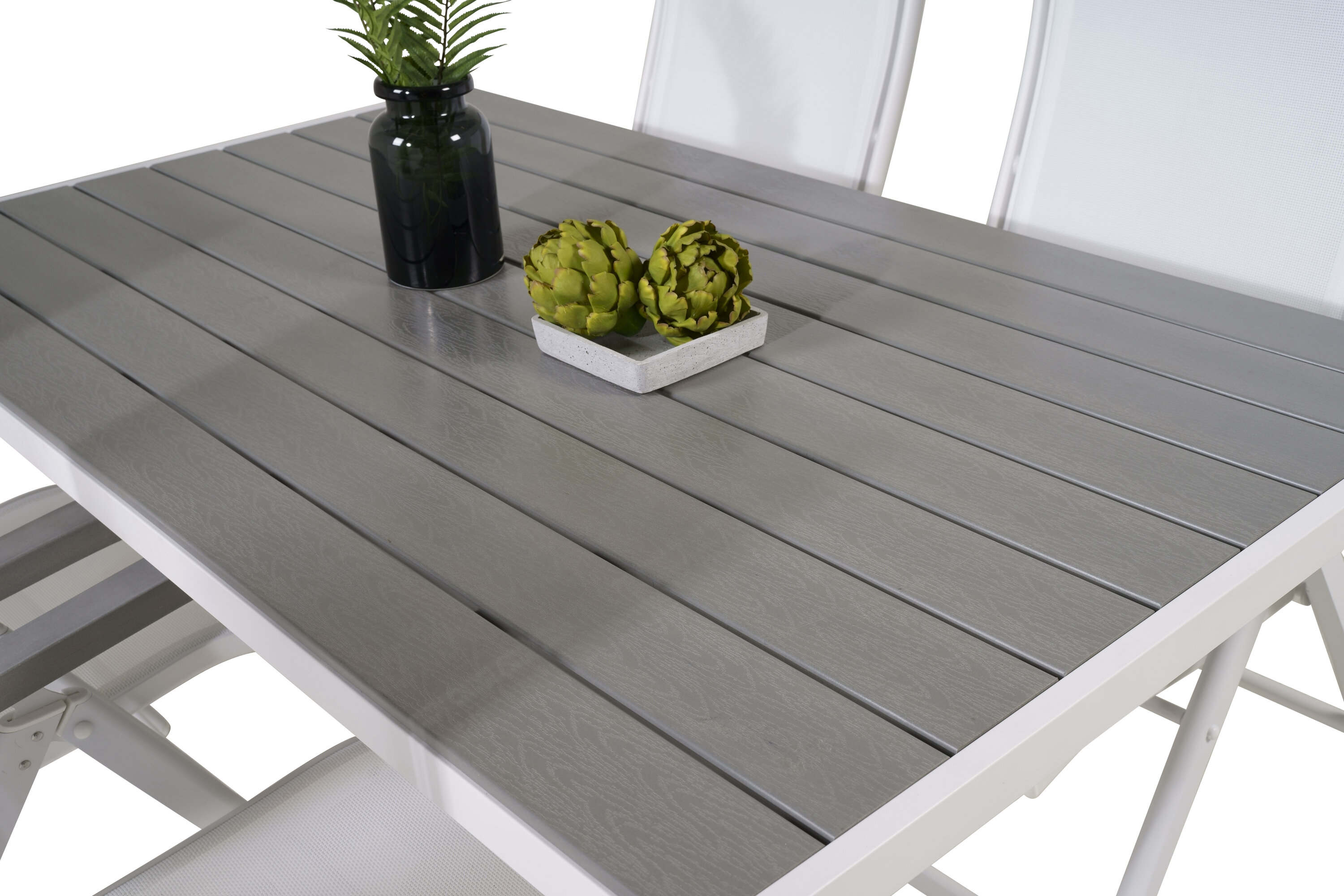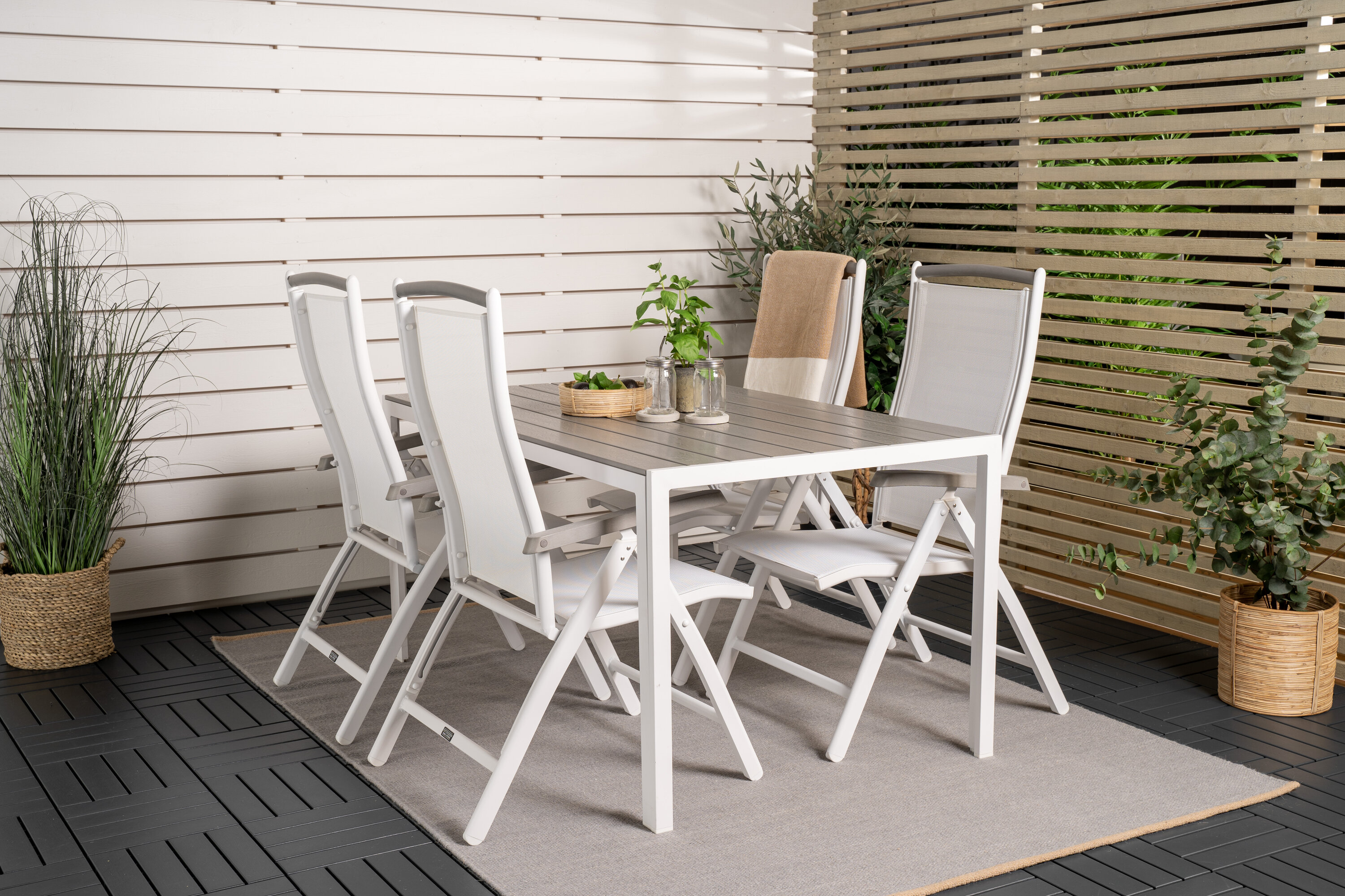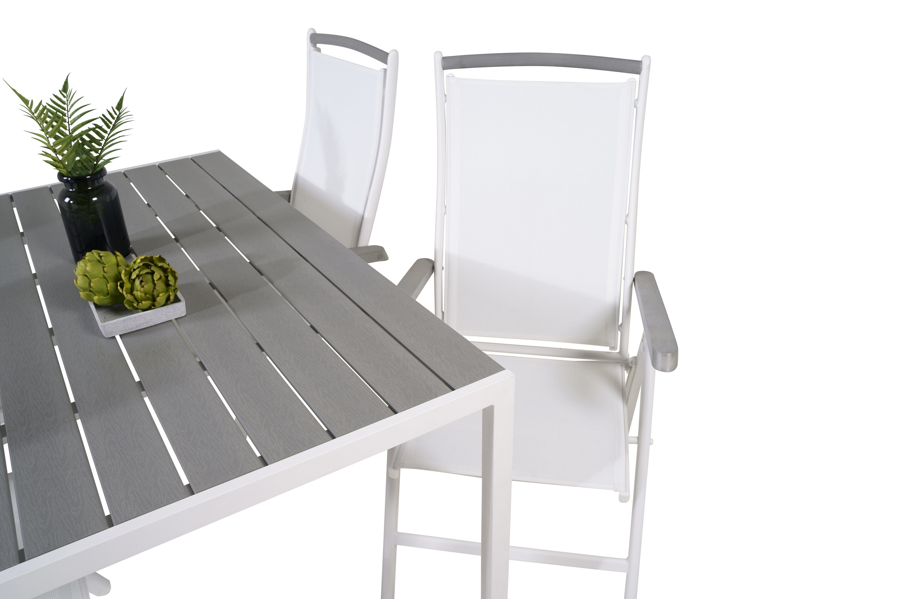 Albany, unsere beliebten Esszimmerstühle mit klappbarer Rückenlehne in perfekter Kombination mit unserem Esstisch Break im klassischen Stil. Lassen Sie diese stattliche Lebensmittelgruppe in zeitloser Farbskala Ihre Terrasse schmücken und die Dinner-Momente dieses Sommers verlängern!