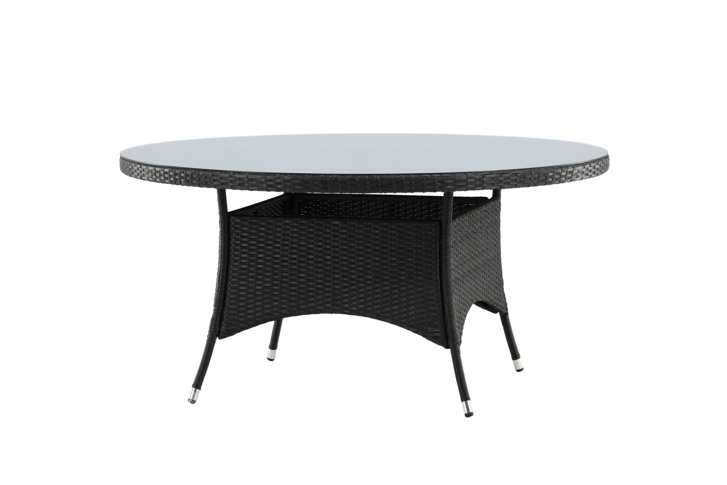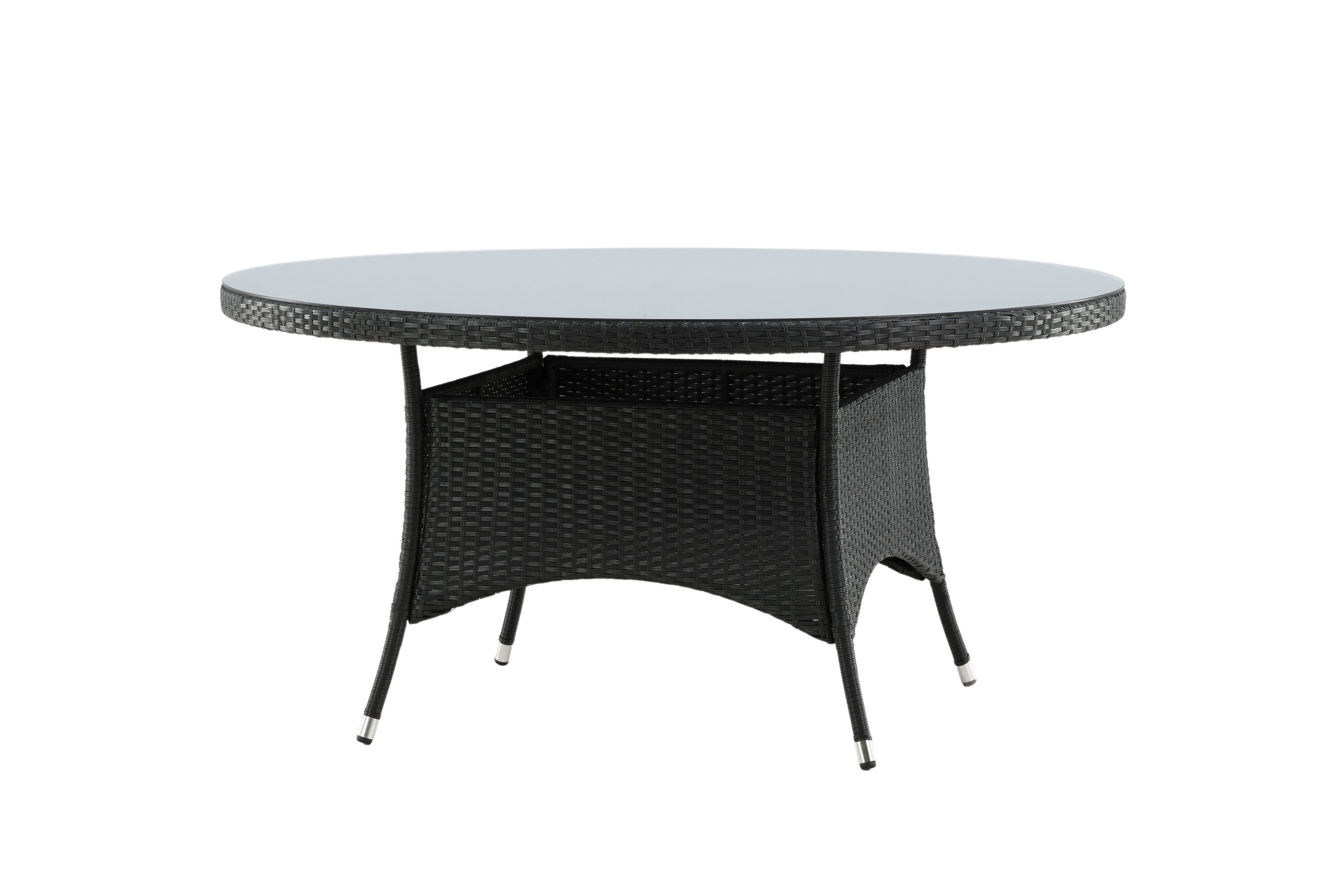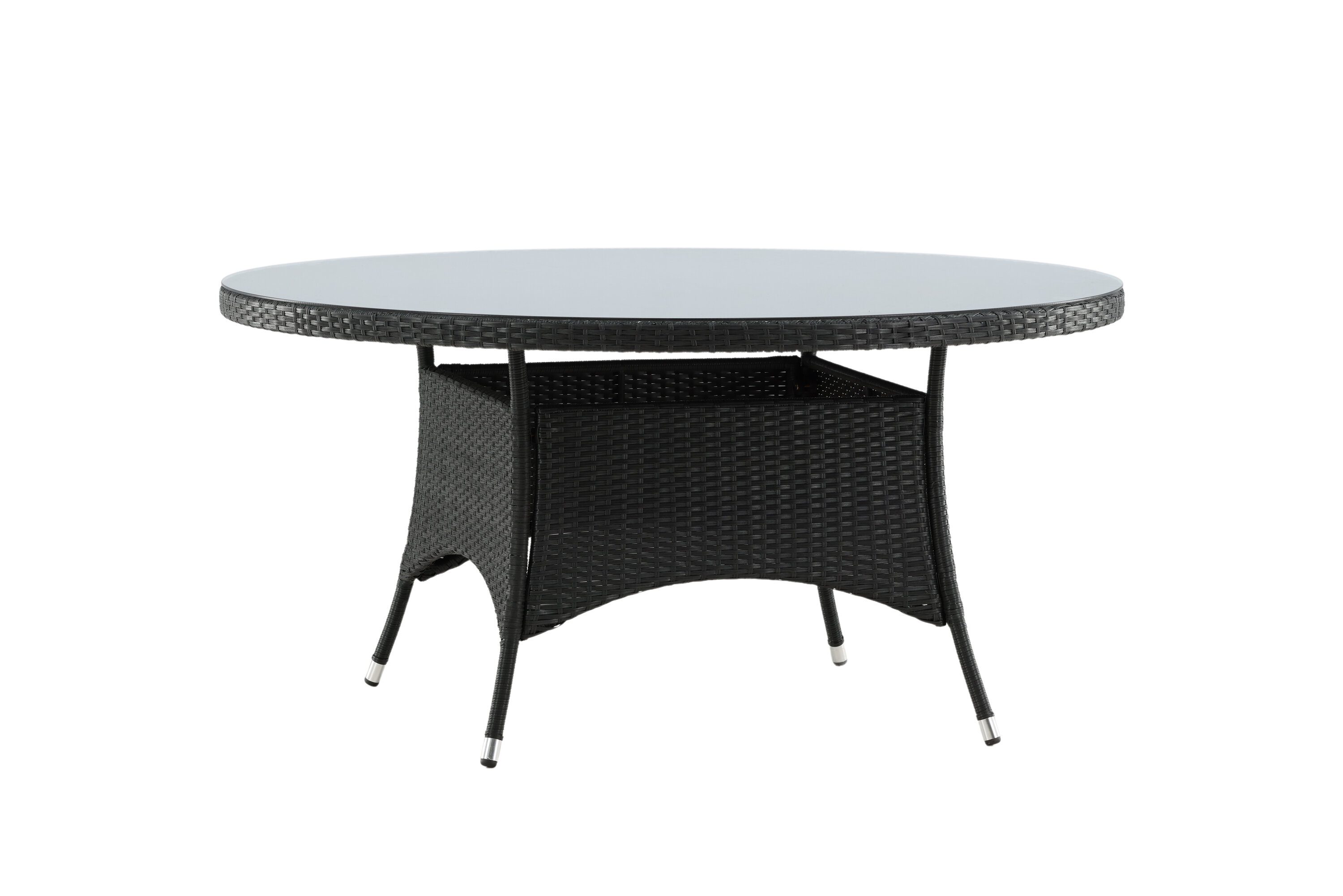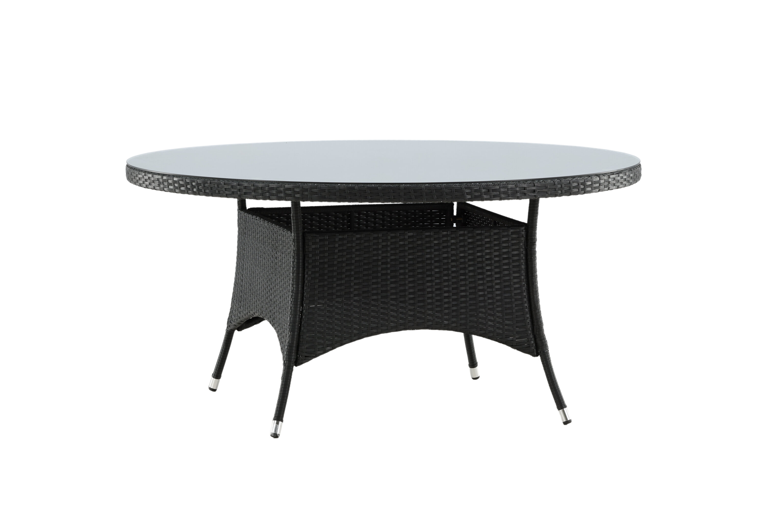 Volta ist ein runder Esstisch in robustem Design, der einen langlebigen und charmanten Eindruck hinterlässt! Die Tischplatte ist aus stilvollem Glas und das Fahrgestell aus strapazierfähigem, schwarzem Kunstrattan. Möblieren Sie im Außenbereich oder auf der Terrasse und lassen Sie das Abendessen im Freien zum Highlight des Tages werden - hier landet niemand am Rande!